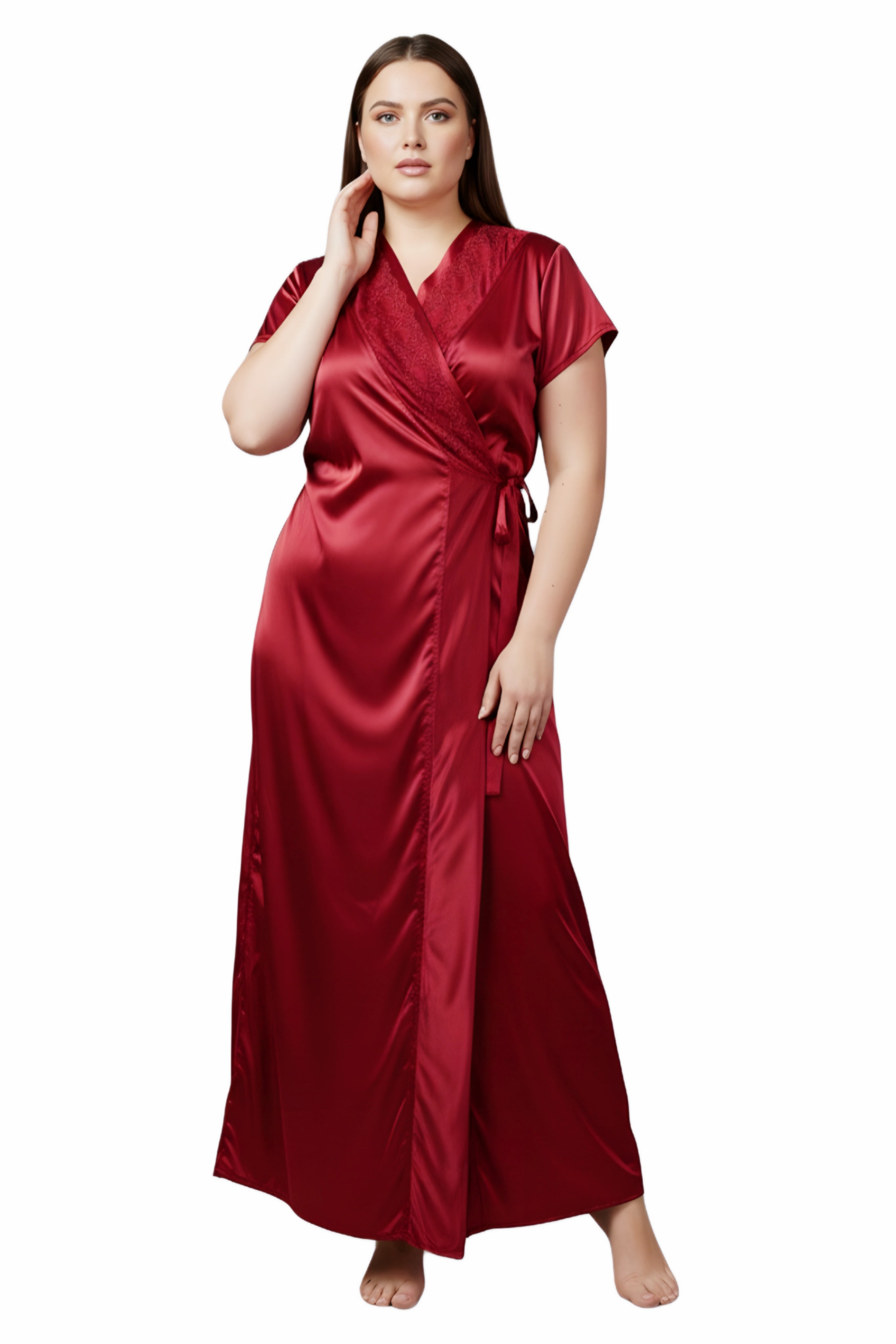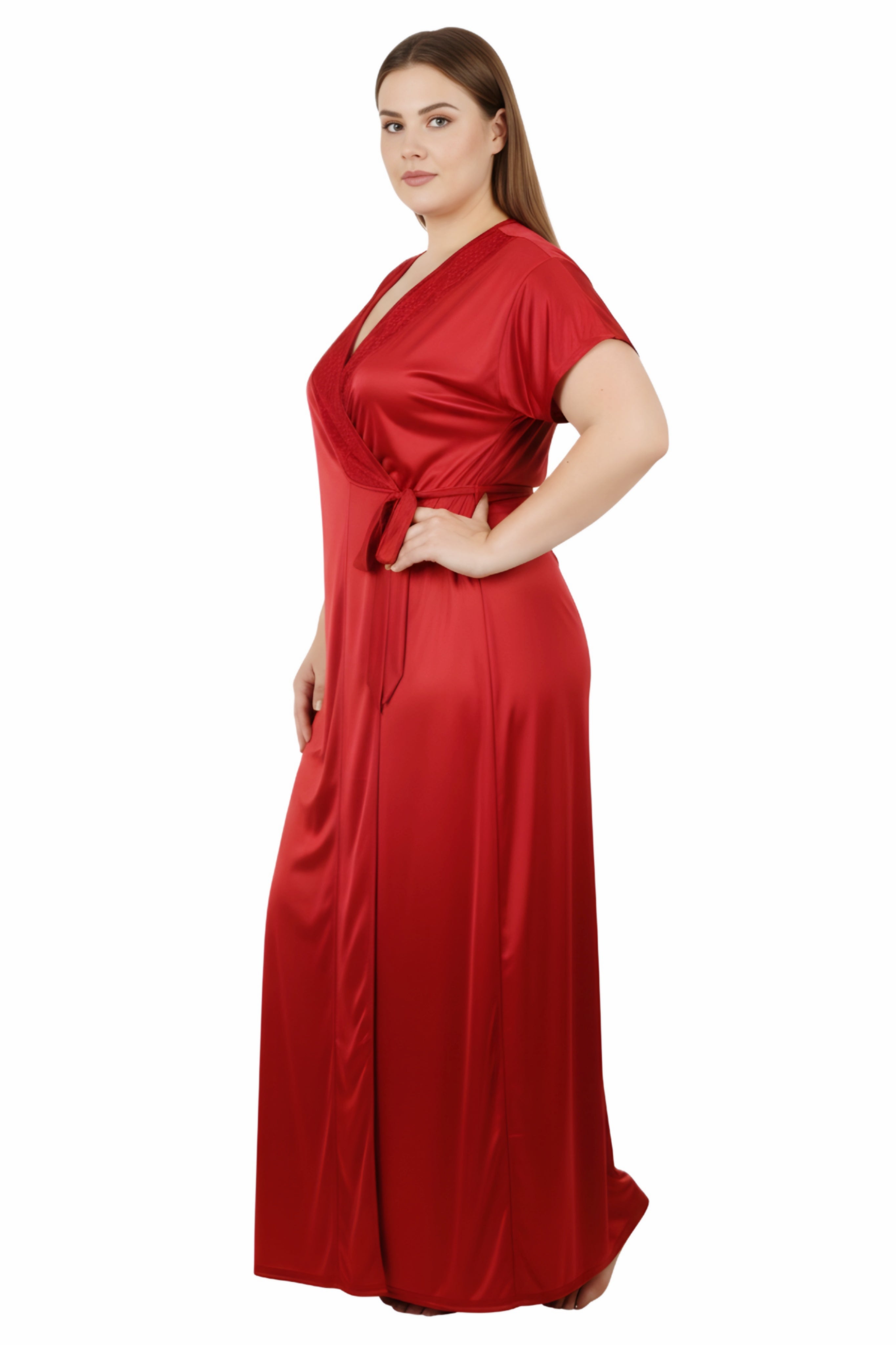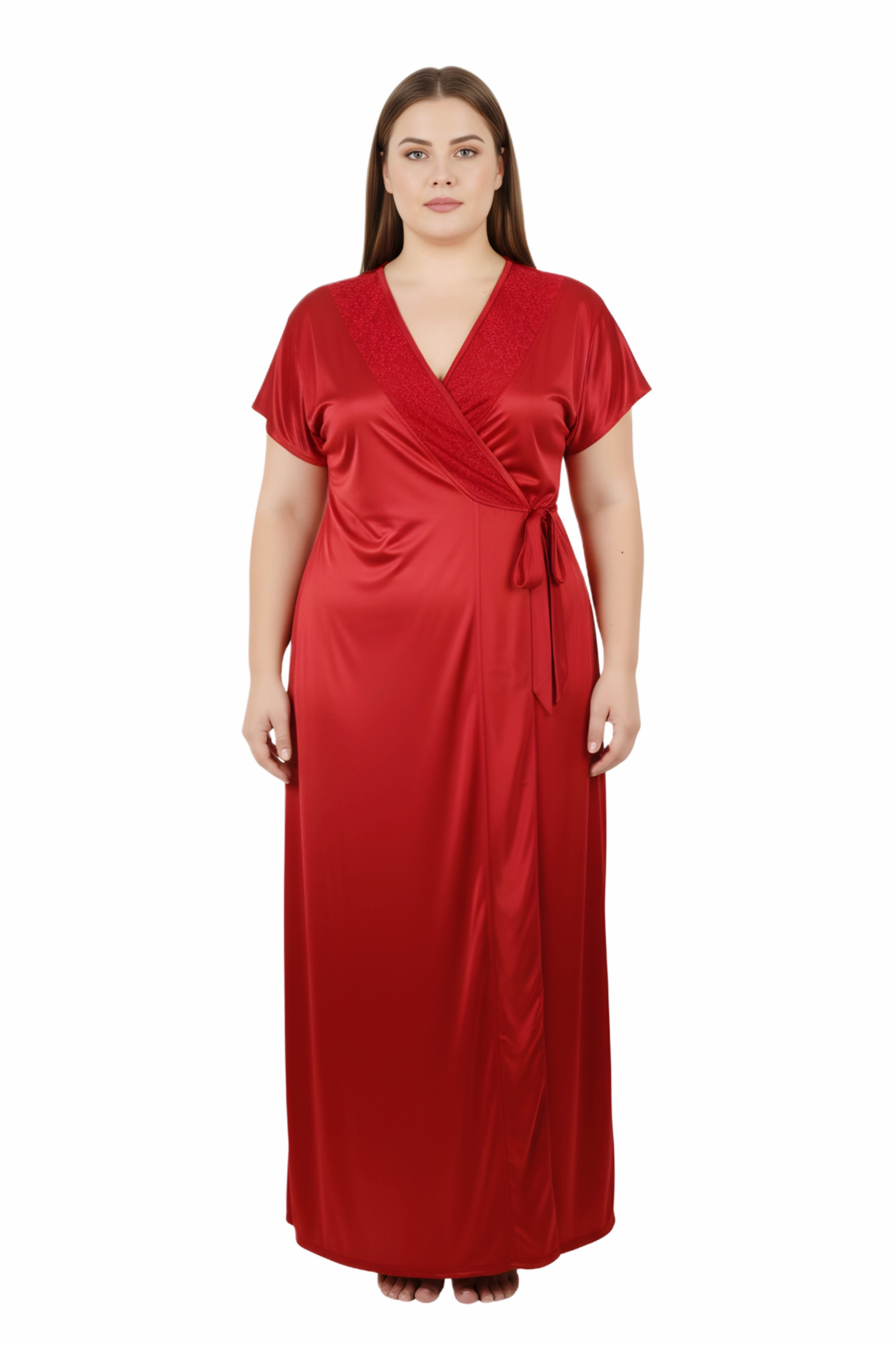 Honeymoon Night Gown for Women Full length Bridal Nighty Set with Robe 2-Piece Satin Lycra Nightwear for Women & Girls Perfect Birthday Anniversary Wedding Gift for Bride ( COMFORT 31422 Nighty )