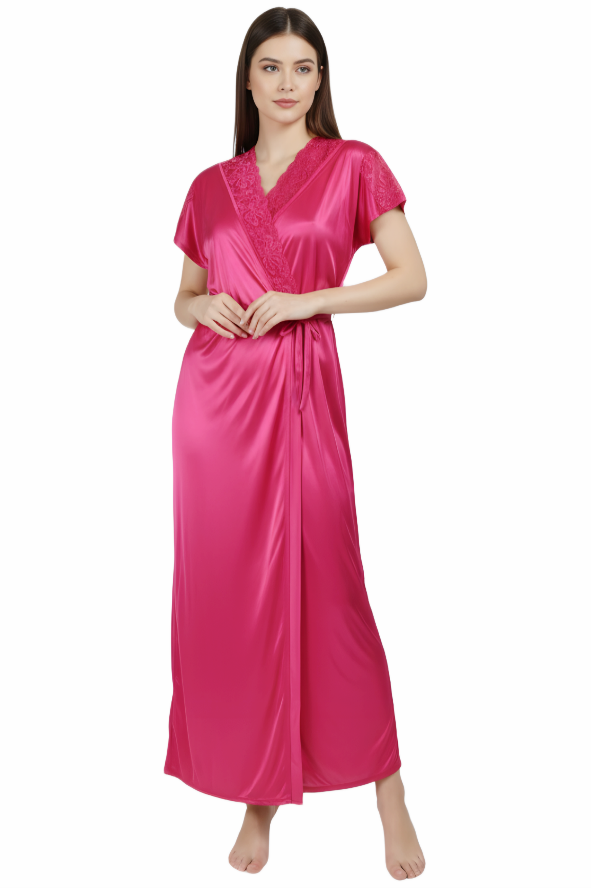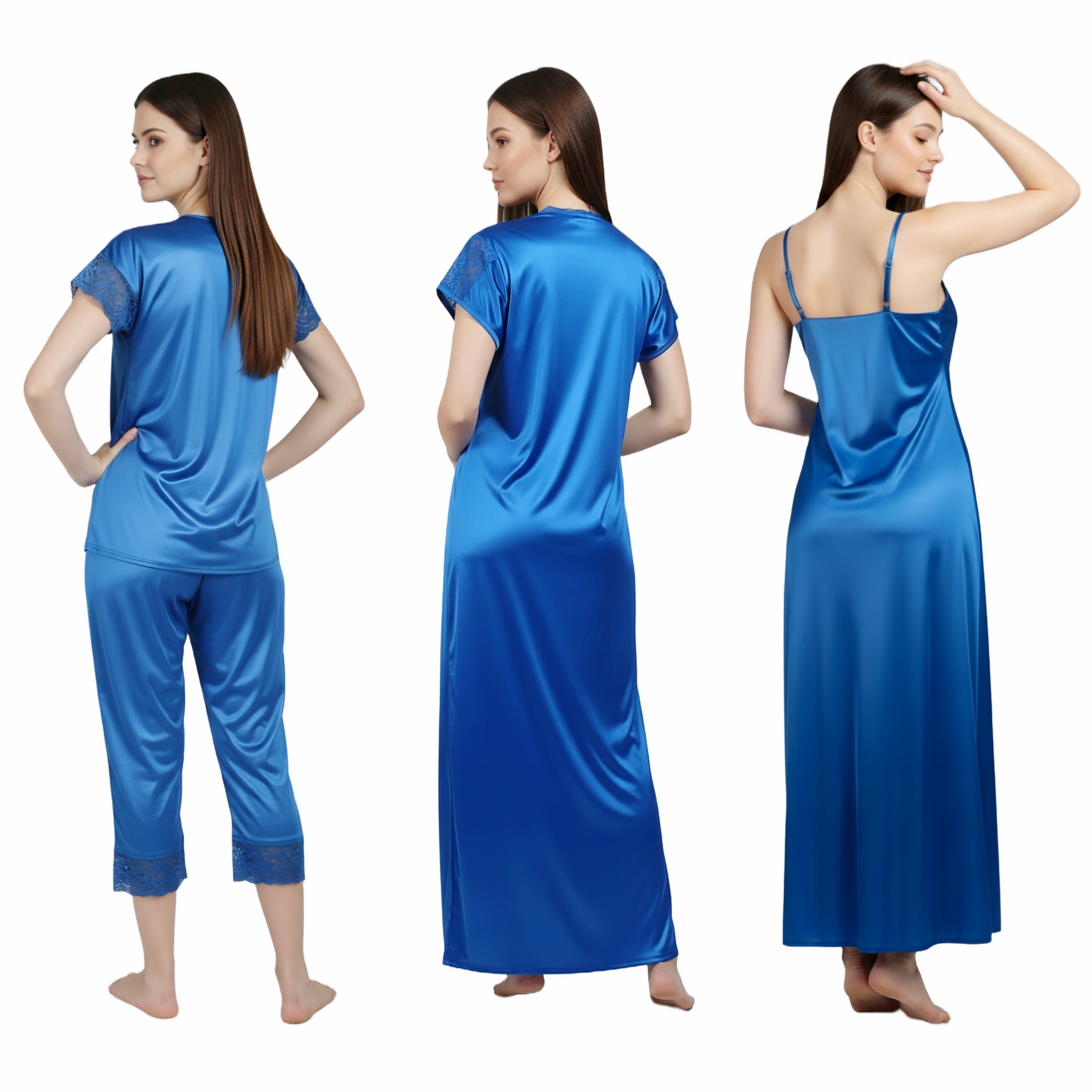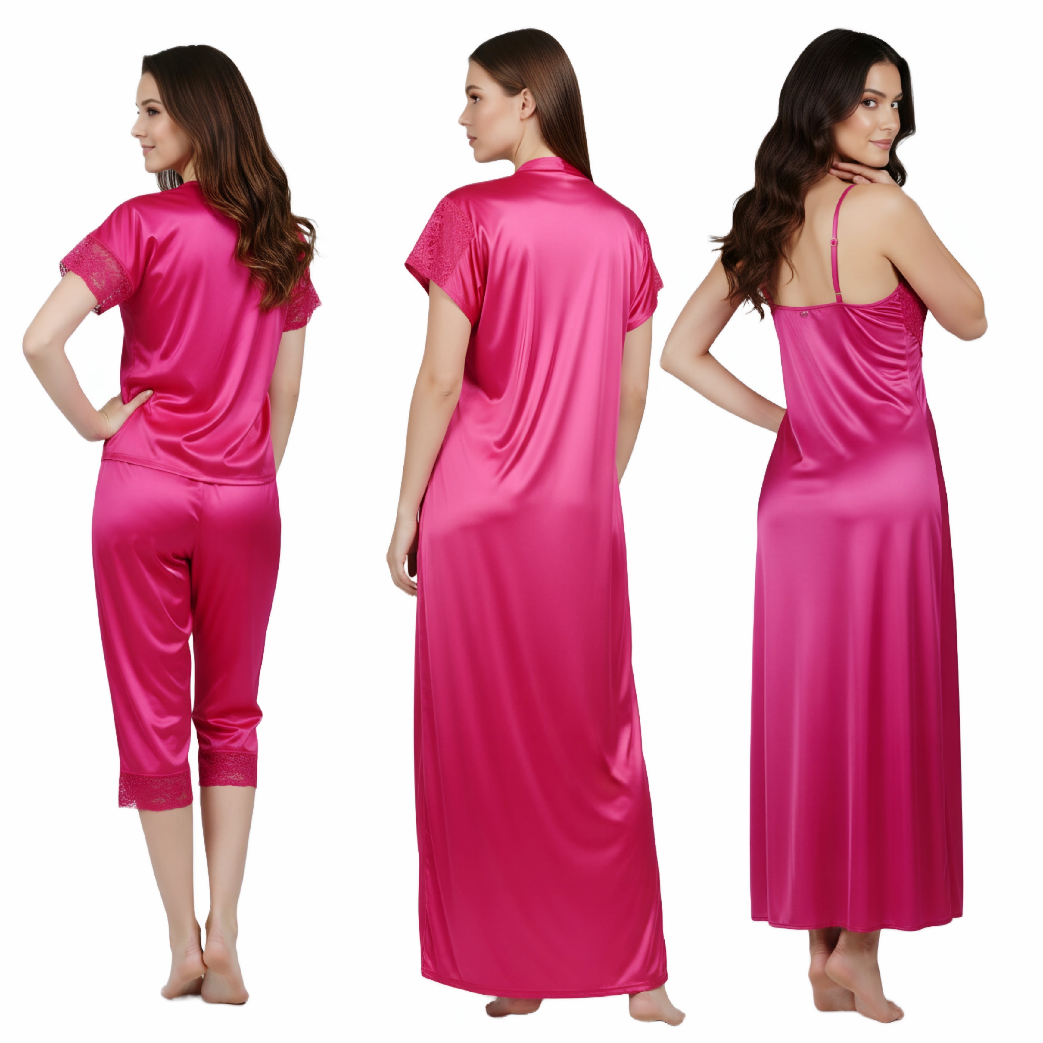 Fancy Bedroom 4pc Nighty with Robe for Women | Premium Satin Designer Nightwear | Soft & Comfortable Fit | V- Neck | Attractive & Stylish (34927 NIGHTY COMFORT )