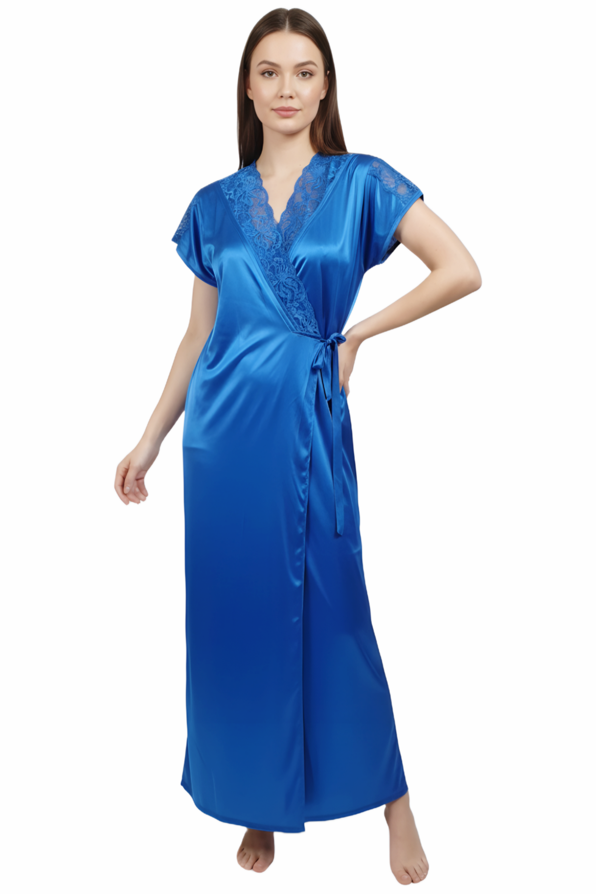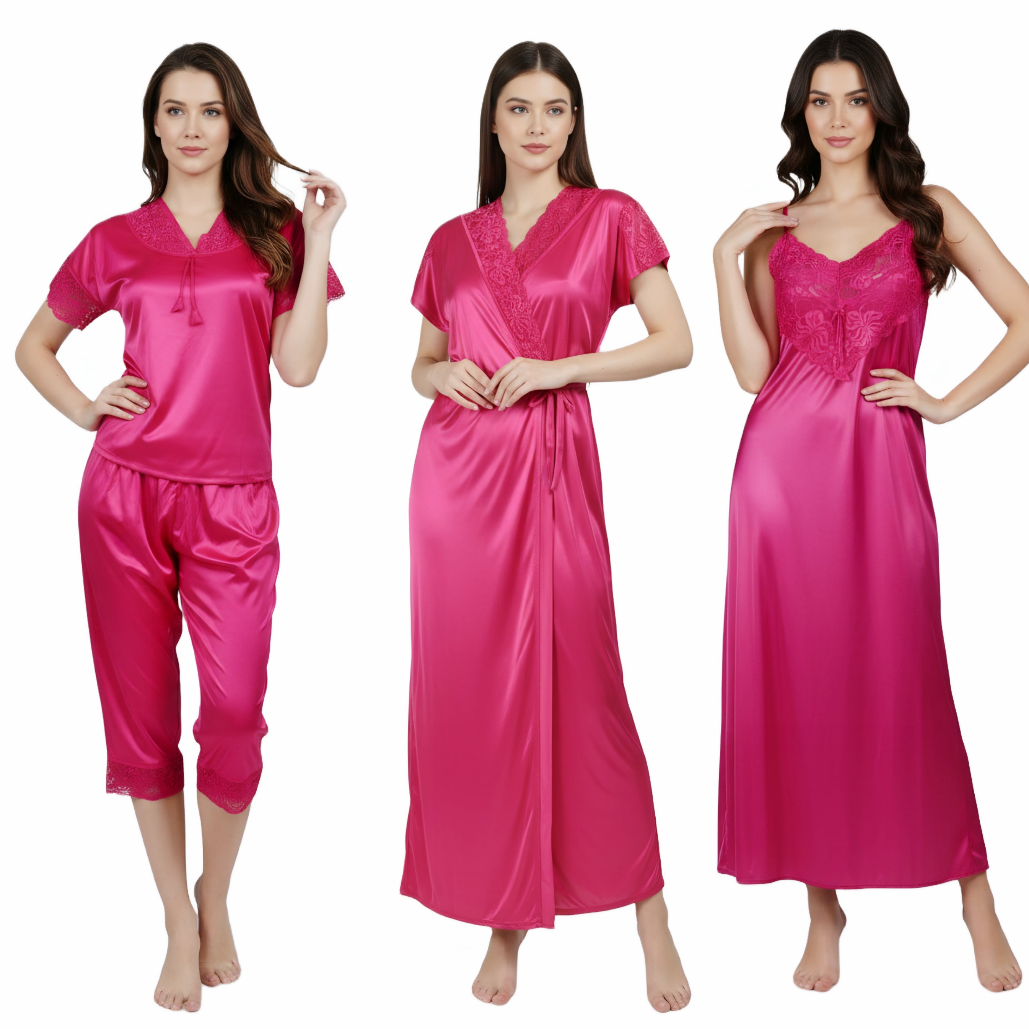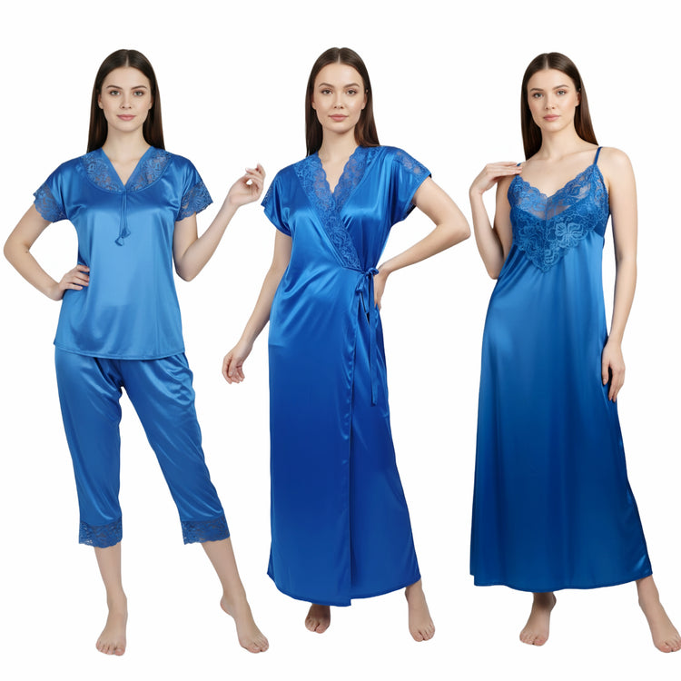 Fancy Bedroom 4pc Nighty with Robe for Women | Premium Satin Designer Nightwear | Soft & Comfortable Fit | V- Neck | Attractive & Stylish (34927 NIGHTY COMFORT )