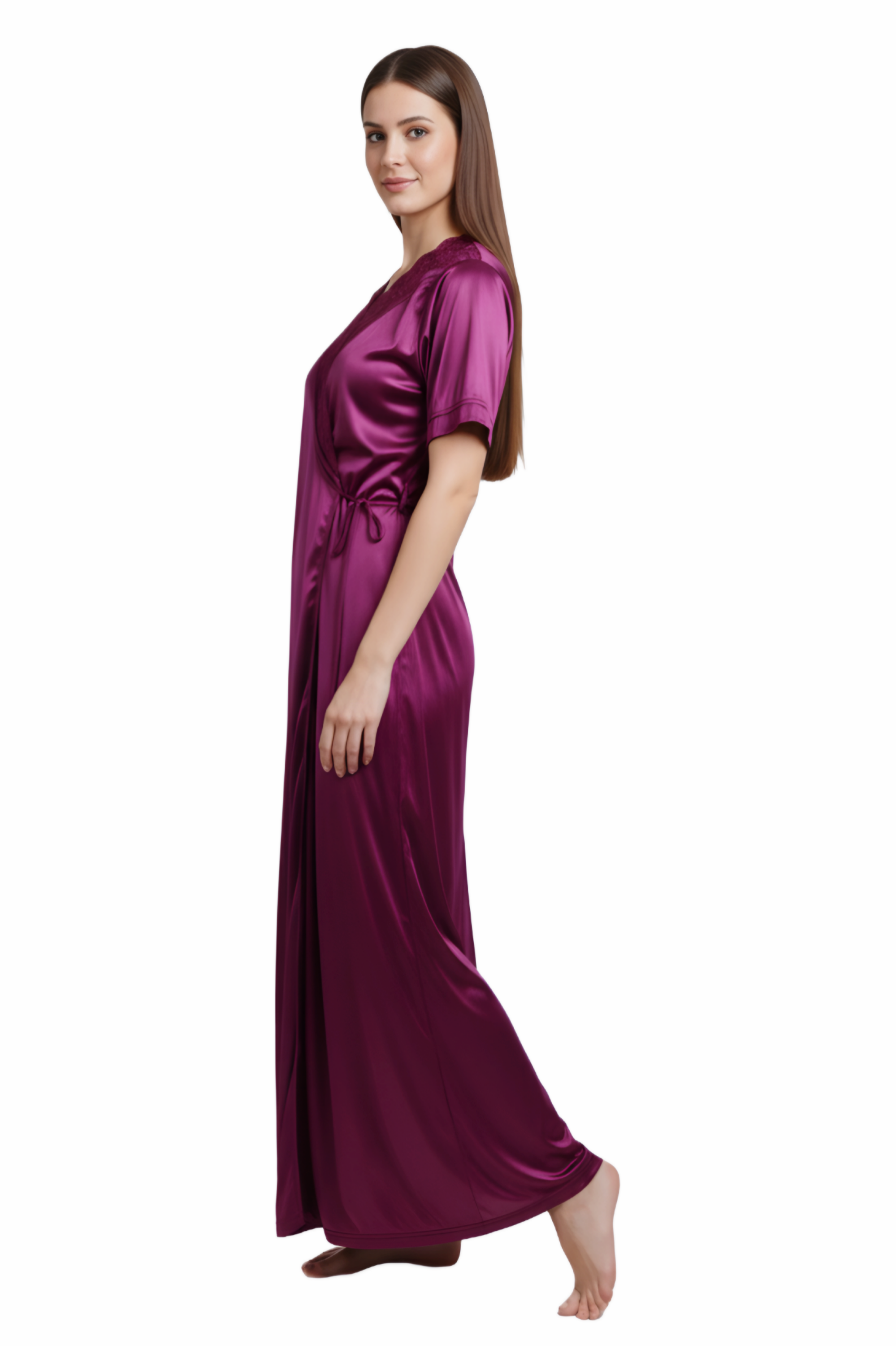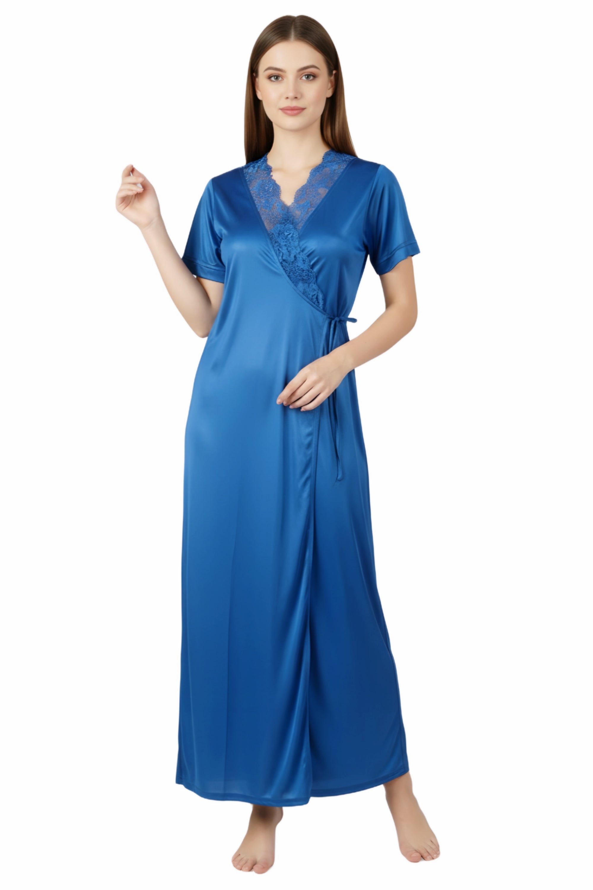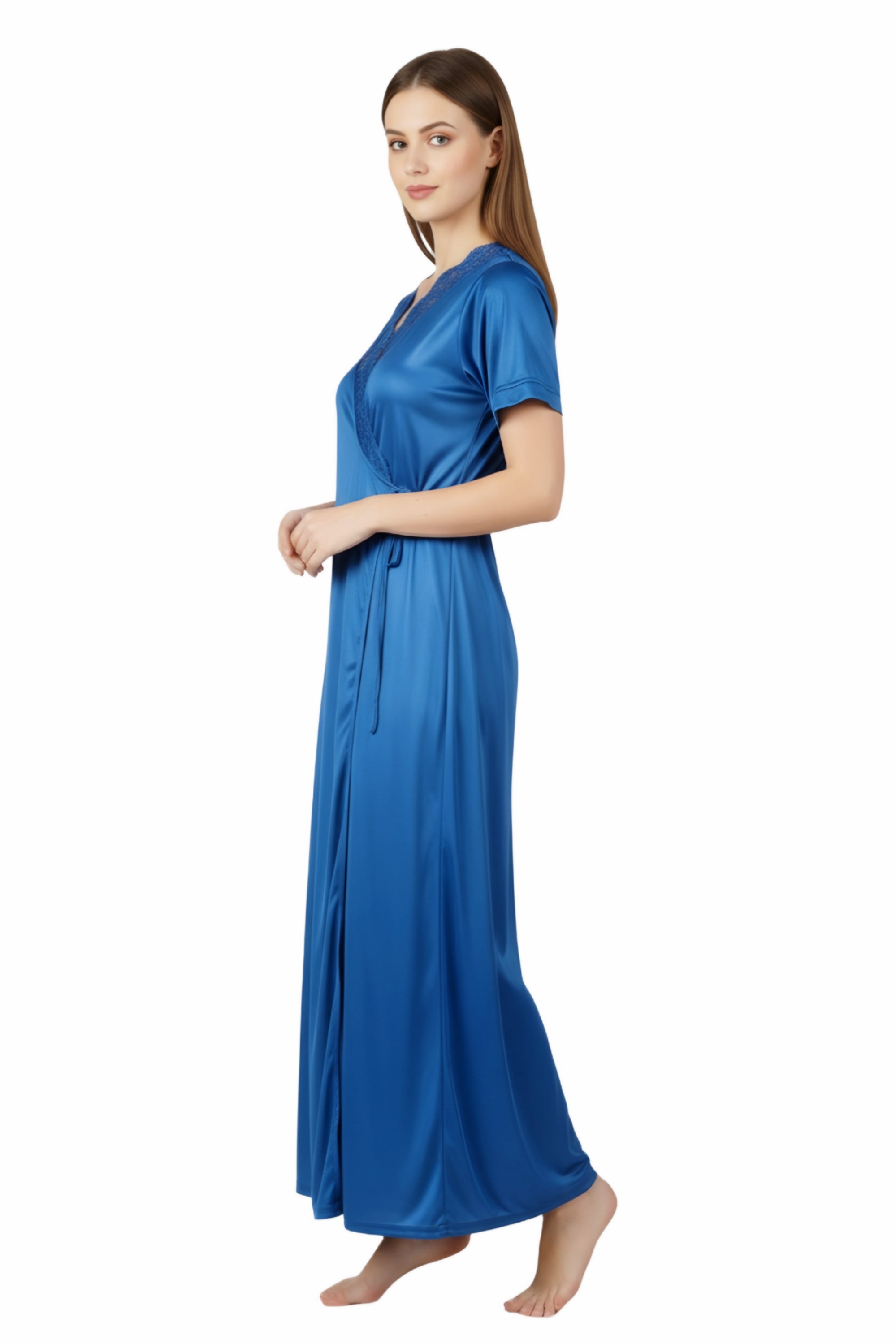 Honeymoon Night Gown for Women Full length Bridal Nighty Set with Robe 2-Piece Satin Lycra Nightwear for Women & Girls Perfect Birthday Anniversary Wedding Gift for Bride ( JULIEN 4105 Nighty )