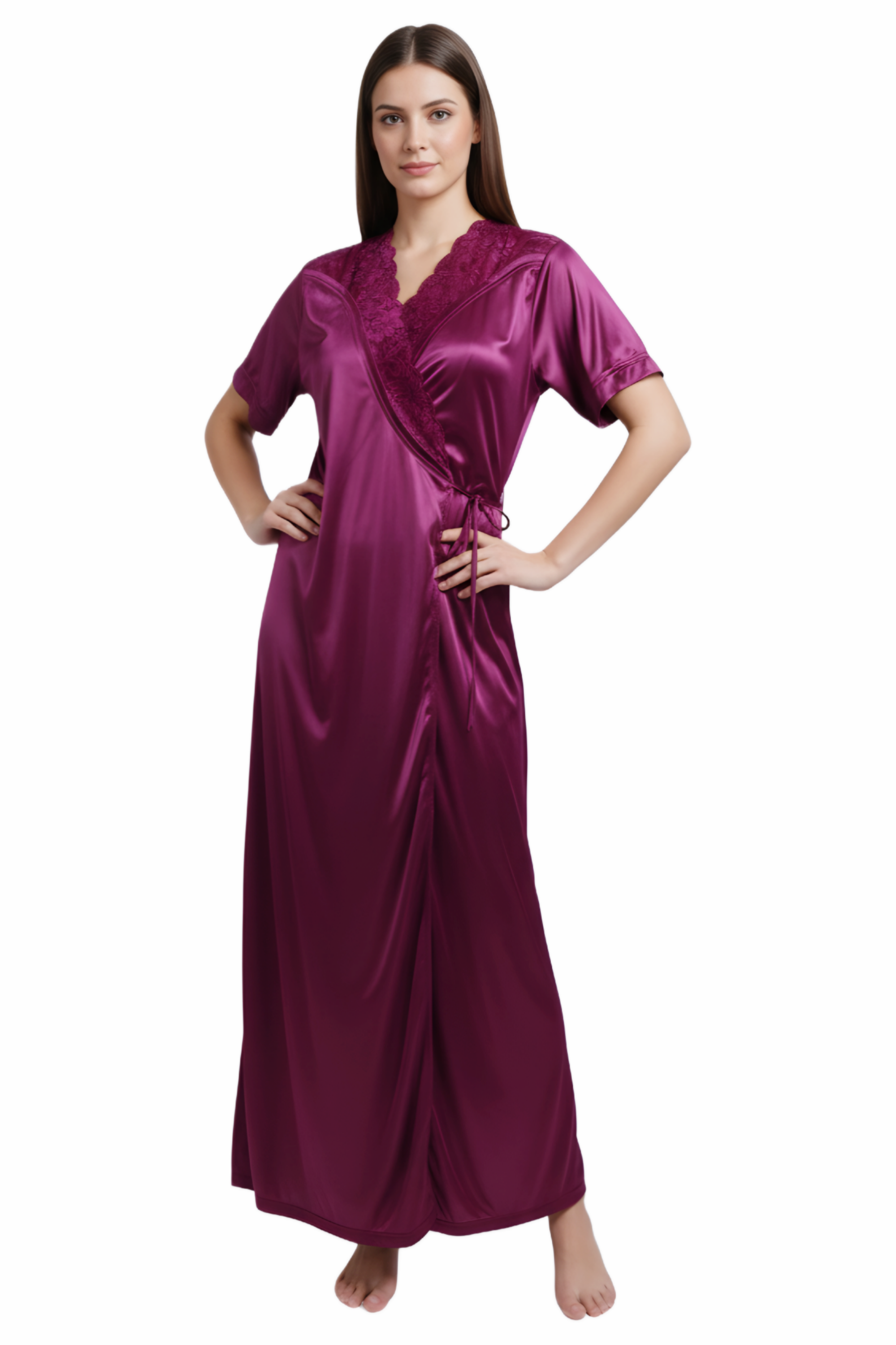 Make your special moments unforgettable with this Fancy / Bridal Satin Nighty, crafted from high-quality satin fabric that offers a silky-smooth touch and a rich, glossy finish. Designed especially for brides, this nighty adds elegance, romance, and confidence to your look.