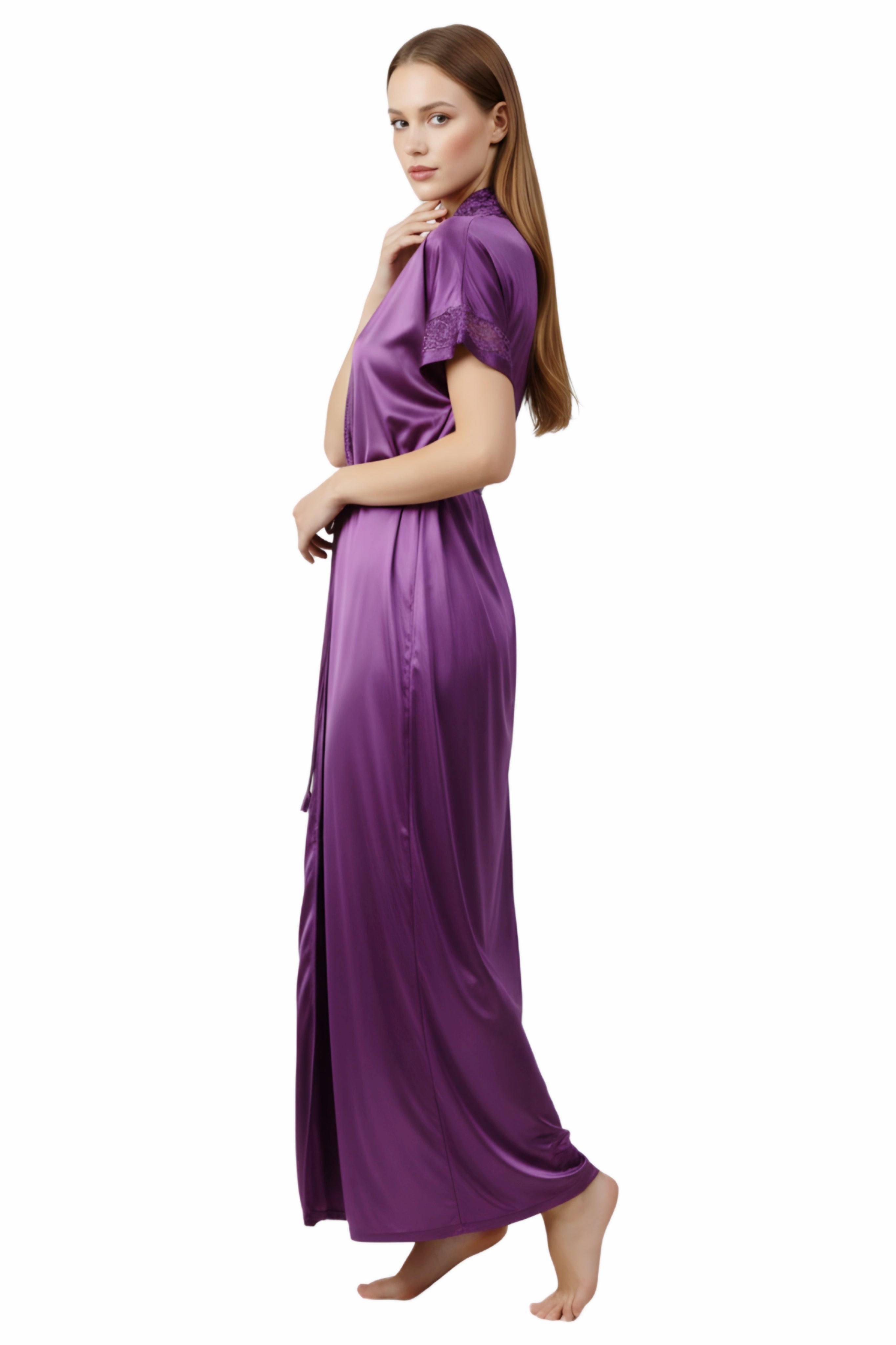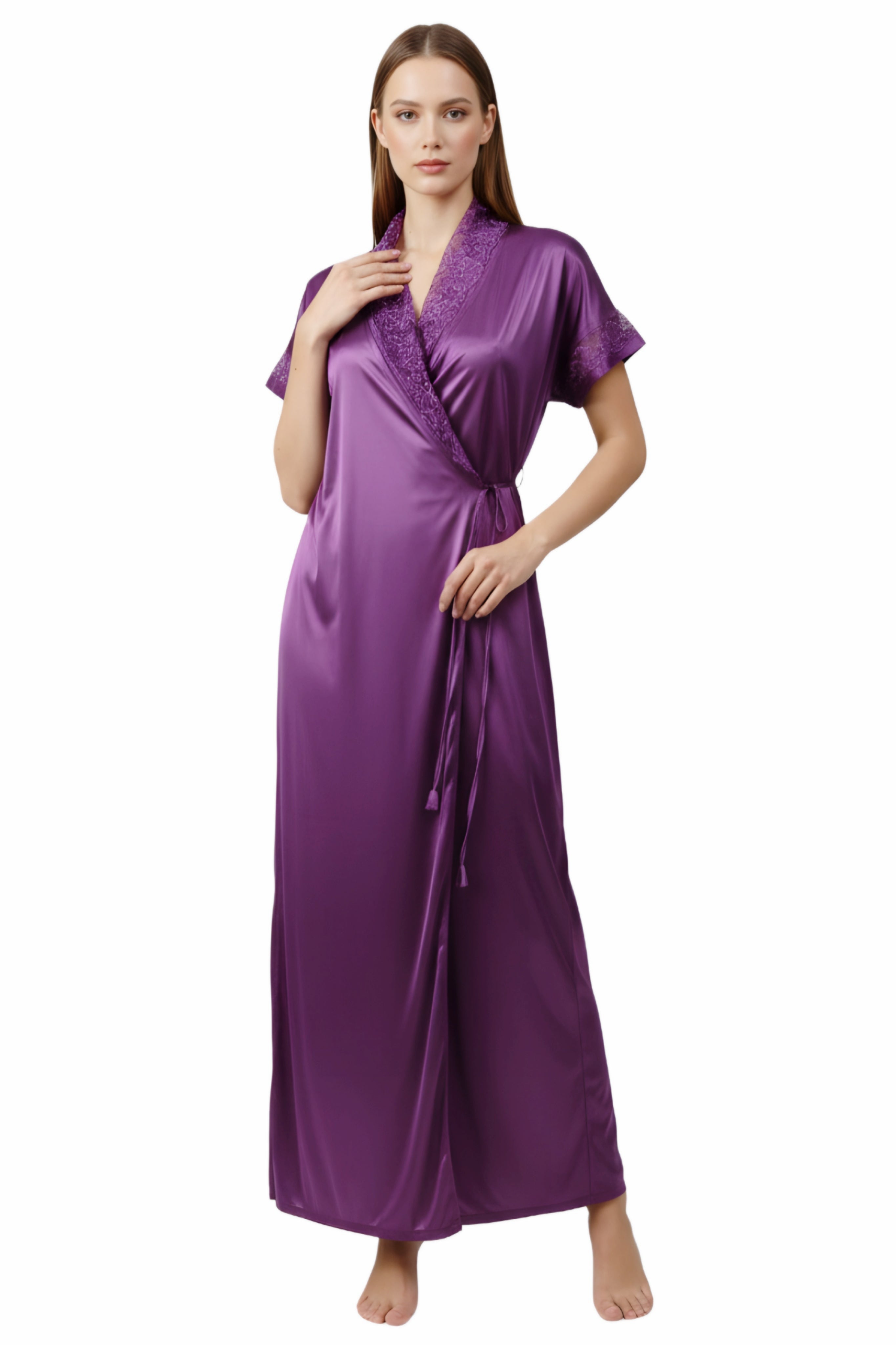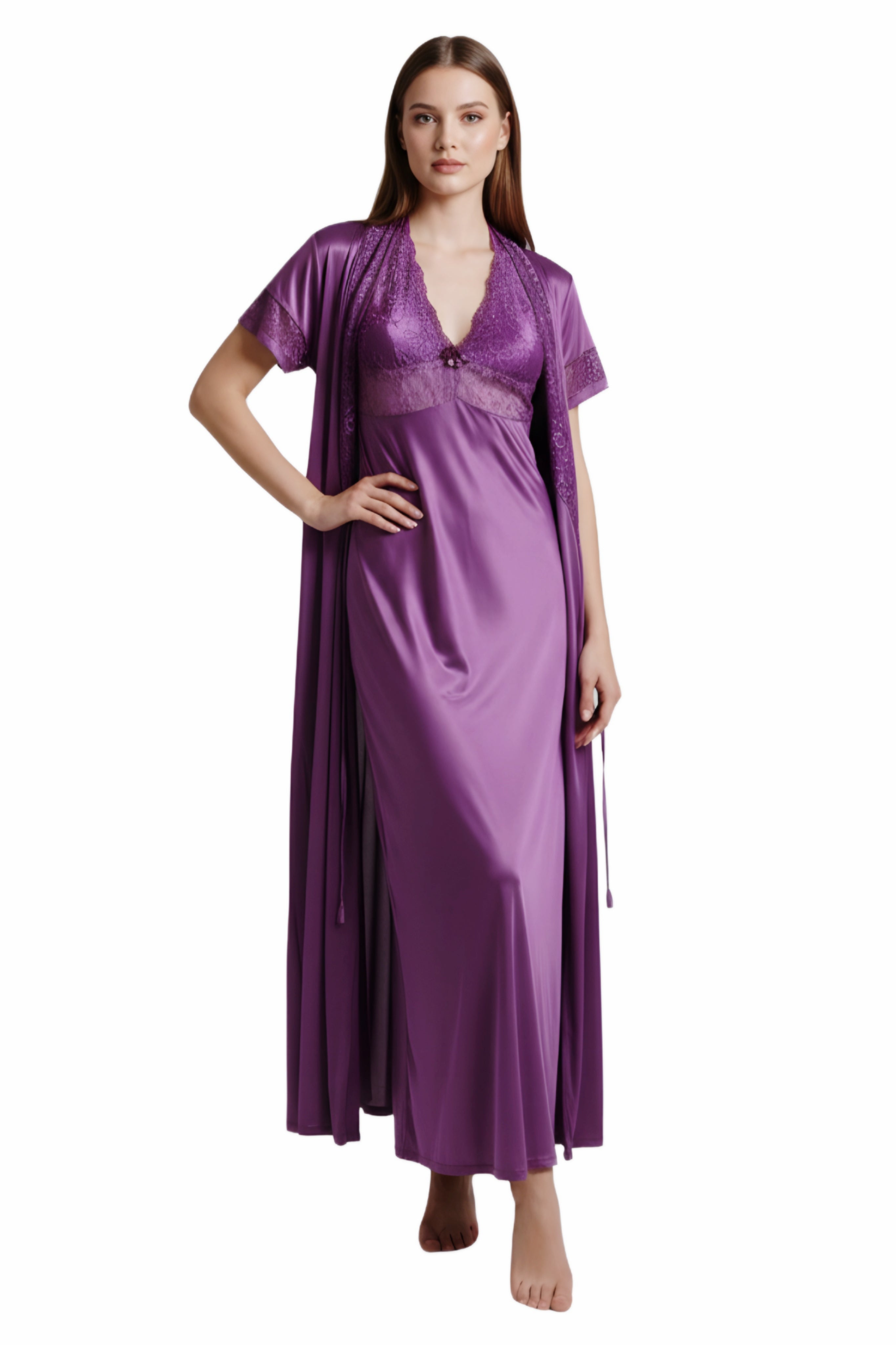 Honeymoon Night Gown for Women Full length Bridal Nighty Set with Robe 2-Piece Satin Lycra Nightwear for Women & Girls Perfect Birthday Anniversary Wedding Gift for Bride ( Sweet heart 1622 Nighty )