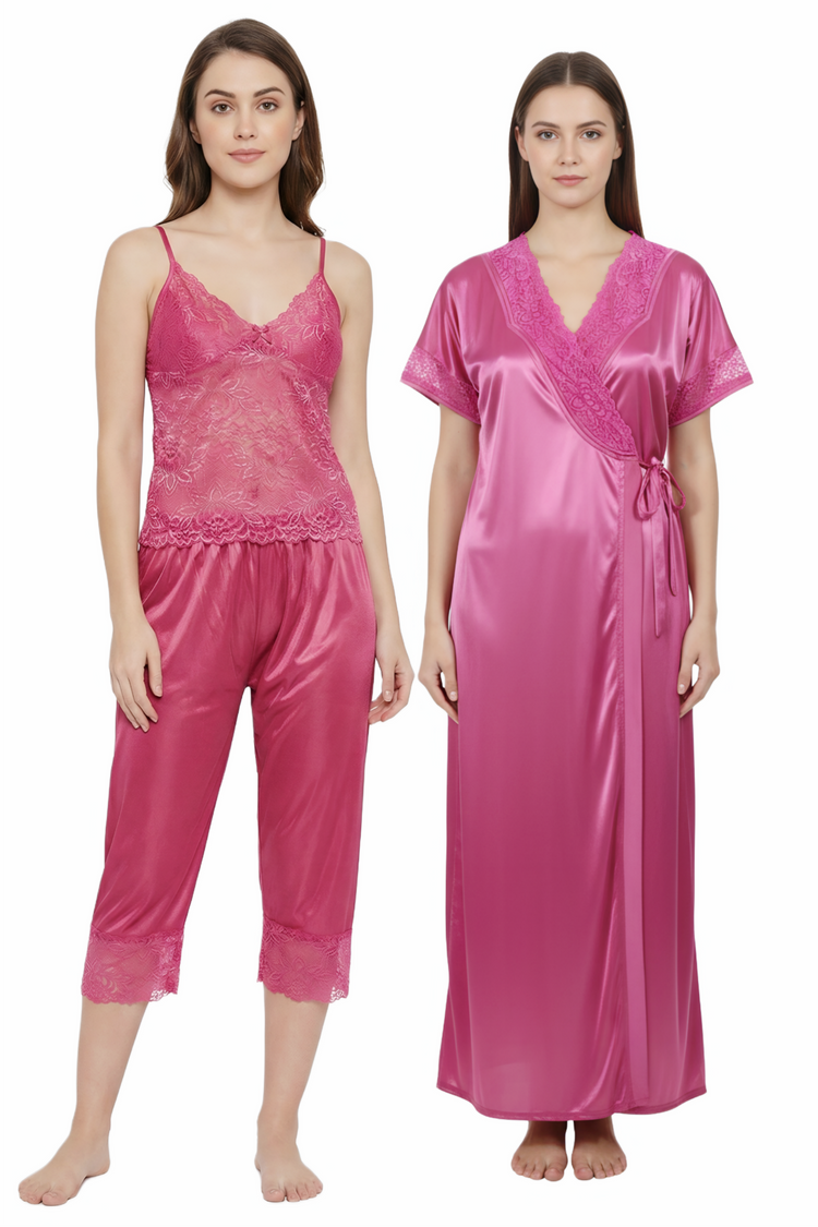 Women's Nightgown Nighty Satin Solid FULL Length Nighty with Robe 2 Piece Set of Sleepwear and Nightwear Nightdress Nighy (110180 NIGHTY COMFORT )