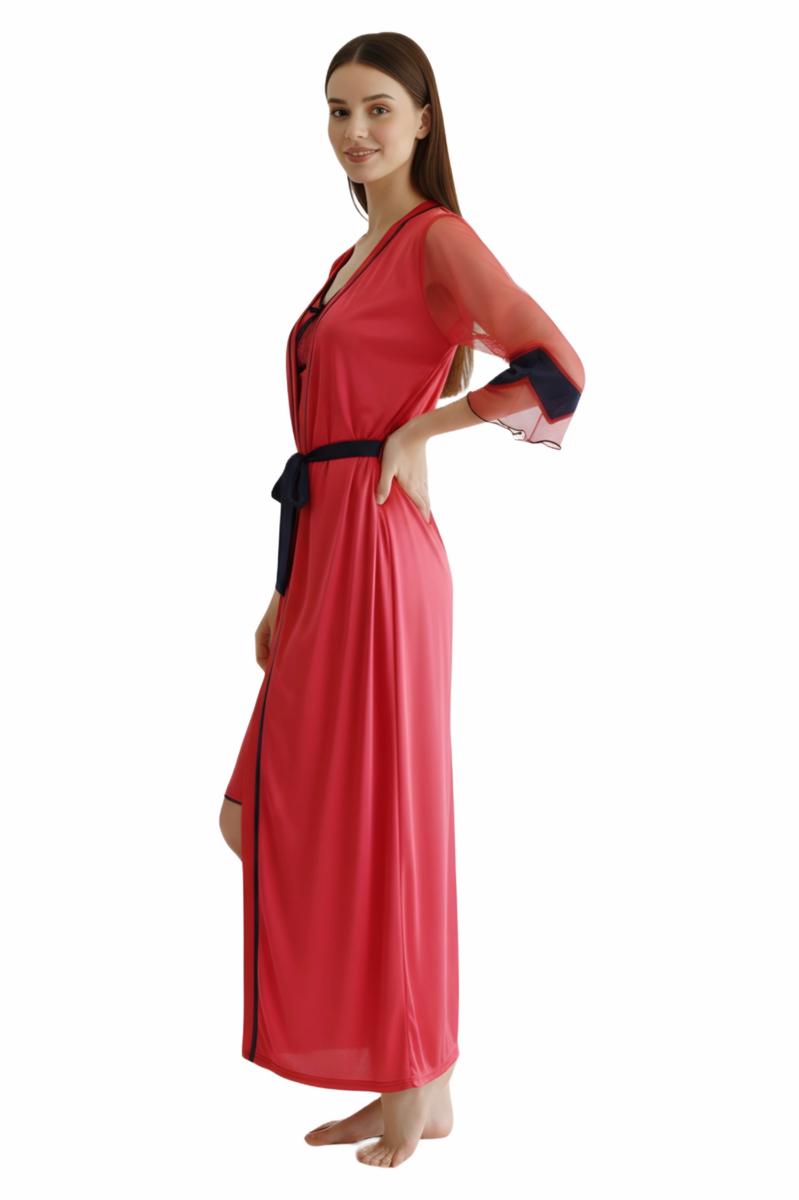 Women's Nightgown Nighty Satin Solid Long Length Nighty with Robe 2 Piece Set of Sleepwear and Nightwear Nightdress Nighy (4332 NIGHTY JULIEN)