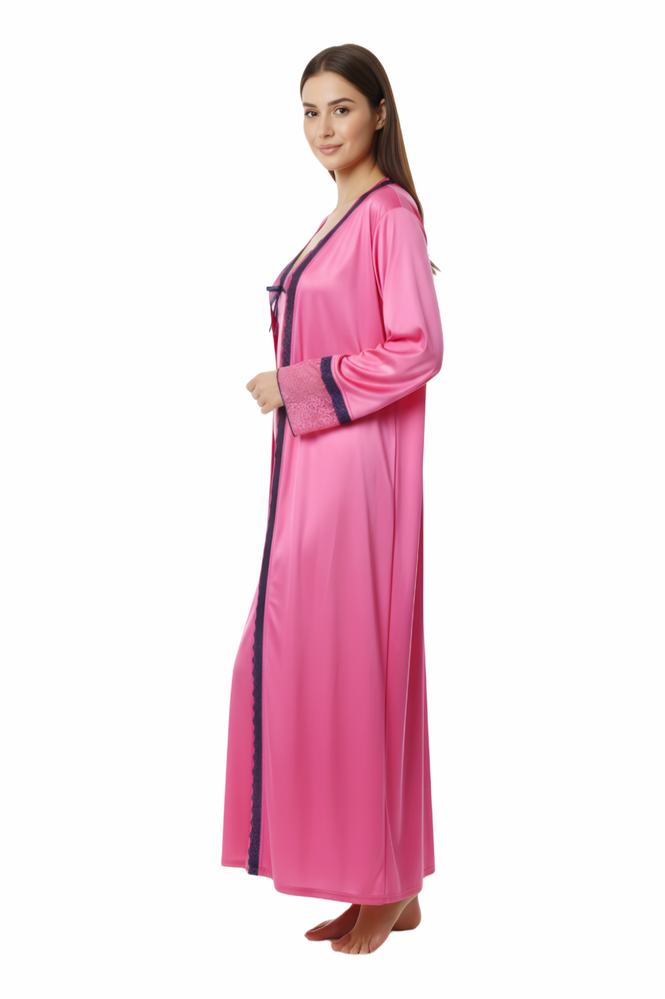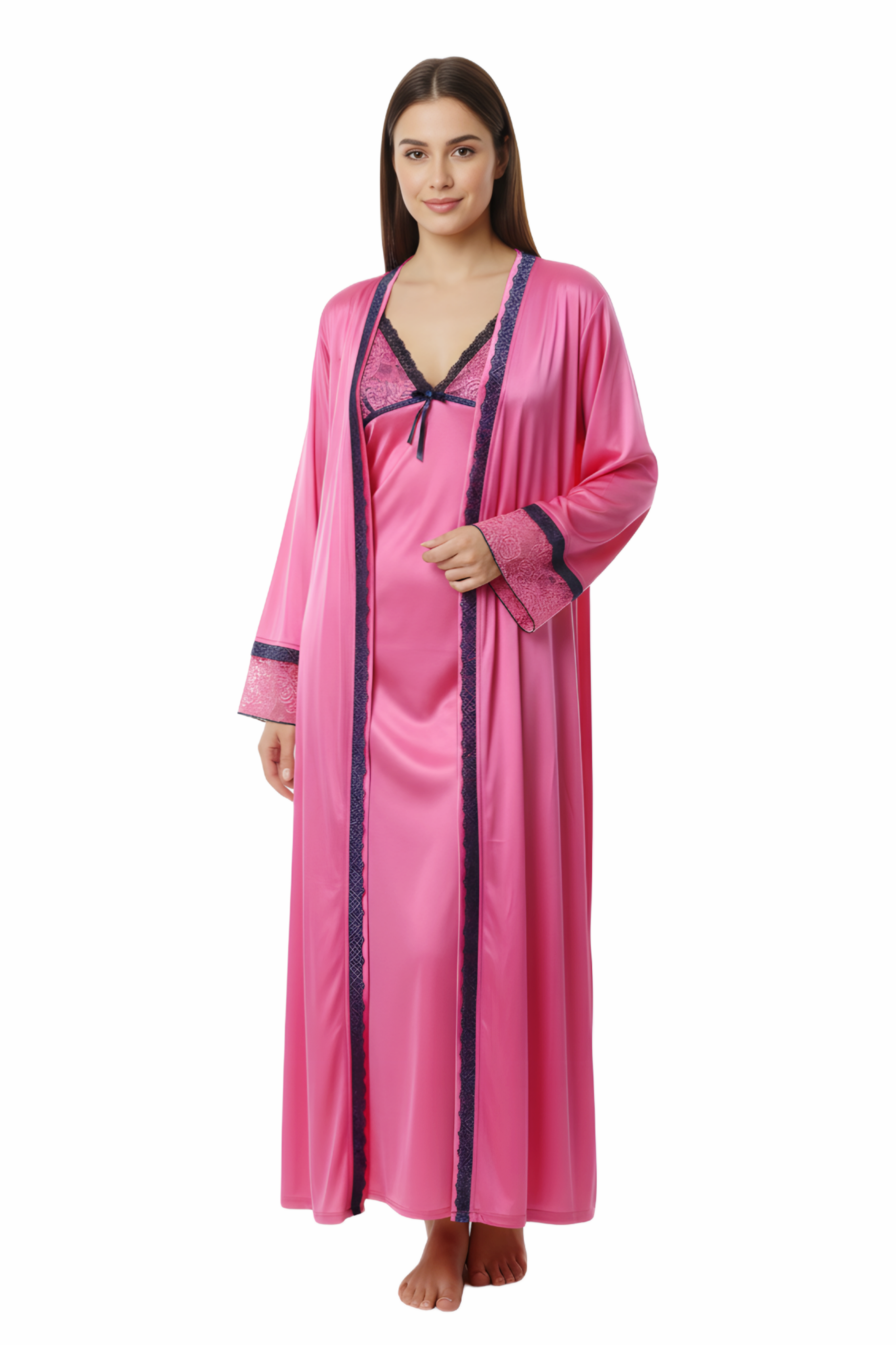 Women's Nightgown Nighty Satin Solid Full Length Nighty with Robe 2 Piece Set of Sleepwear and Nightwear Nightdress Nighty ( IT 9128 Nighty In Touche)