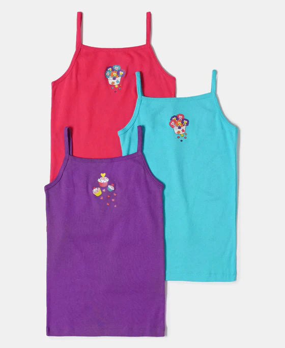JOCKEY Girl's Super Combed Cotton Rib Fabric Spot Printed Camisole with Regular Straps - Assorted Pack of 3 #FG03 | INEZY