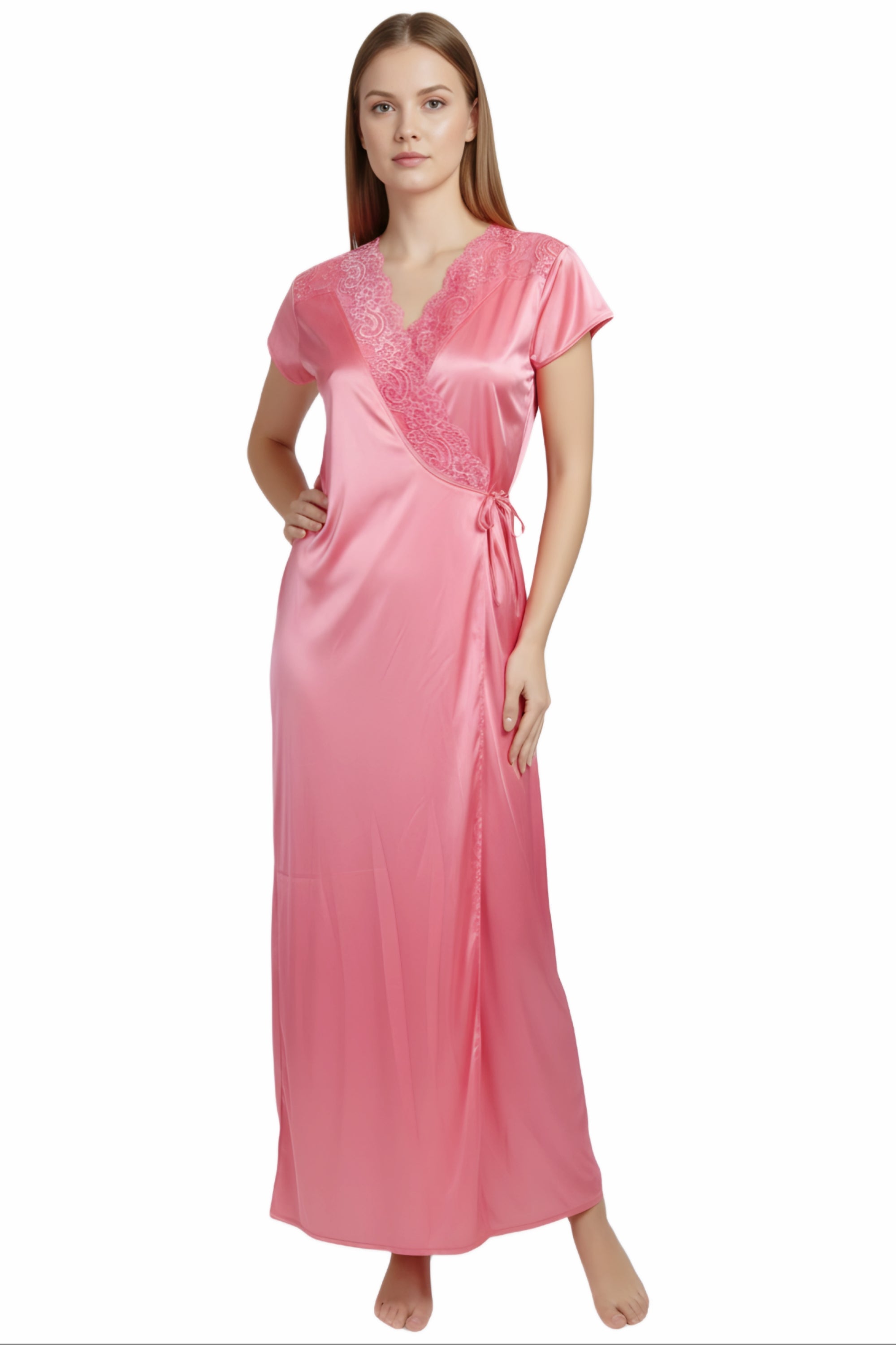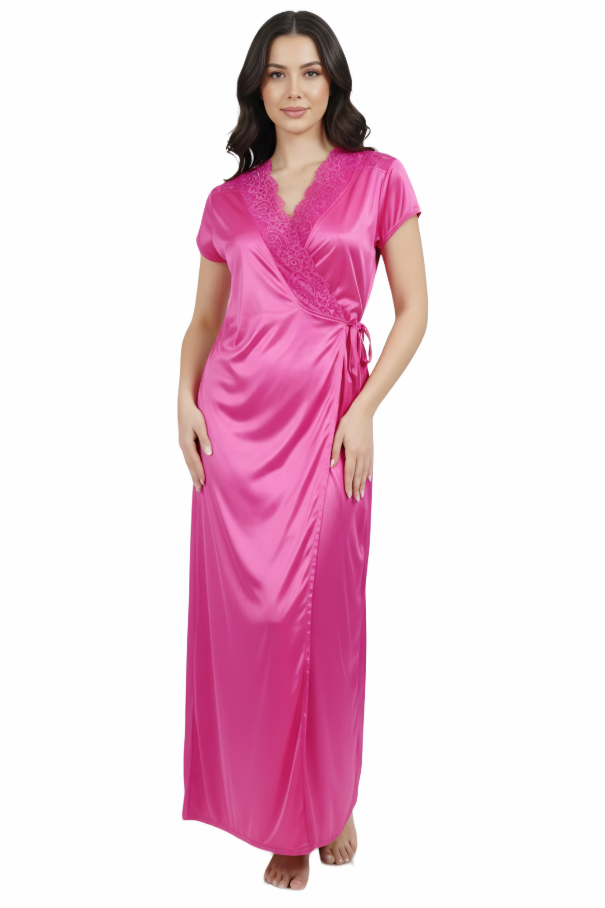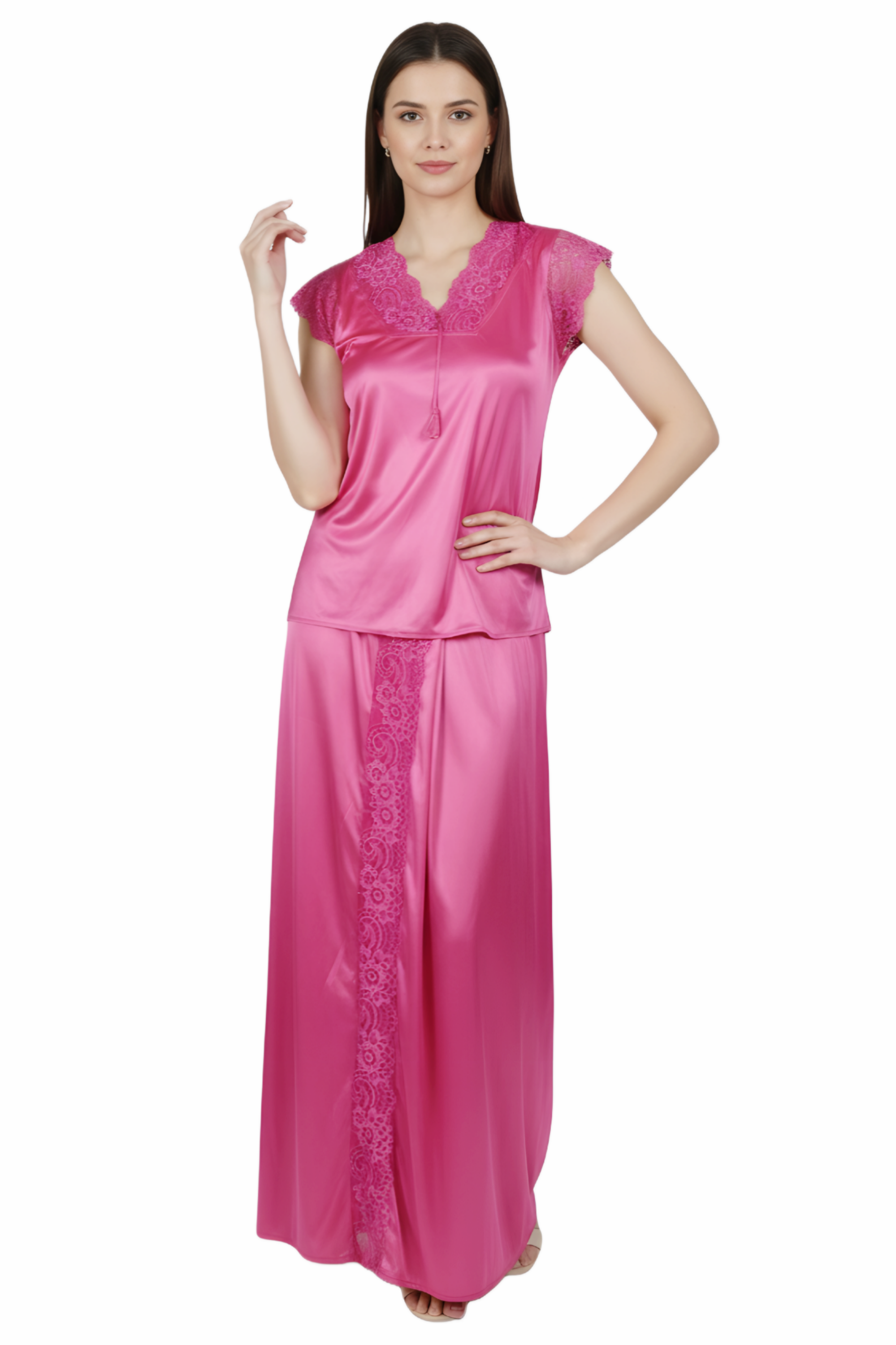 Fancy Bedroom 4pc Nighty with Robe for Women | Premium Satin Designer NightwearSoft & Comfortable Fit | V- Neck | Attractive & Stylish (113706 NIGHTY COMFORT)