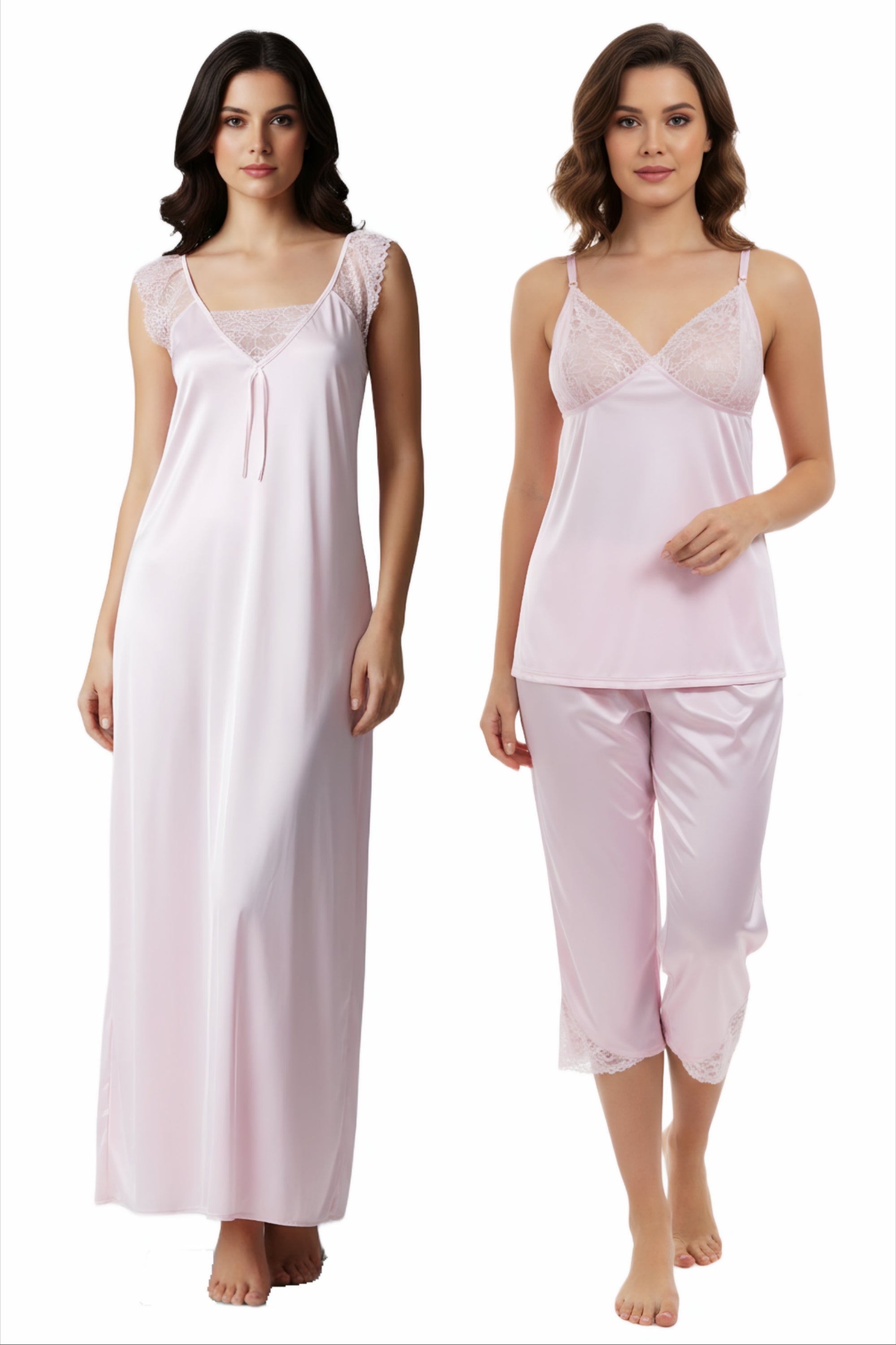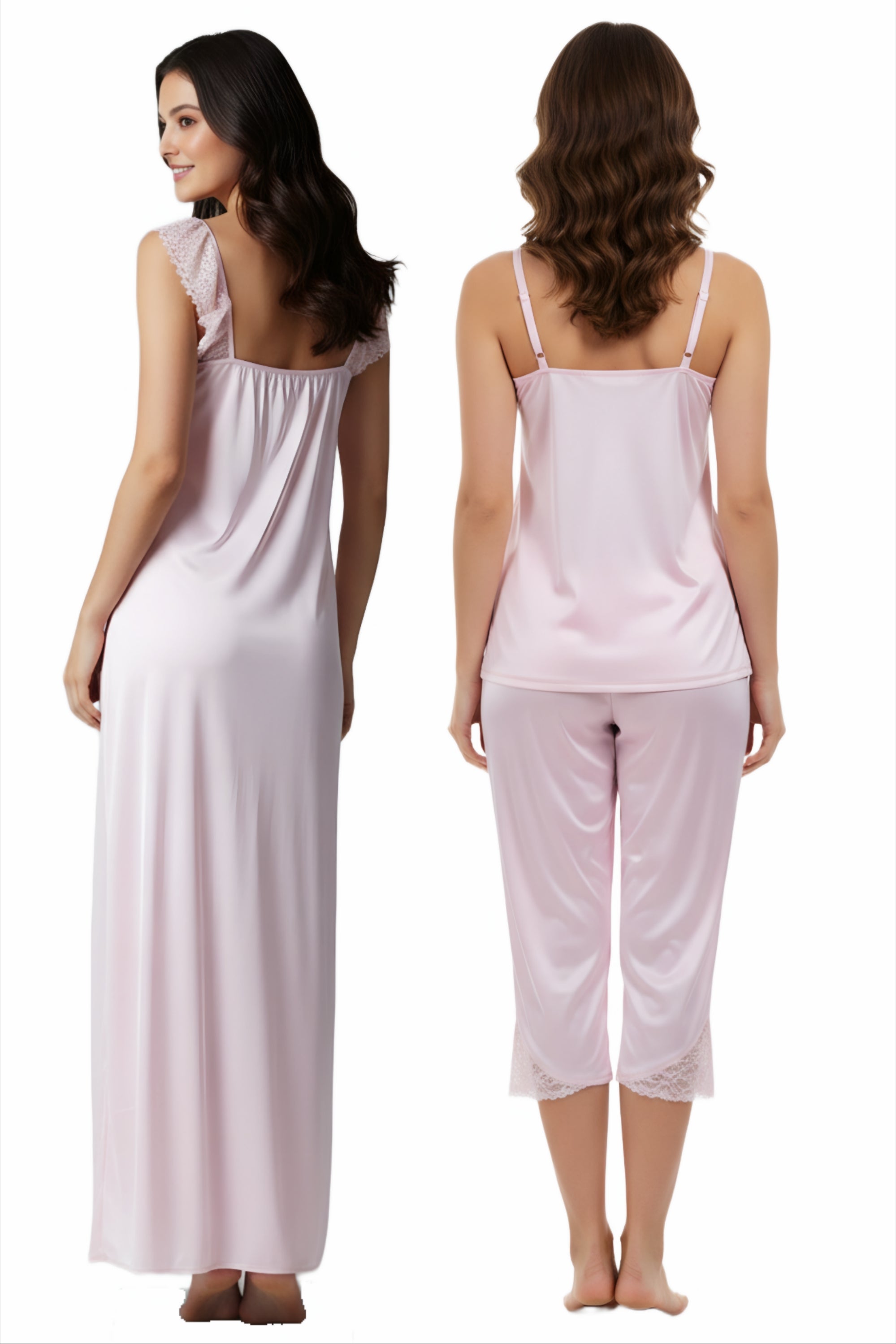 | Elevate your bedtime style with this premium women's fancy nighty, designed to combine comfort, elegance, and luxury. Made from soft satin fabric with delicate lace detailing, this nightwear ensures a smooth, silky feel against your skin for a relaxing sleep and cozy lounging experience |