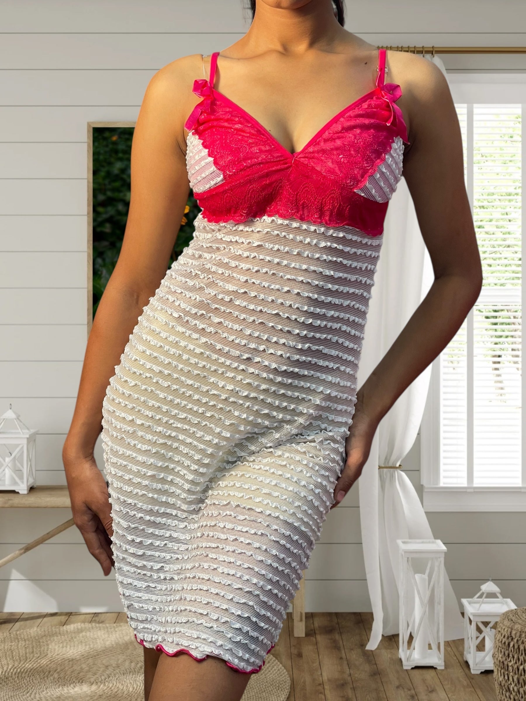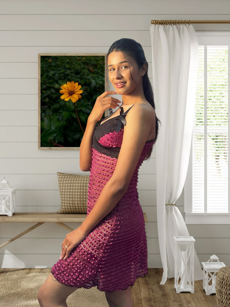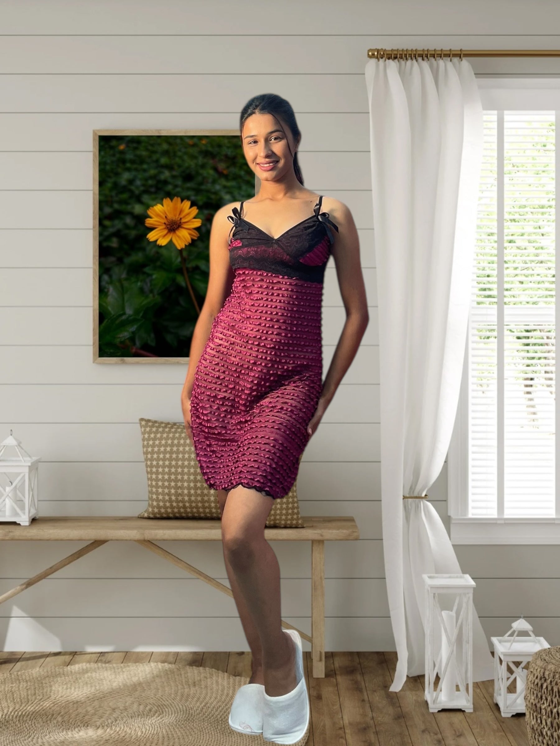 Turn up the charm with this soft, sheer babydoll nighty featuring delicate lace, adjustable straps, and a matching thong. Light, airy, and effortlessly seductive — perfect for a romantic night in.