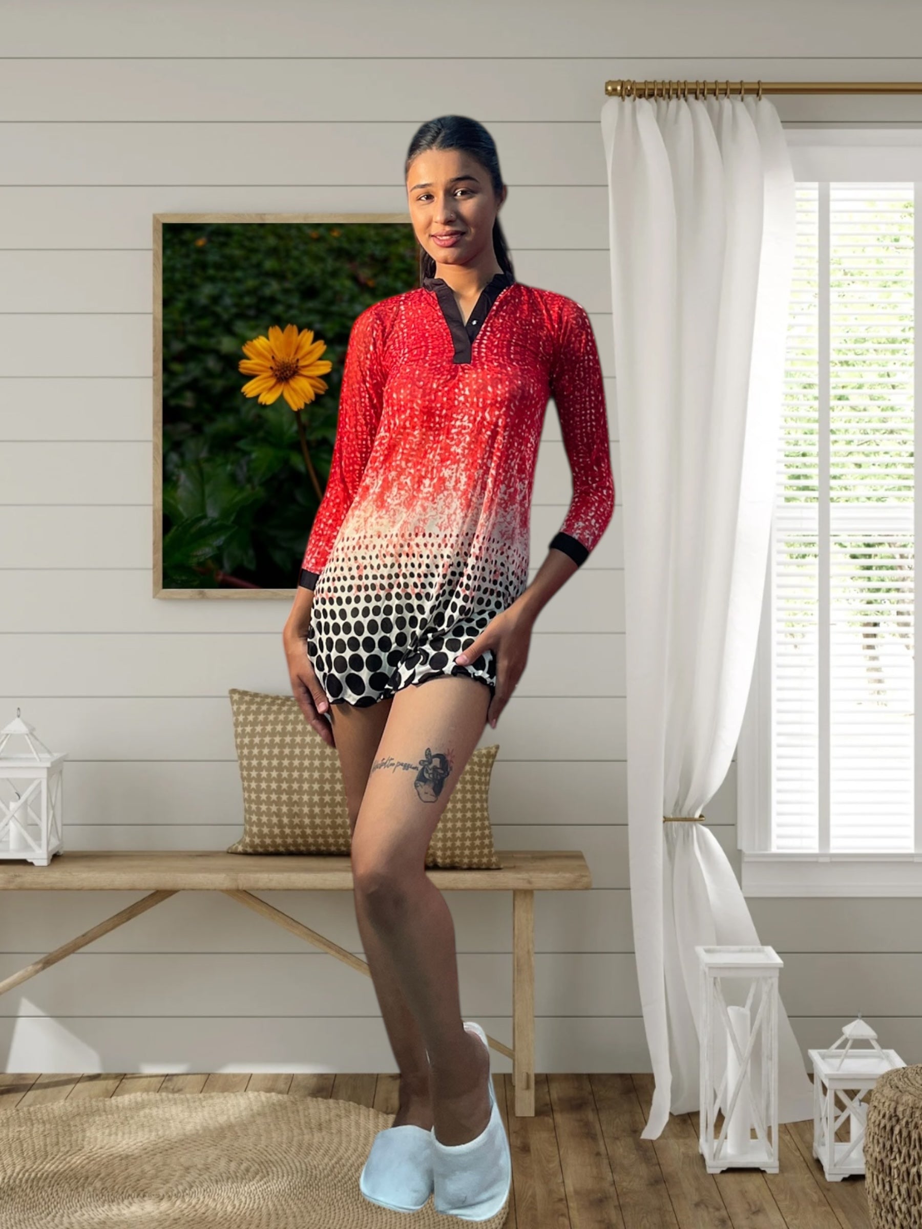 RED ROSE WOMEN LACE N MASH BABYDOLL NIGHTY WITH THONG