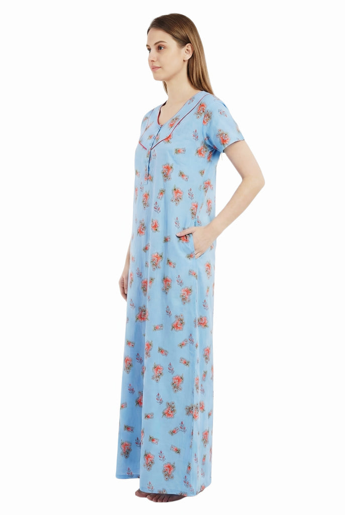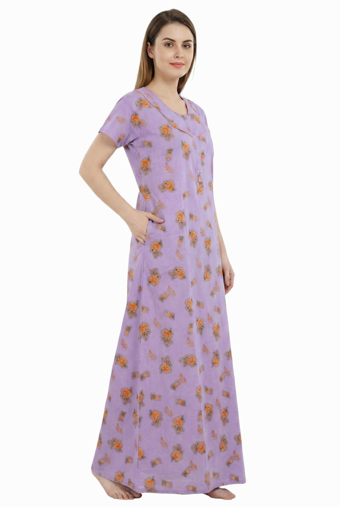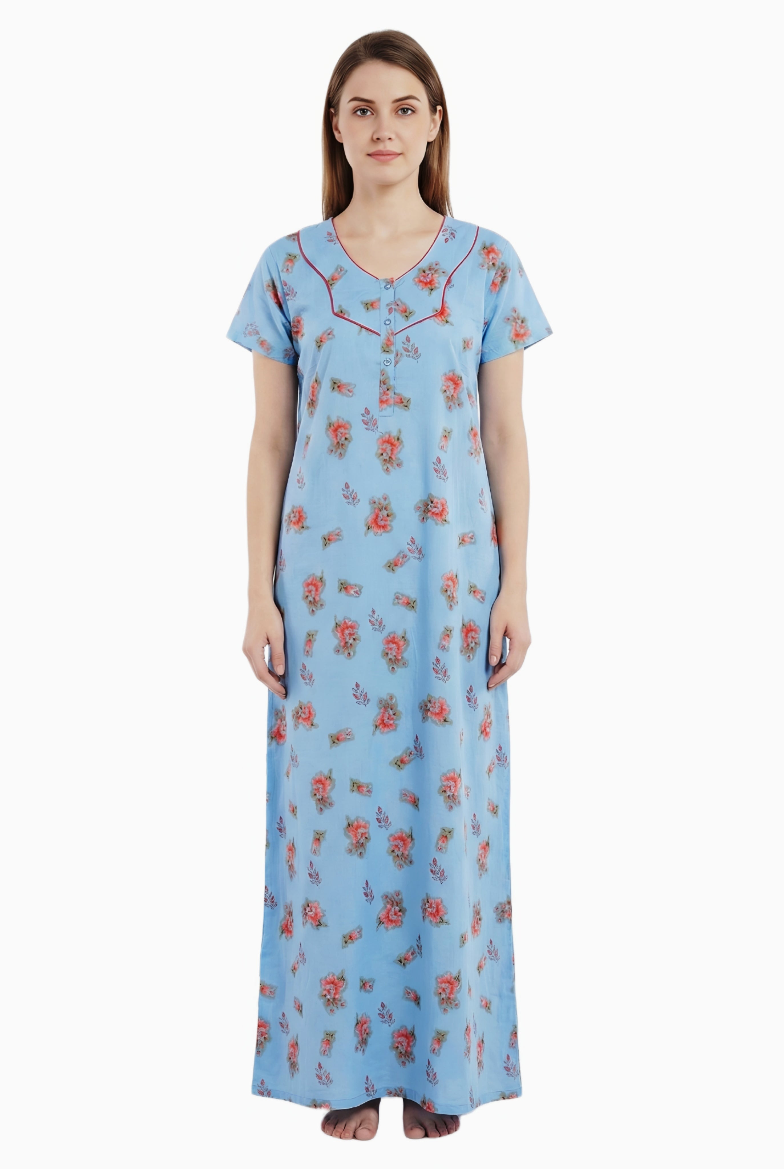 Comfort Women’s Pure Cotton Full-Length Night Gown Soft Skin-Friendly Fabric Stylish V-Nack Comfortable Daily & Night Wear ( Comfort 114373 GOWN )