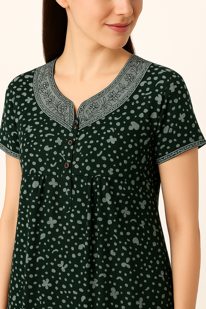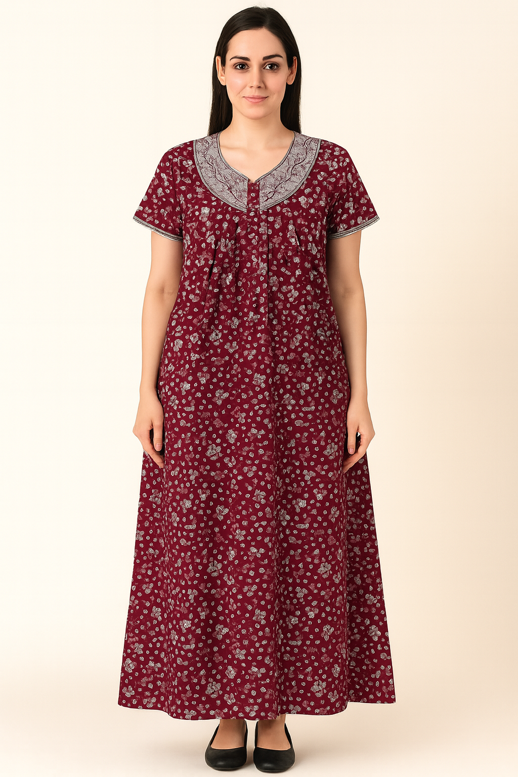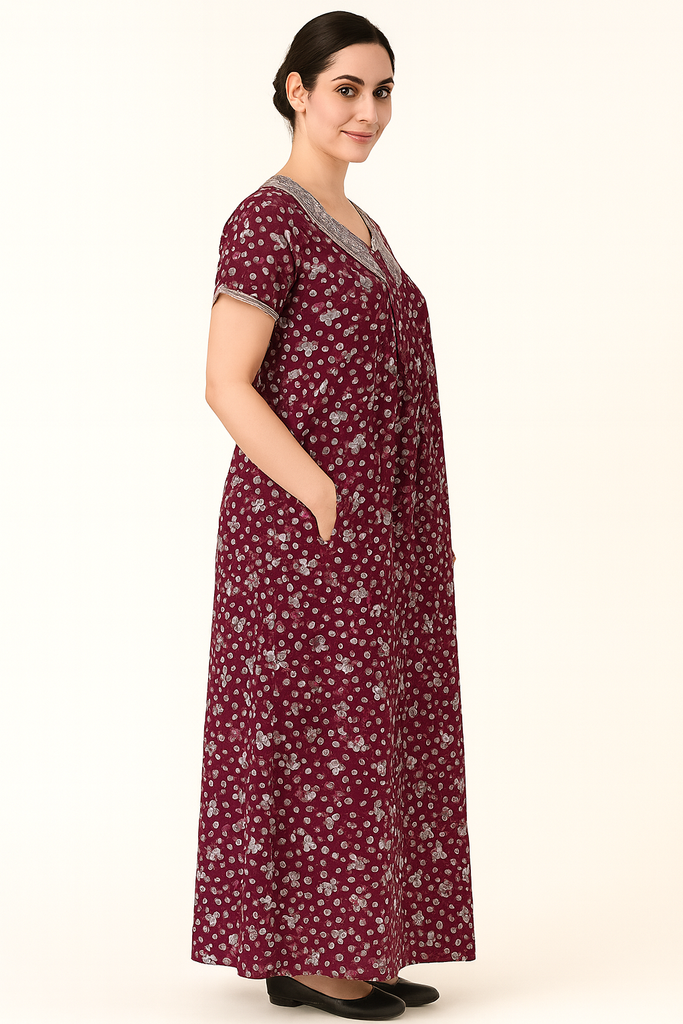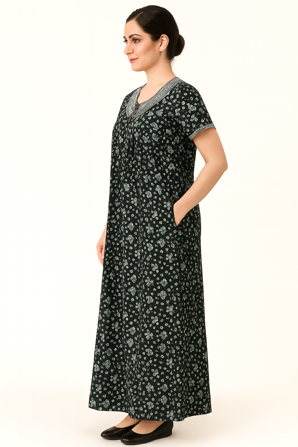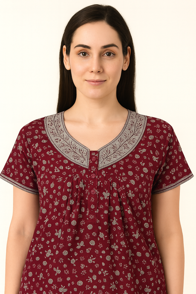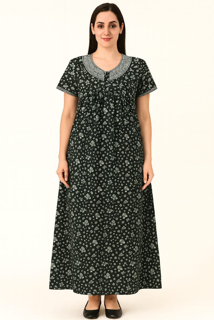 | Experience all-day comfort with this beautifully designed Women’s Cotton Night Gown featuring soft breathable fabric and elegant front pleats (pilits). Made from premium-quality cotton, this gown ensures maximum comfort, perfect for daily wear, lounging, or bedtime. The relaxed silhouette, smooth finish, and long floor-length design provide both comfort and style, making it an ideal choice for women of all ages. |