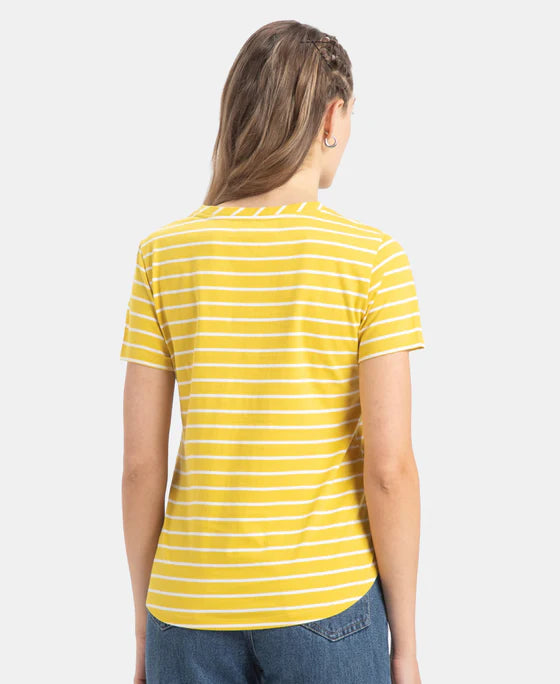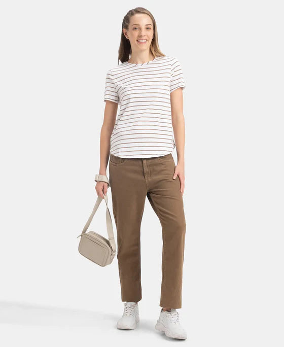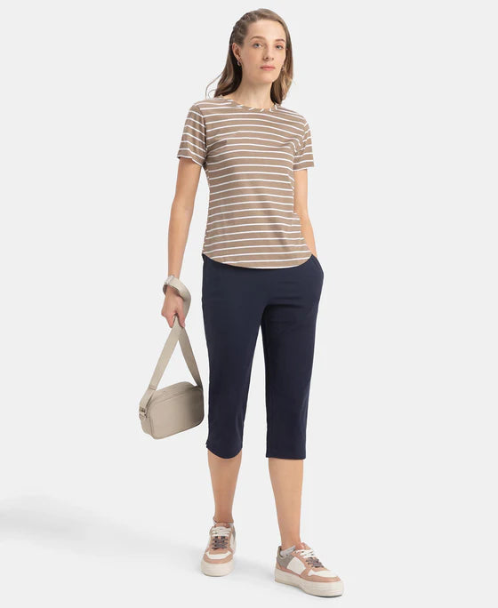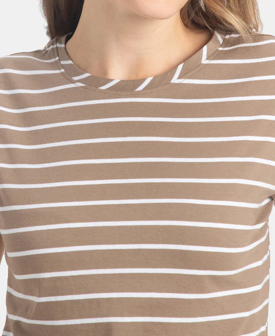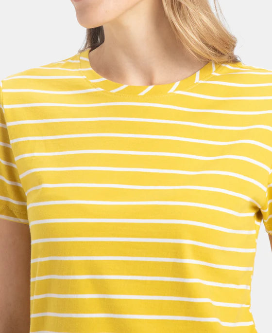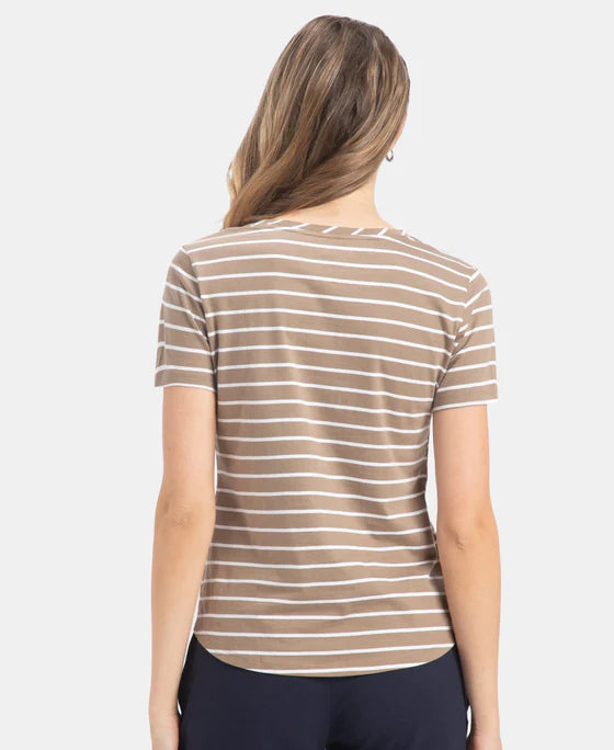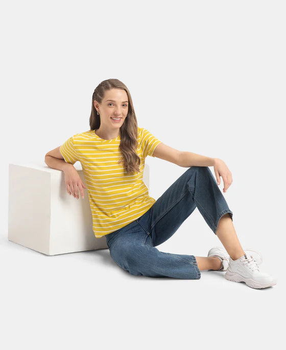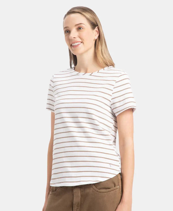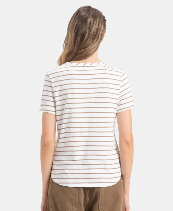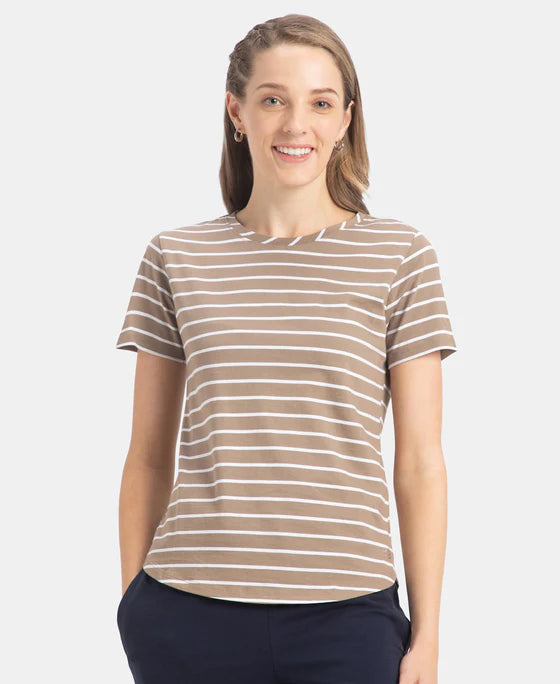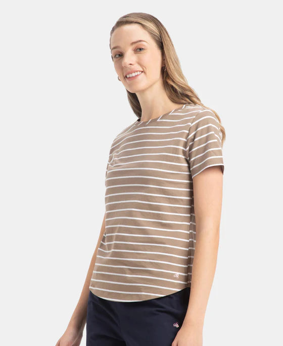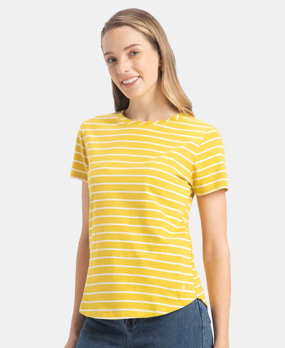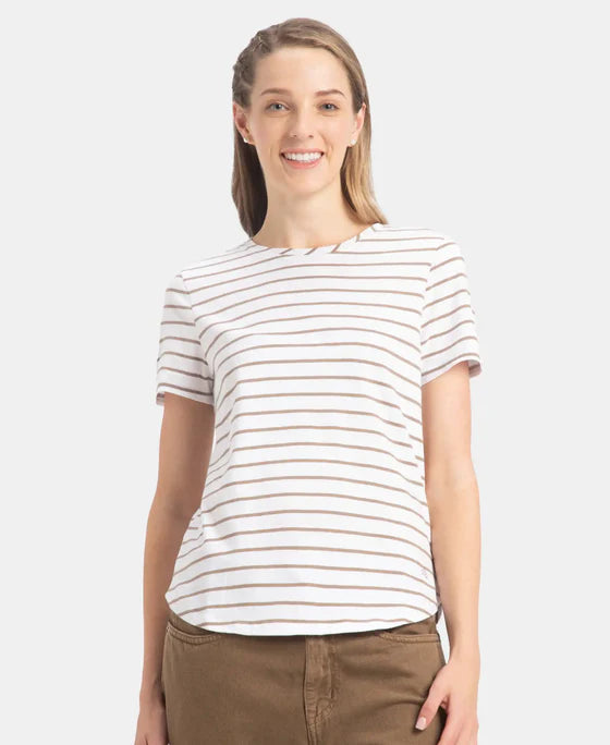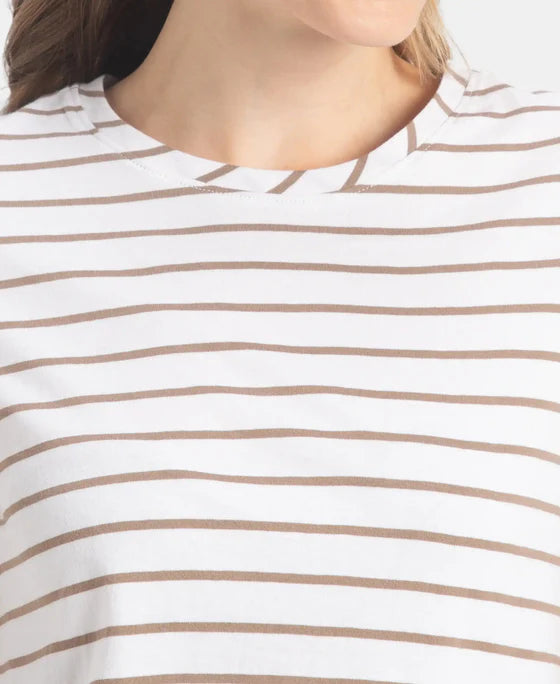 JOCKEY Women's Super Combed Cotton Stripe Fabric Relaxed Fit Round Neck Half Sleeve T-Shirt #A121 | INEZY