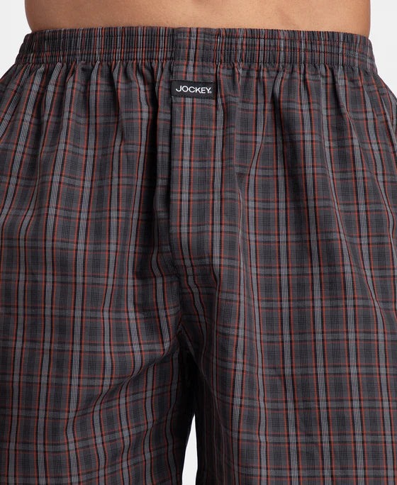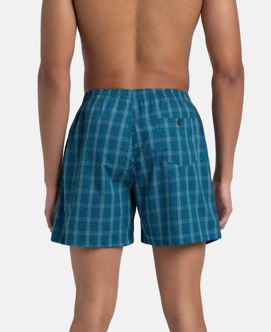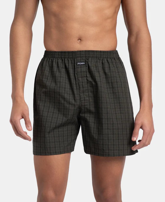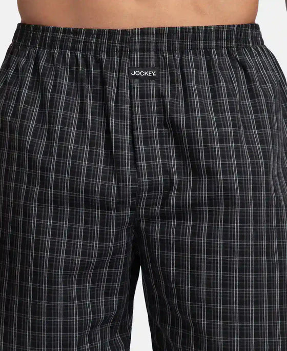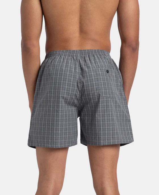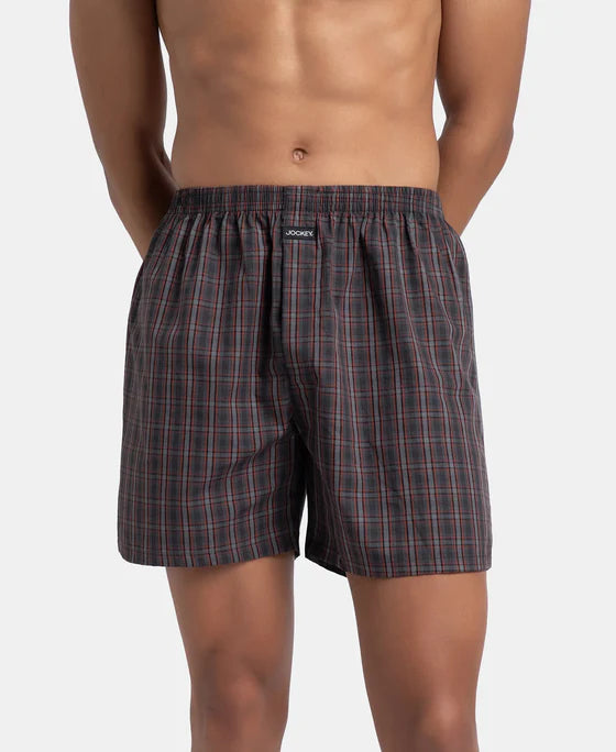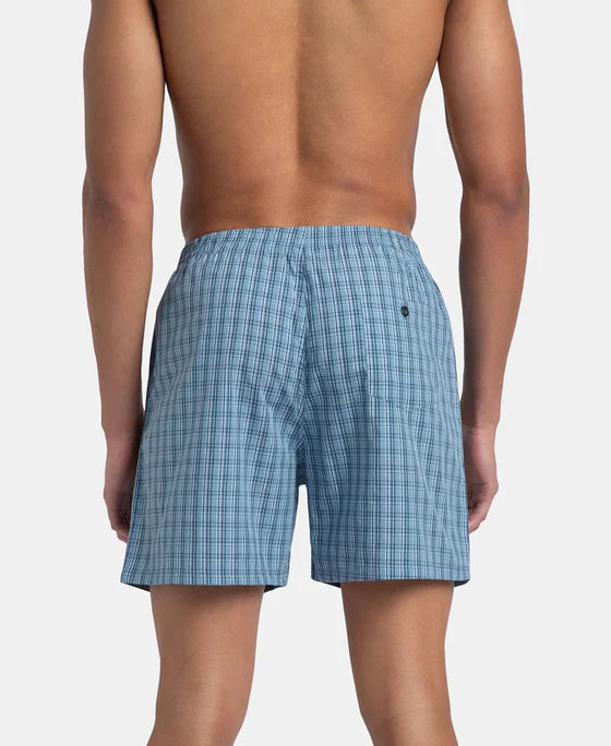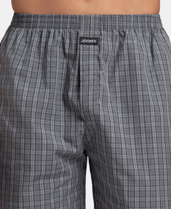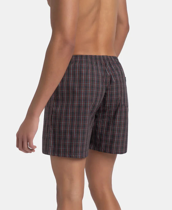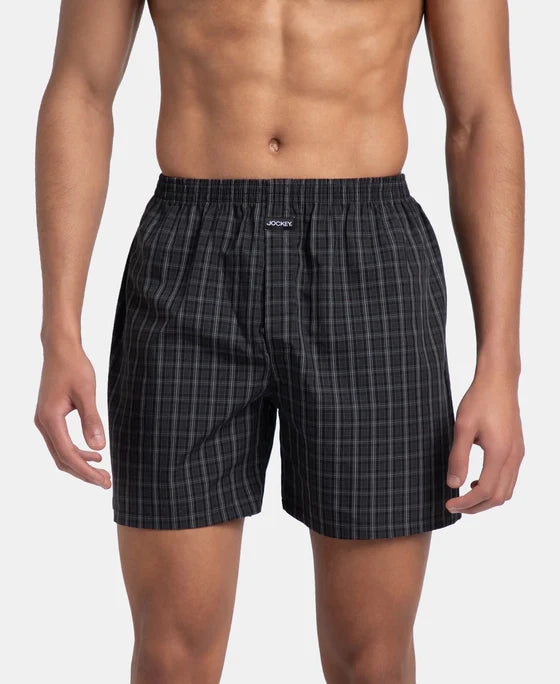 JOCKEY Men's Super Combed Mercerized Cotton Woven Checkered Boxer Shorts with Back Pocket - (Pack of 2) #1222 | INEZY