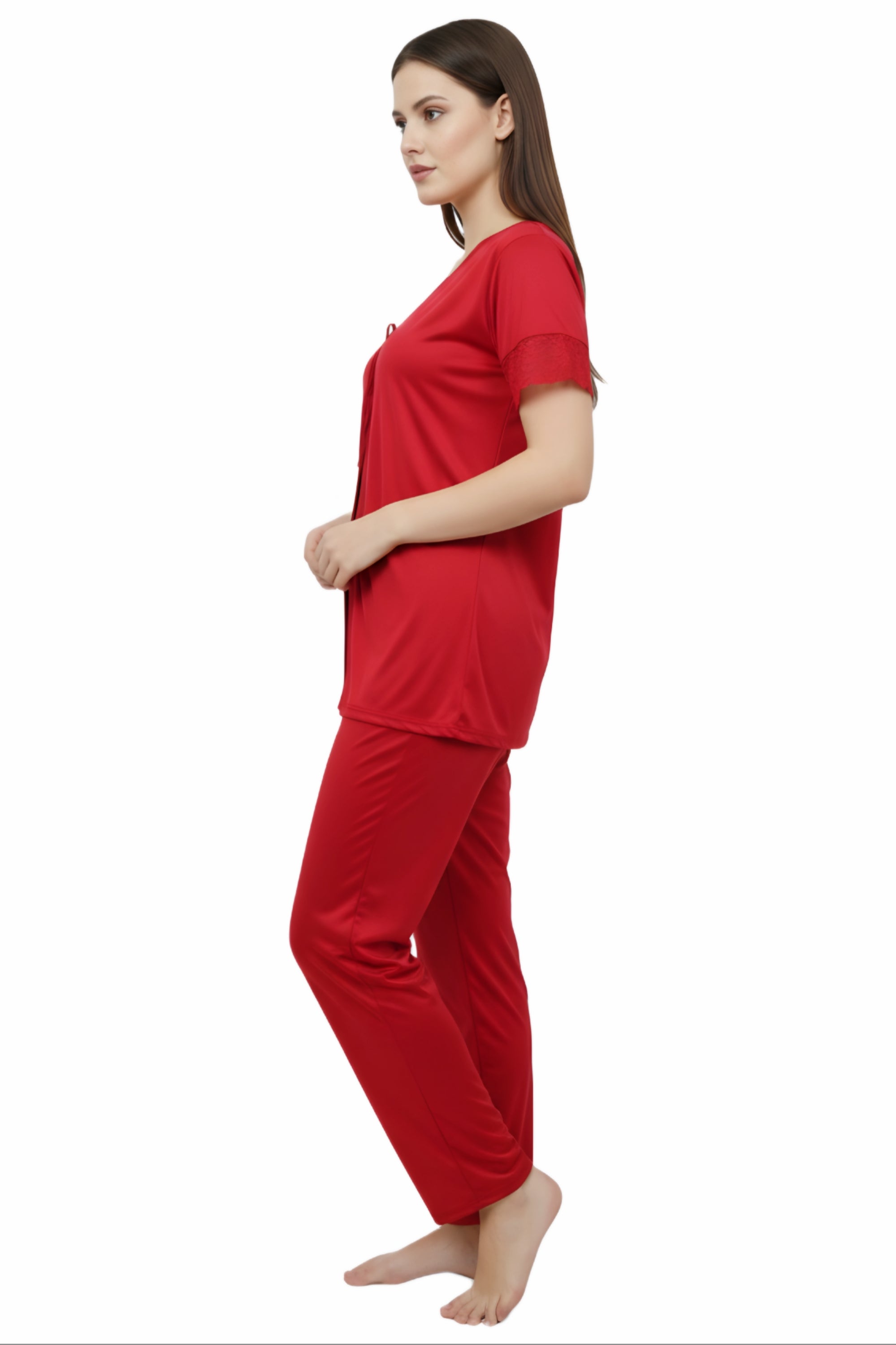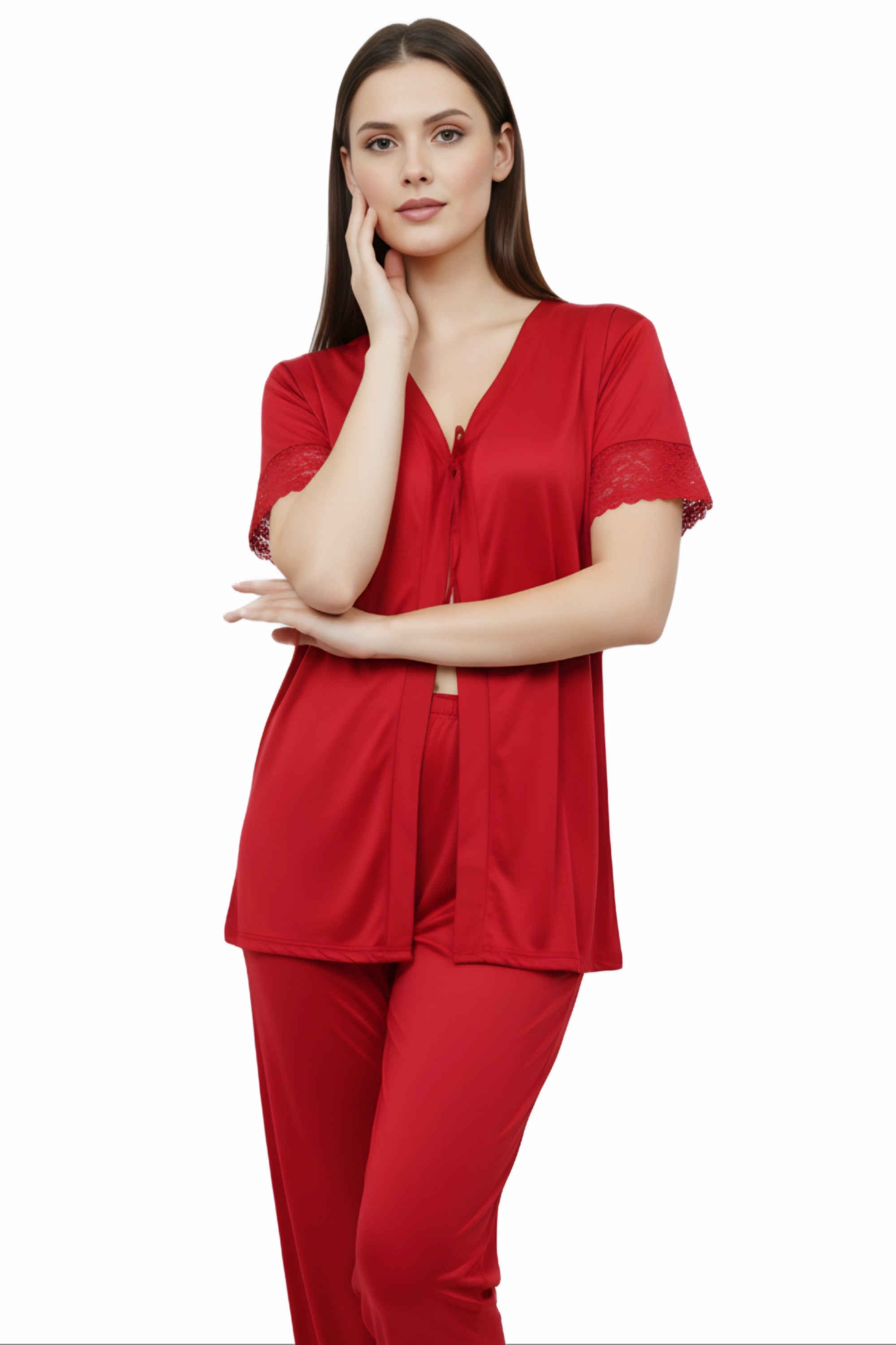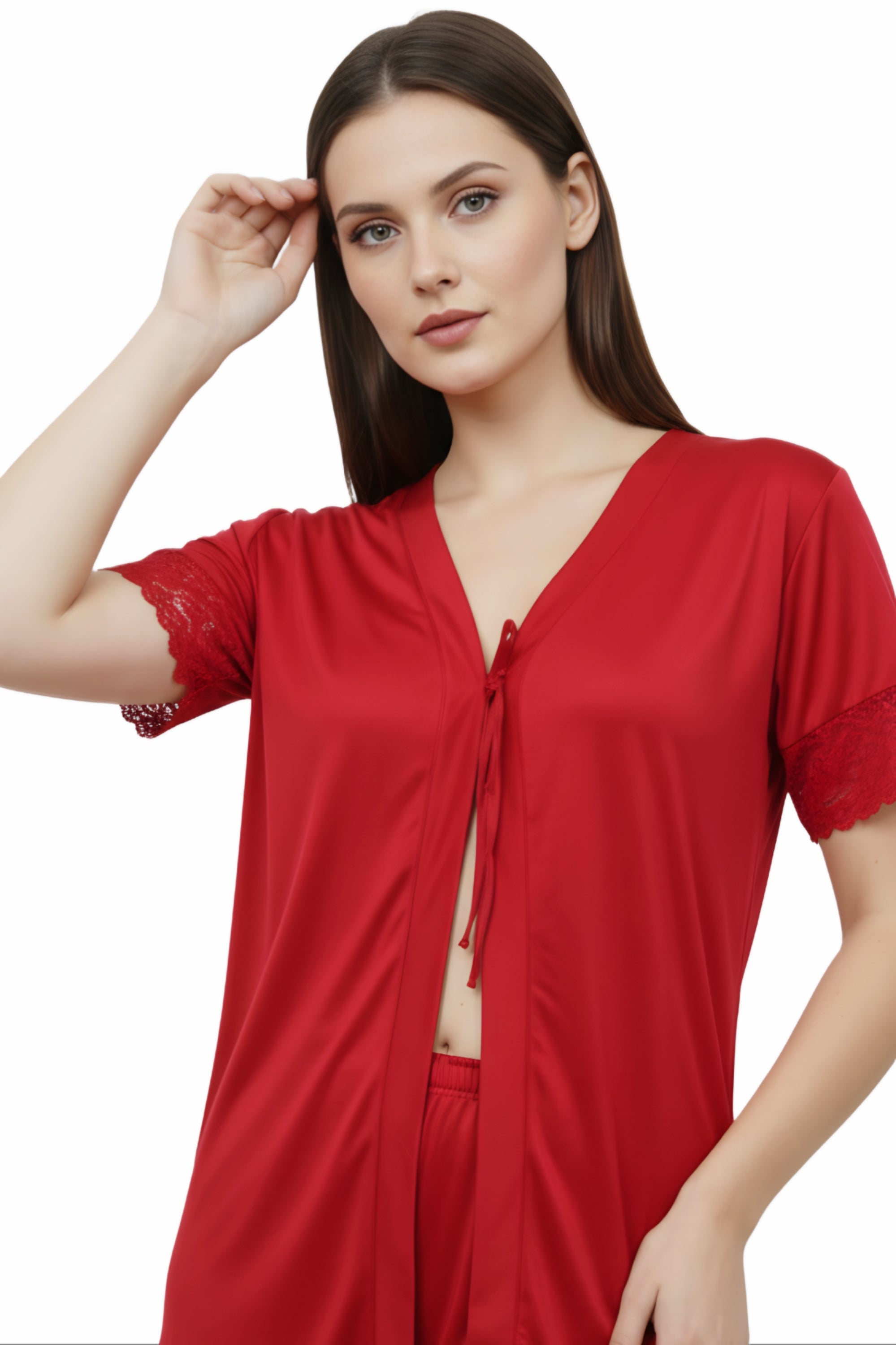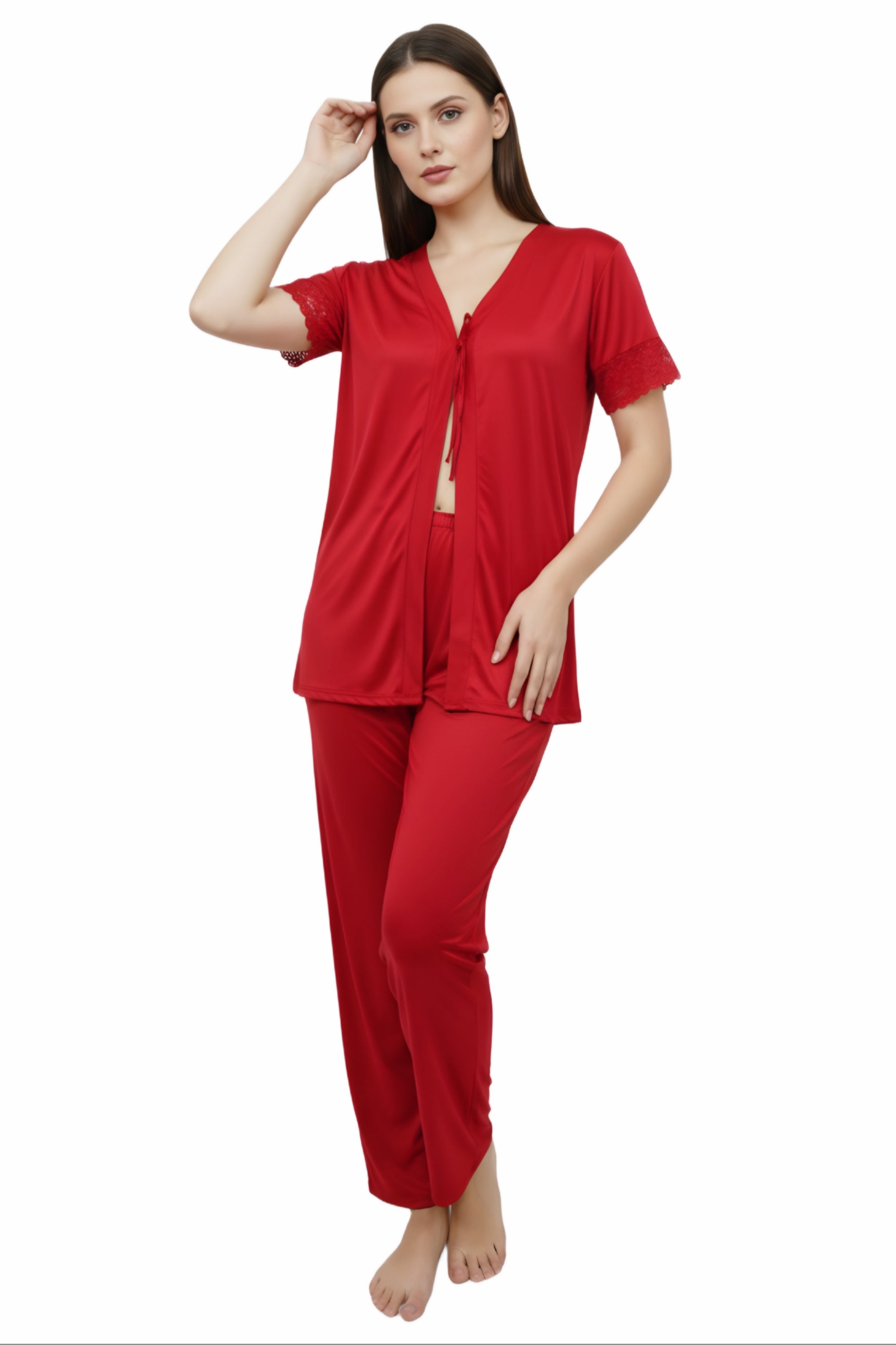 Elevate your bedtime style with this premium women's fancy nighty, designed to combine comfort, elegance, and luxury. Made from soft satin fabric with delicate lace detailing, this nightwear ensures a smooth, silky feel against your skin for a relaxing sleep and cozy lounging experience