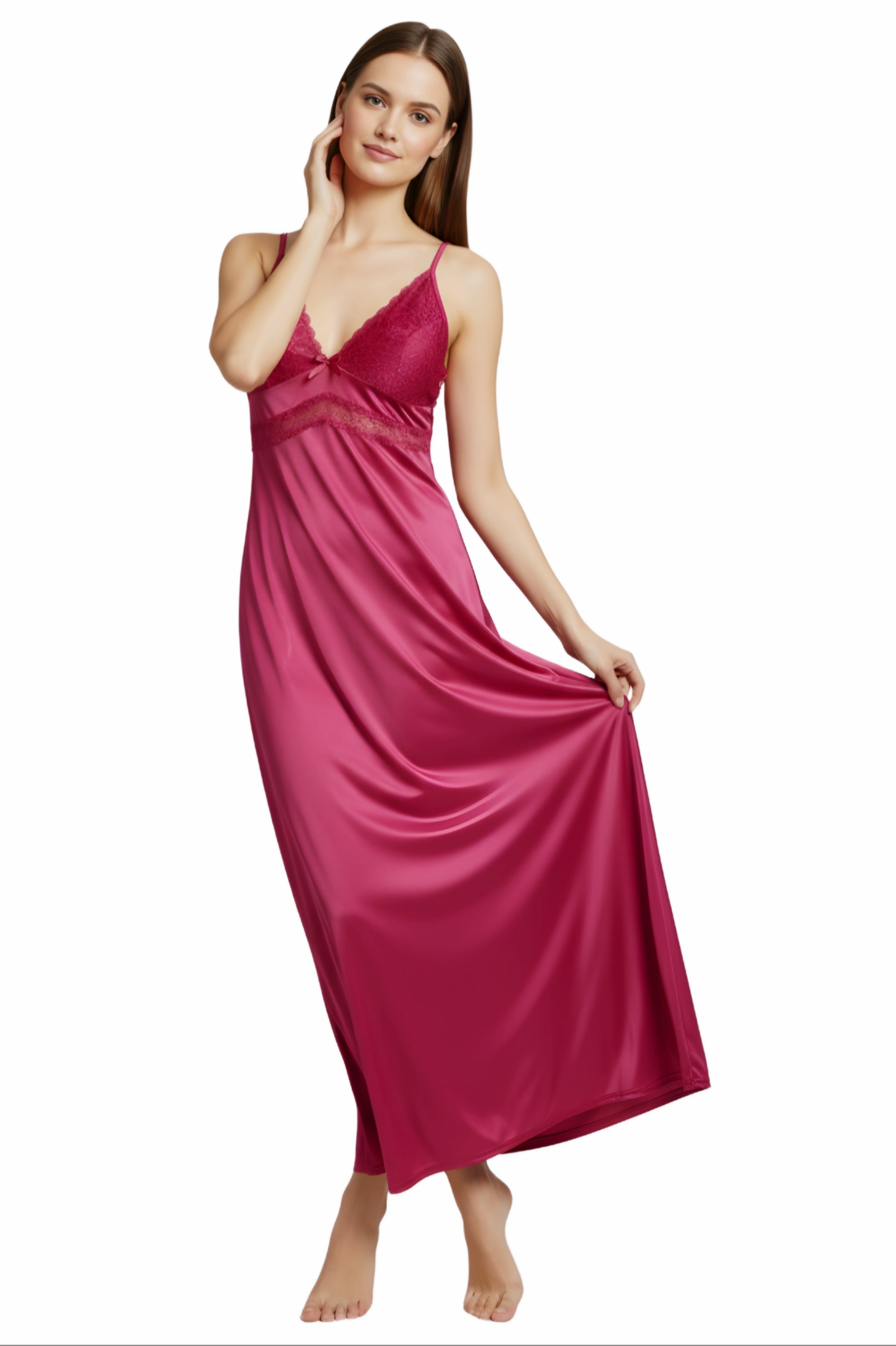 | Elevate your bedtime style with this premium women's fancy nighty, designed to combine comfort, elegance, and luxury. Made from soft satin fabric with delicate lace detailing, this nightwear ensures a smooth, silky feel against your skin for a relaxing sleep and cozy lounging experience |