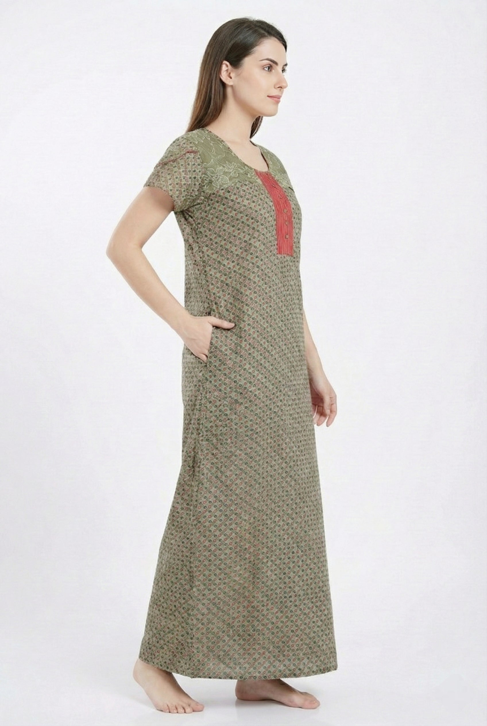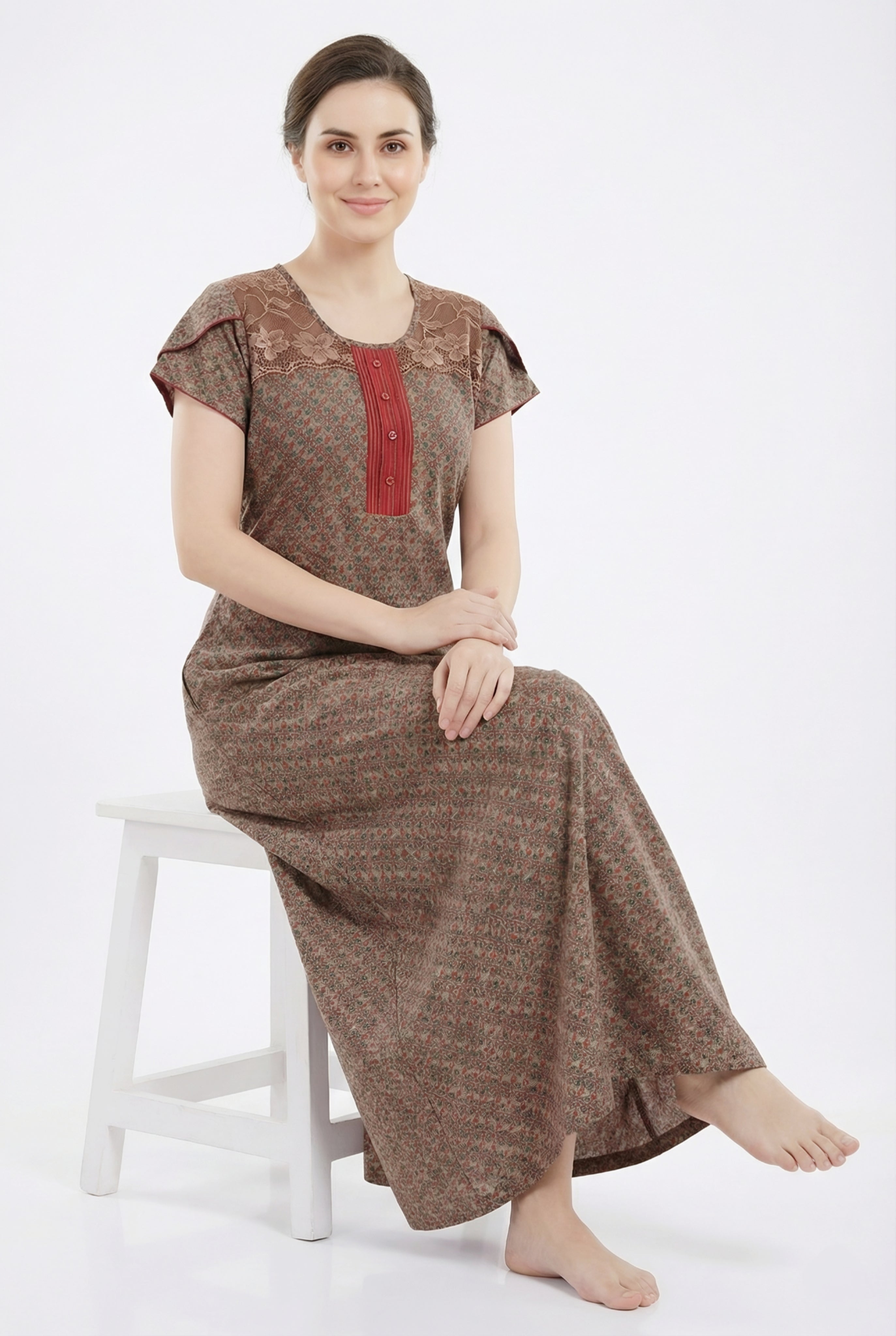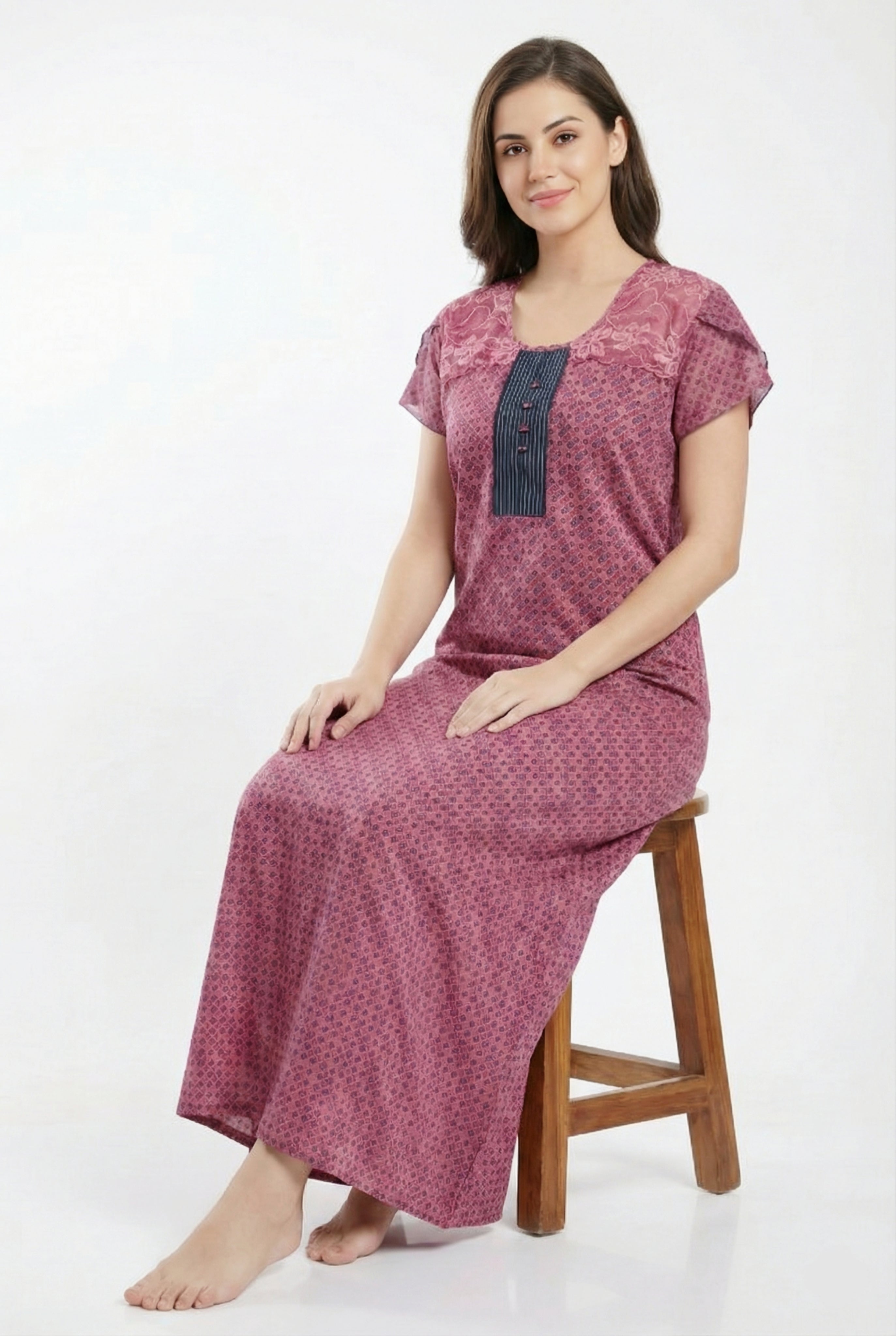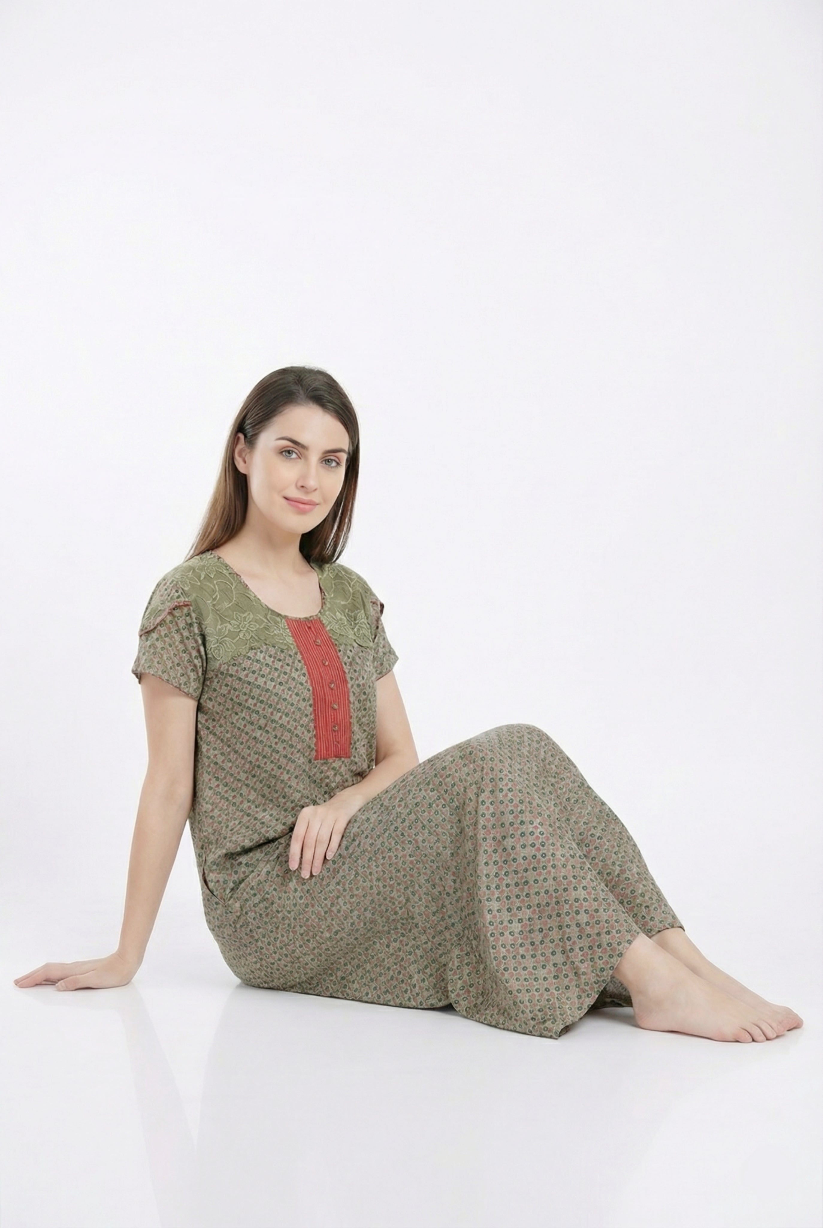 | Experience all-day and night comfort with this Women’s Alpine Fabric Night Gown, crafted from soft and breathable alpine cotton. Designed for maximum comfort, this gown features a round neck, smooth finishing, and a relaxed full-length silhouette that gives a perfect fall. The fabric feels gentle on the skin, making it ideal for daily use, lounging, and night wear. |