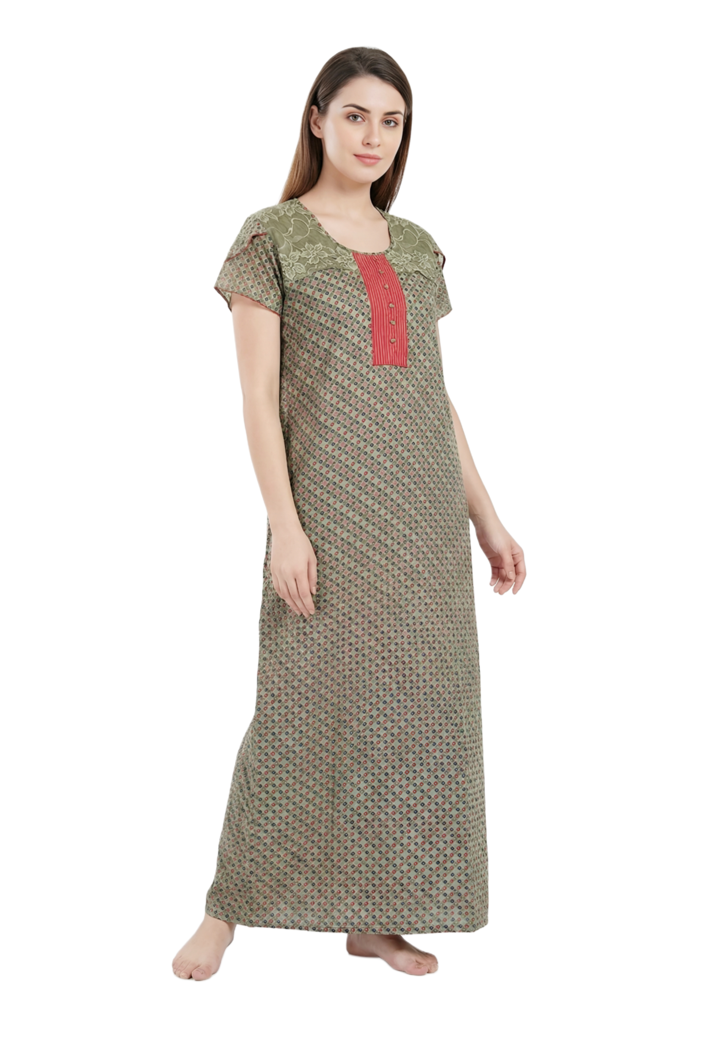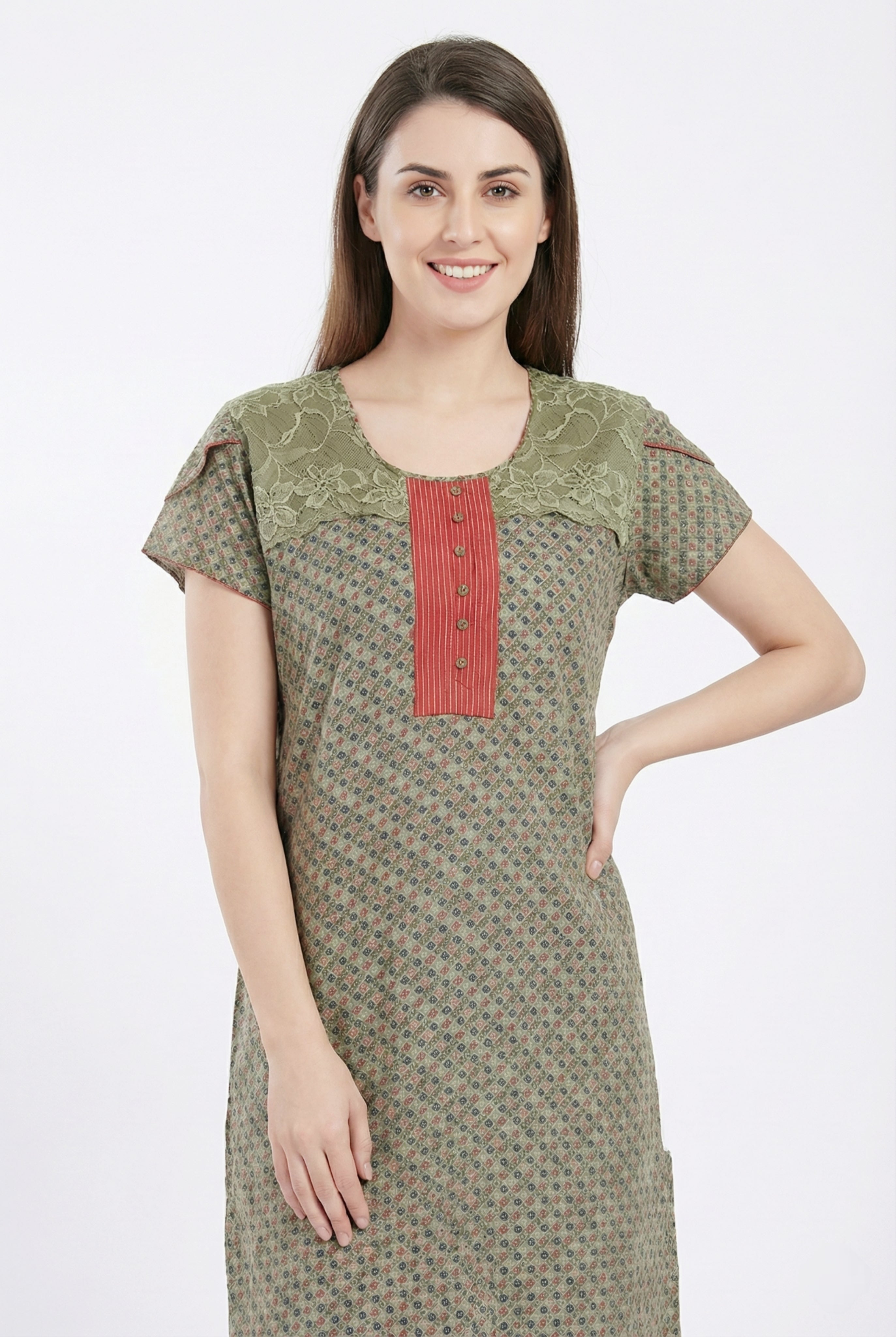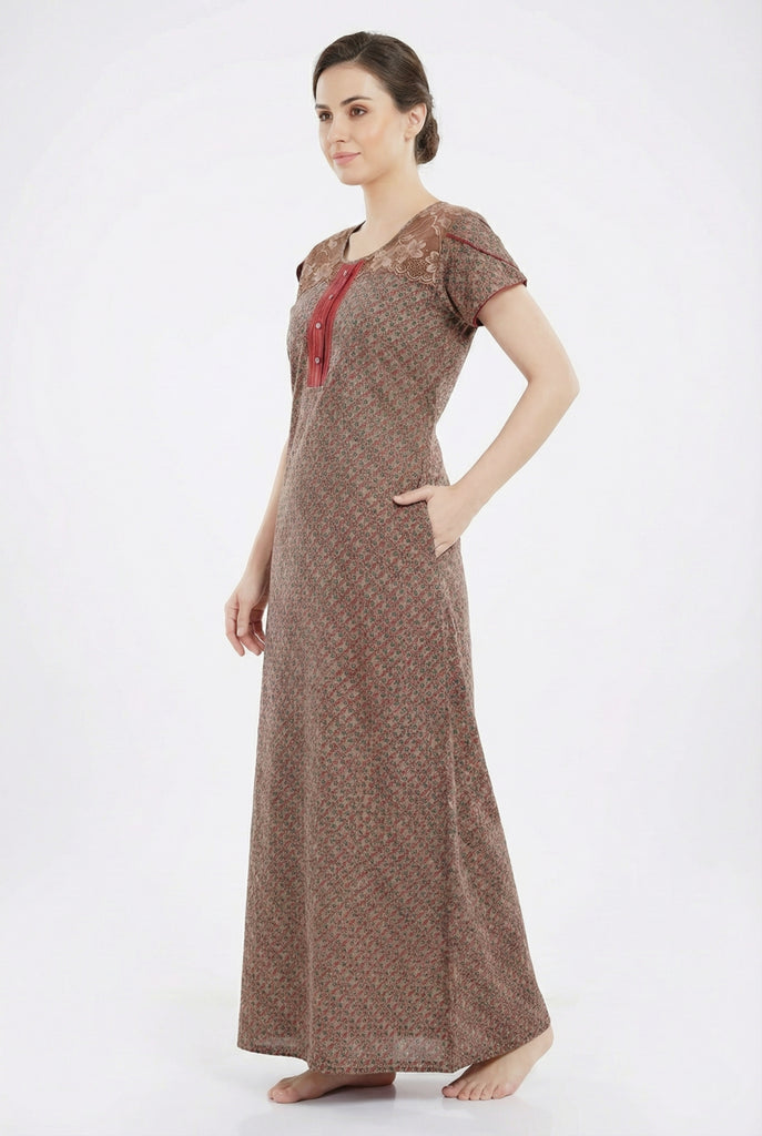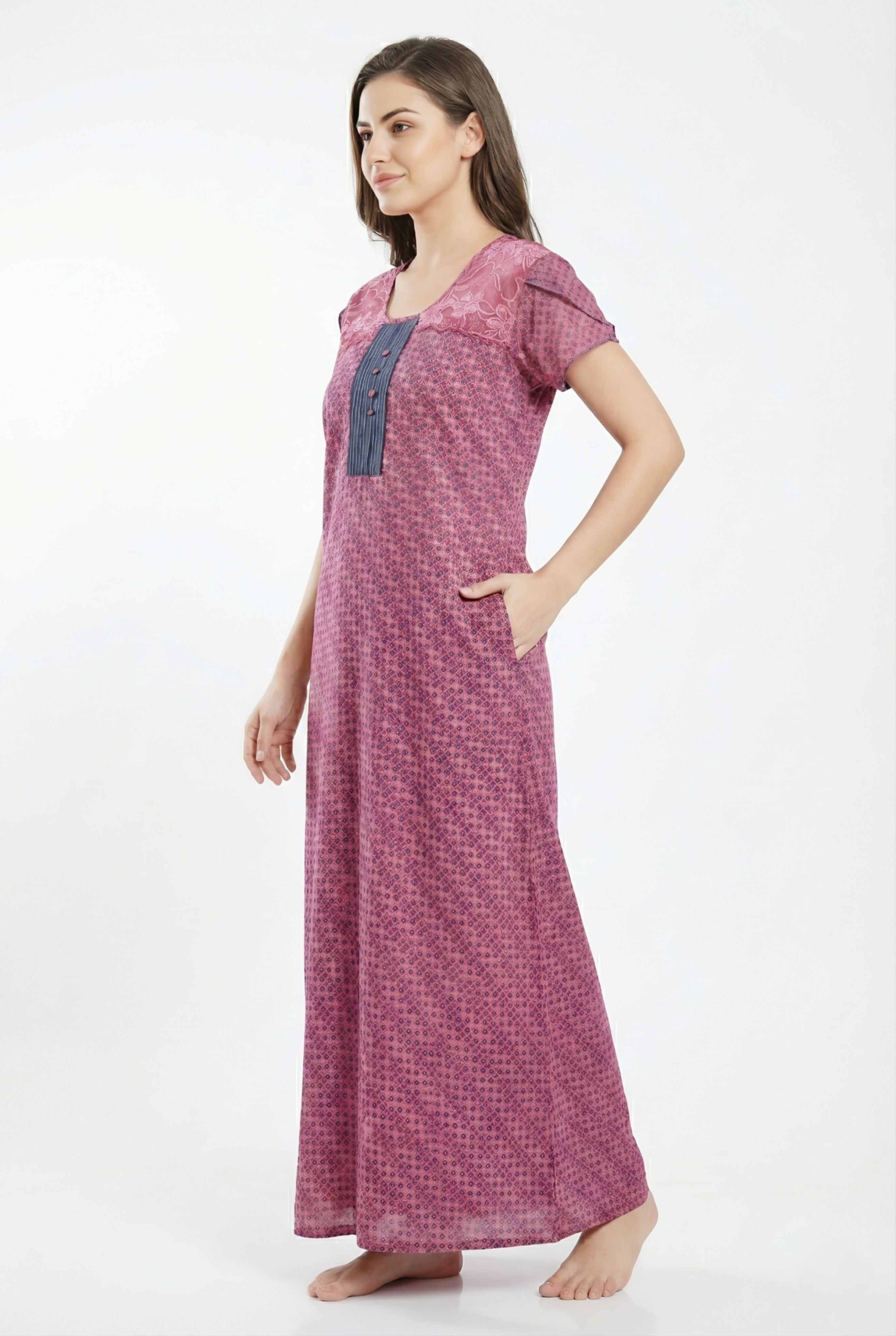 | Experience all-day and night comfort with this Women’s Alpine Fabric Night Gown, crafted from soft and breathable alpine cotton. Designed for maximum comfort, this gown features a round neck, smooth finishing, and a relaxed full-length silhouette that gives a perfect fall. The fabric feels gentle on the skin, making it ideal for daily use, lounging, and night wear. |