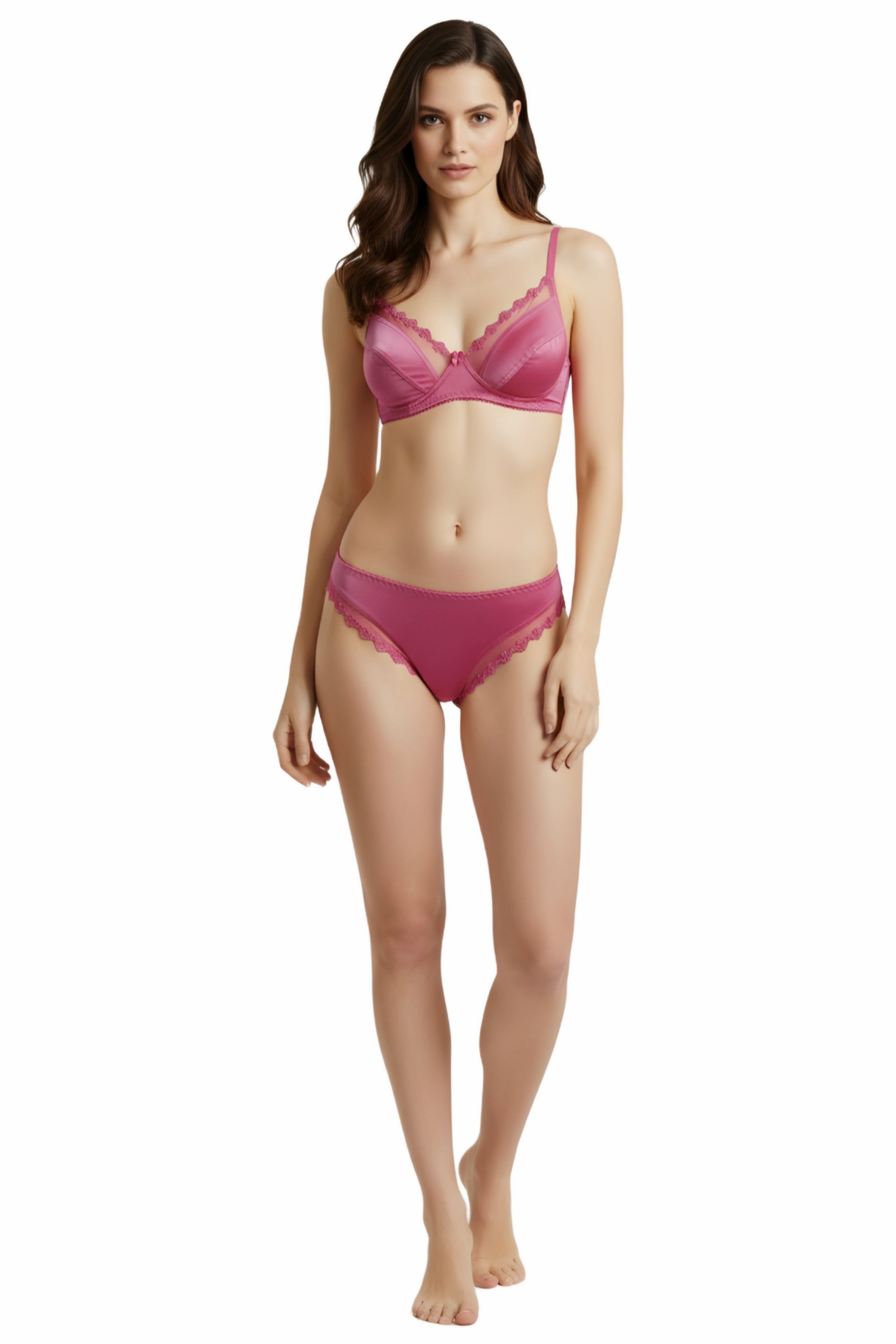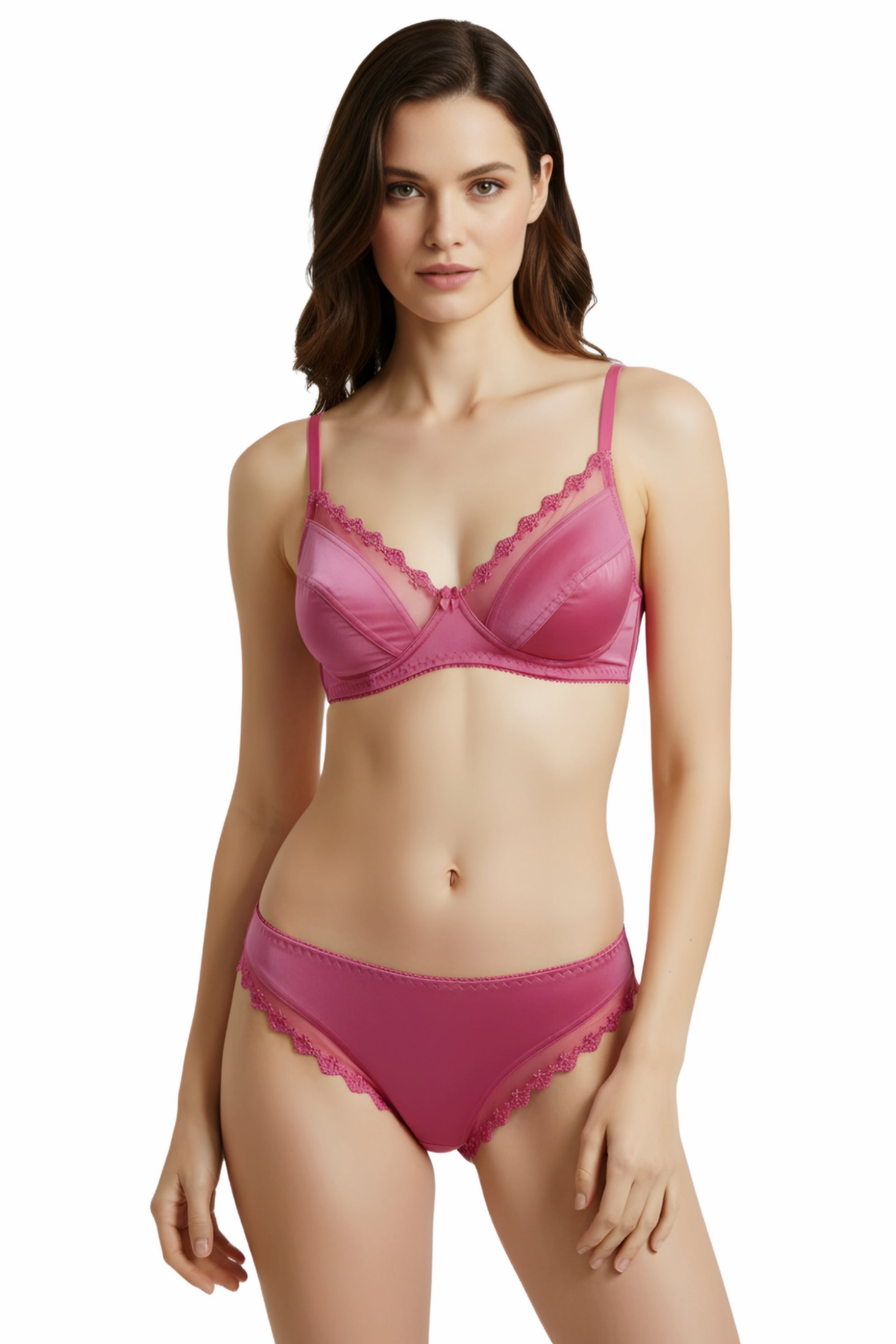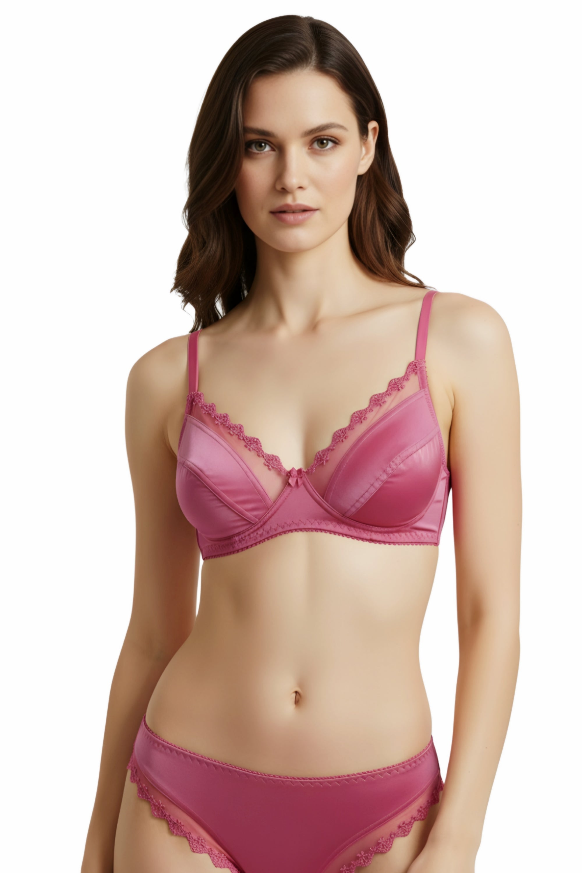 Upgrade your lingerie collection with this Fancy Satin & Net Bra Panty Set, designed to combine elegance, comfort, and modern style. Made from premium satin fabric paired with delicate net detailing, this set offers a smooth touch against the skin while maintaining breathability for all-day wear.