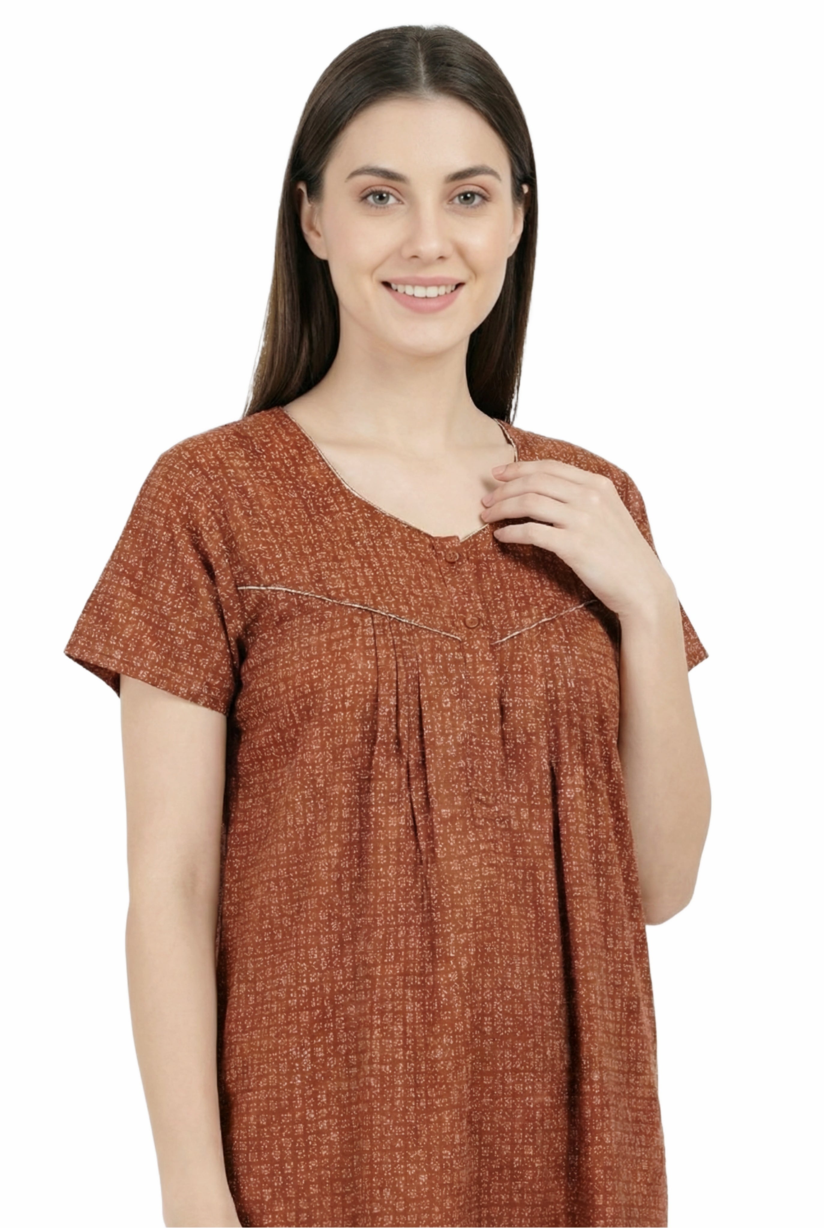 Experience all-day comfort with this beautifully designed Women’s Cotton Night Gown featuring soft breathable fabric and elegant front pleats (pilits). Made from premium-quality cotton, this gown ensures maximum comfort, perfect for daily wear, lounging, or bedtime. The relaxed silhouette, smooth finish, and long floor-length design provide both comfort and style, making it an ideal choice for women of all ages. |