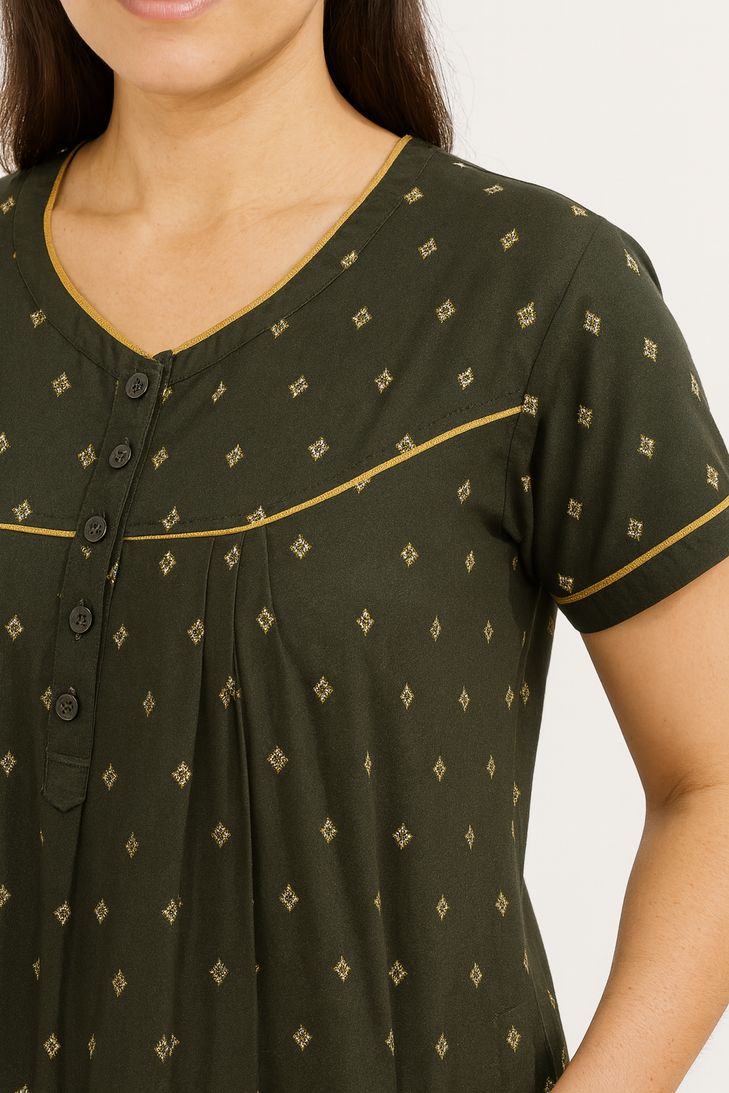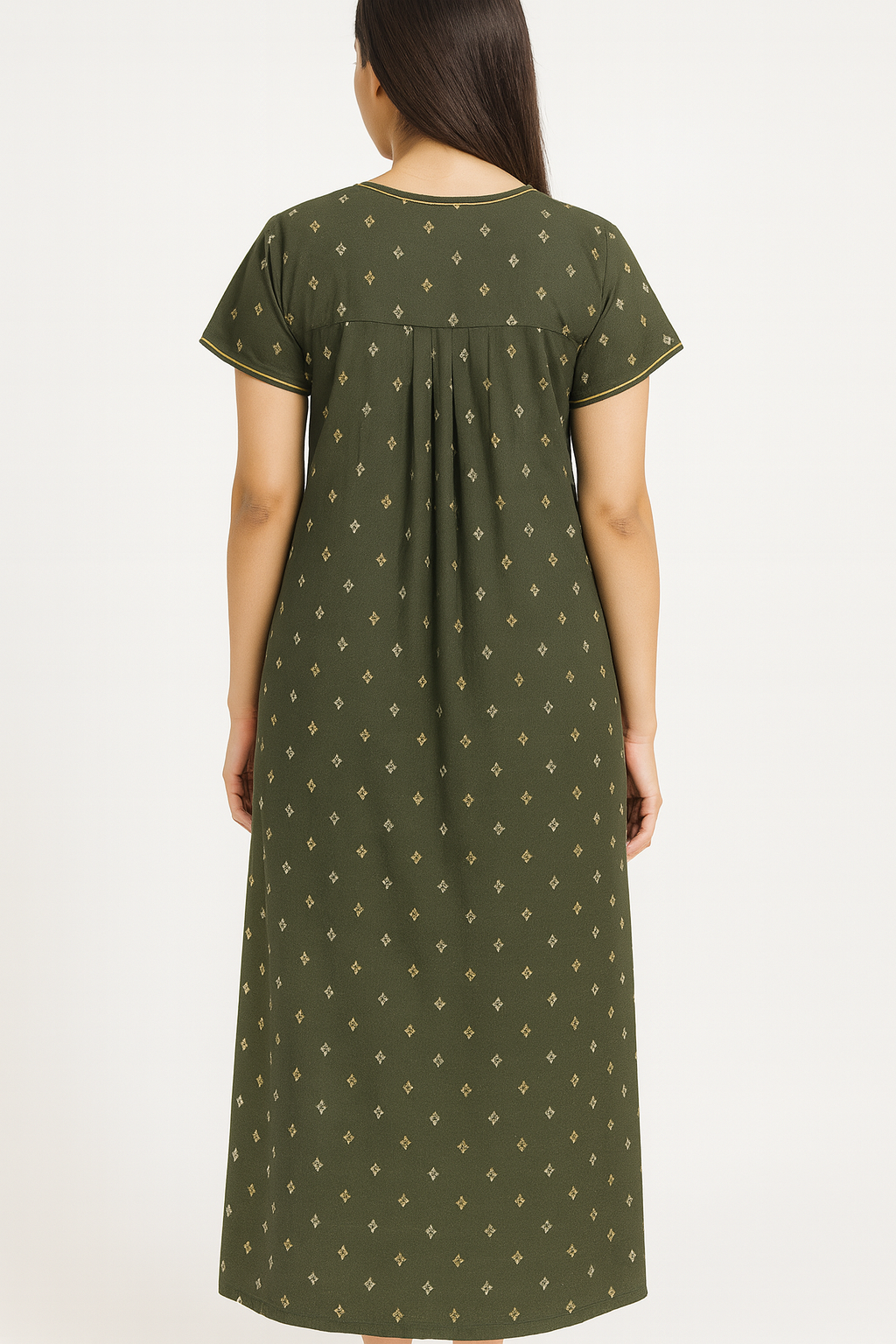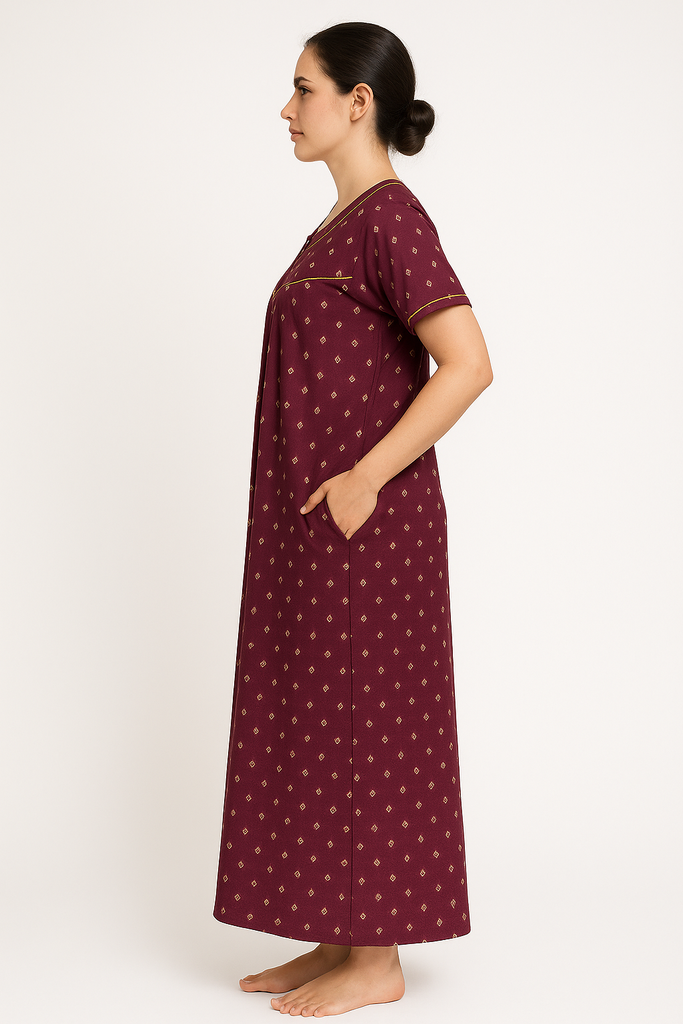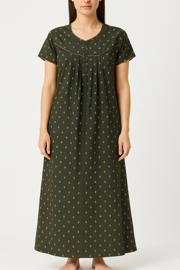 Experience all-day comfort with this beautifully designed Women’s Cotton Night Gown featuring soft breathable fabric and elegant front pleats (pilits). Made from premium-quality cotton, this gown ensures maximum comfort, perfect for daily wear, lounging, or bedtime. The relaxed silhouette, smooth finish, and long floor-length design provide both comfort and style, making it an ideal choice for women of all ages.
