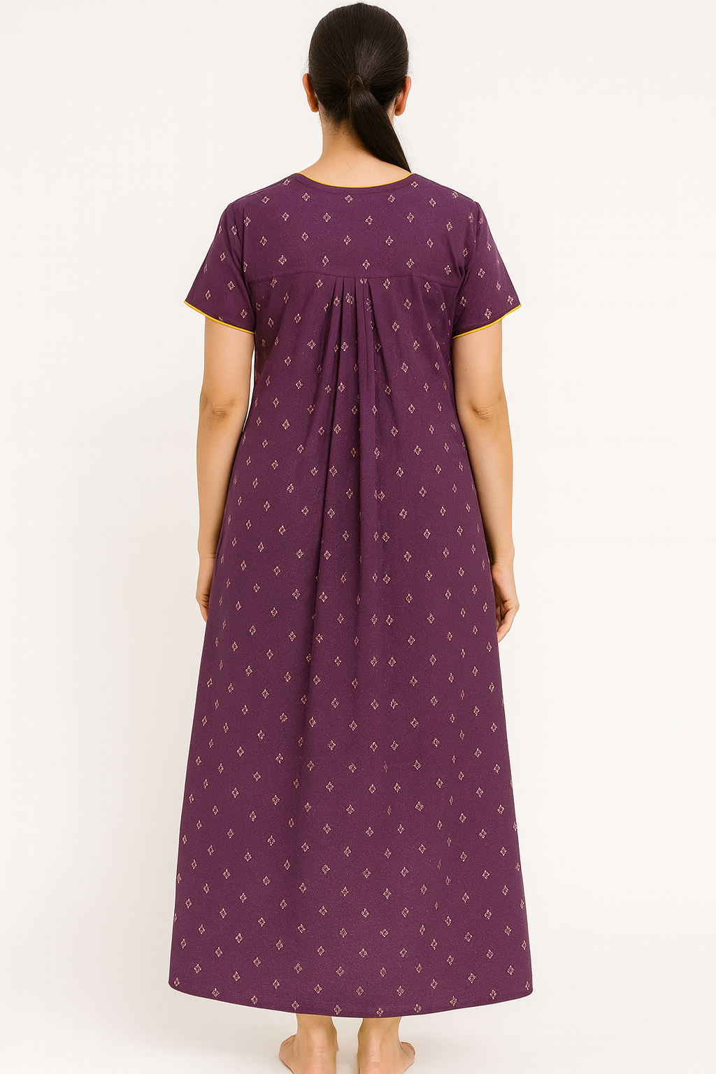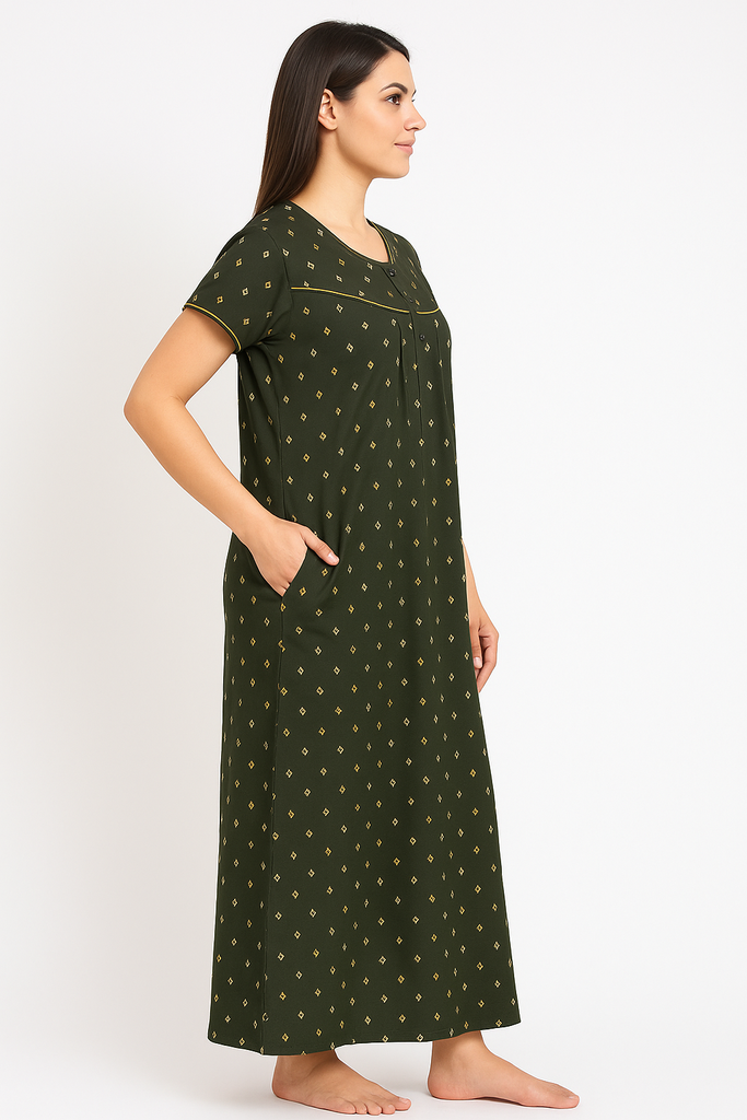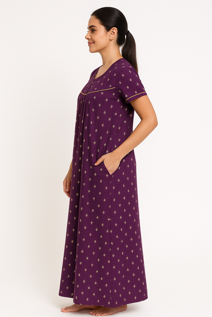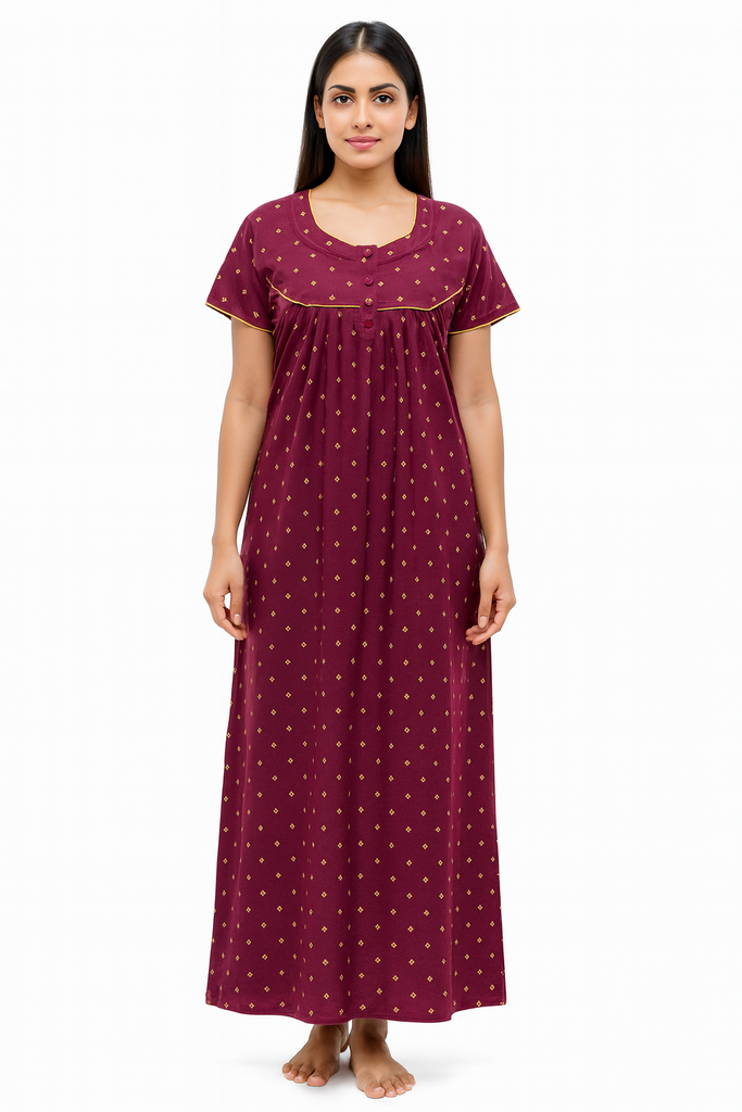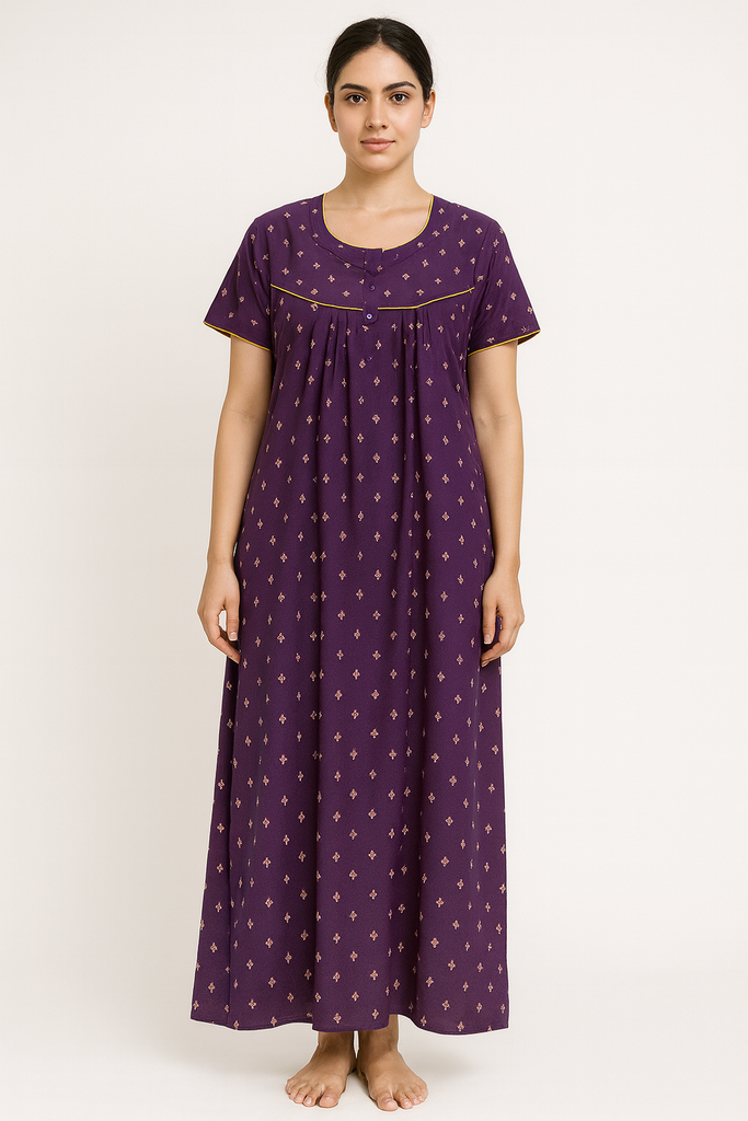 Comfort Women’s Pure Cotton Full-Length Night Gown | Soft Skin-Friendly Fabric | Stylish Front Pleats | Comfortable Daily & Night Wear ( Comfort 26450 CMFT GOWN )