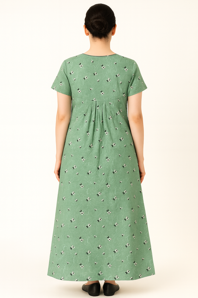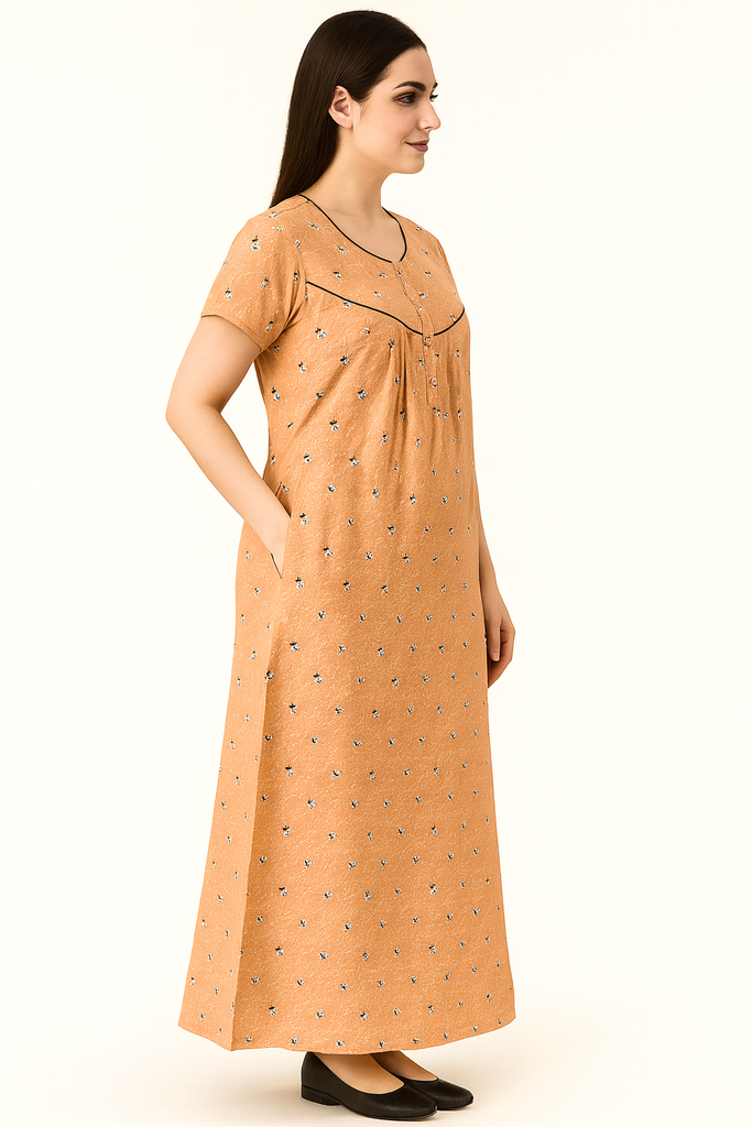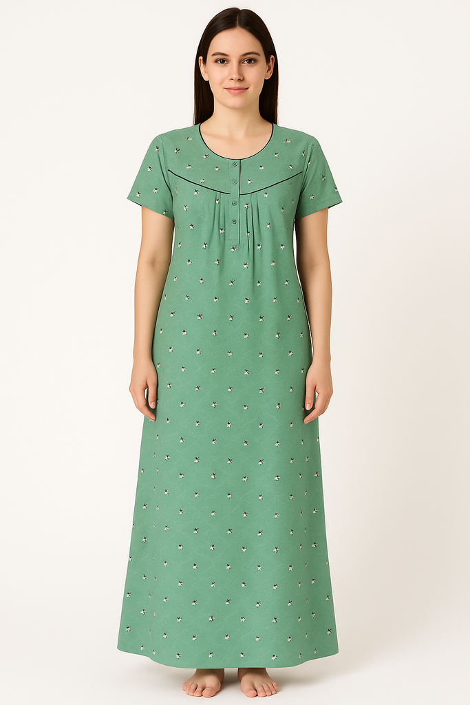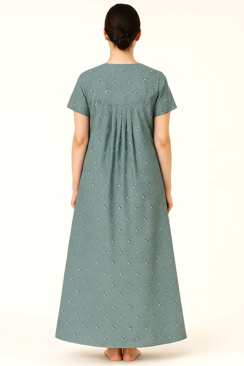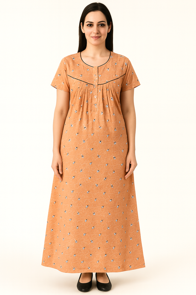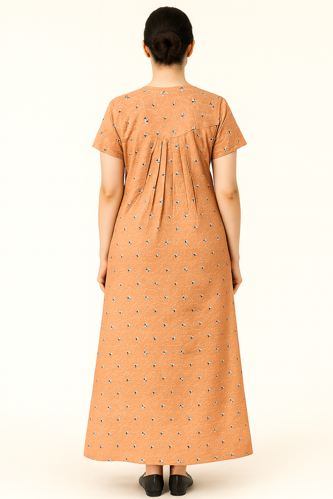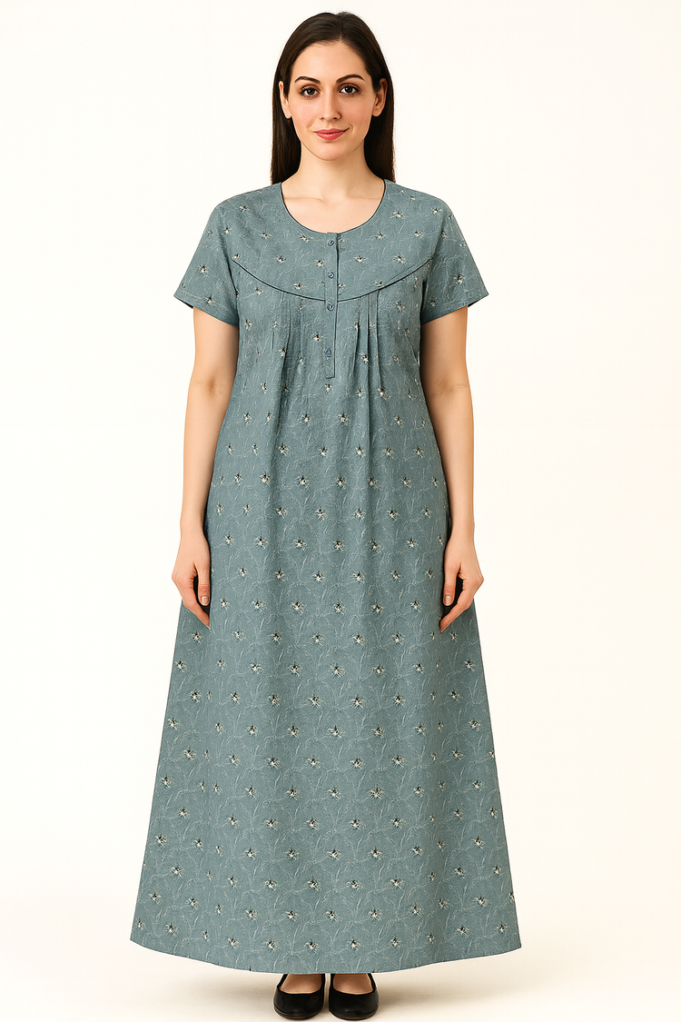 | Experience all-day comfort with this beautifully designed Women’s Cotton Night Gown featuring soft breathable fabric and elegant front pleats (pilits). Made from premium-quality cotton, this gown ensures maximum comfort, perfect for daily wear, lounging, or bedtime. The relaxed silhouette, smooth finish, and long floor-length design provide both comfort and style, making it an ideal choice for women of all ages. |