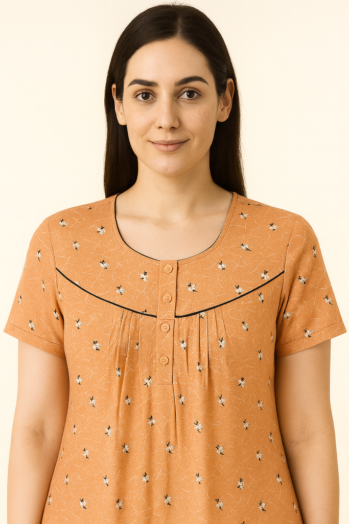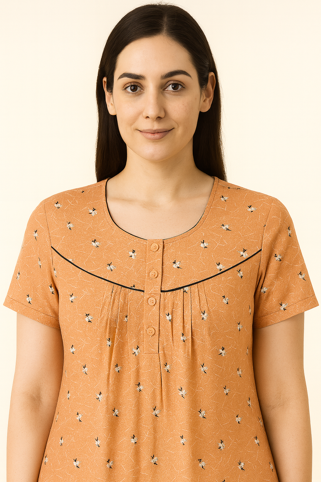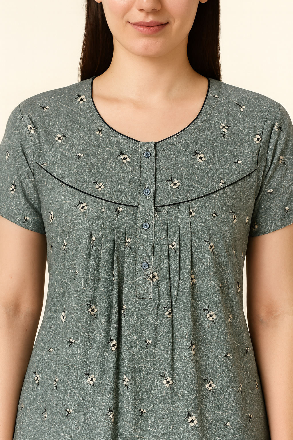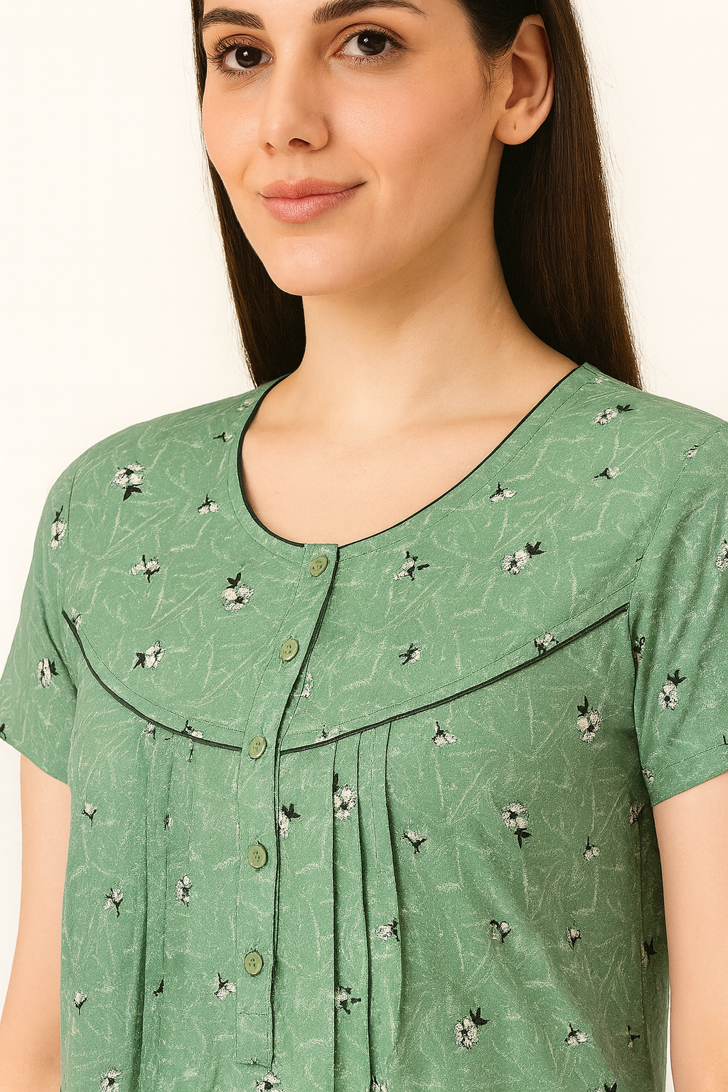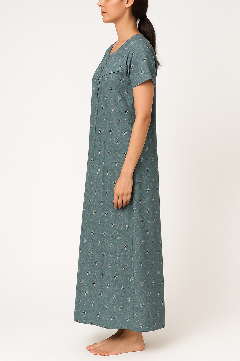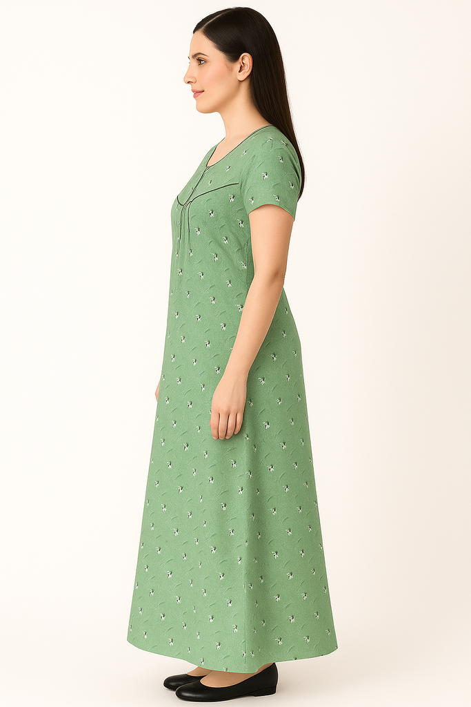 | Experience all-day comfort with this beautifully designed Women’s Cotton Night Gown featuring soft breathable fabric and elegant front pleats (pilits). Made from premium-quality cotton, this gown ensures maximum comfort, perfect for daily wear, lounging, or bedtime. The relaxed silhouette, smooth finish, and long floor-length design provide both comfort and style, making it an ideal choice for women of all ages. |