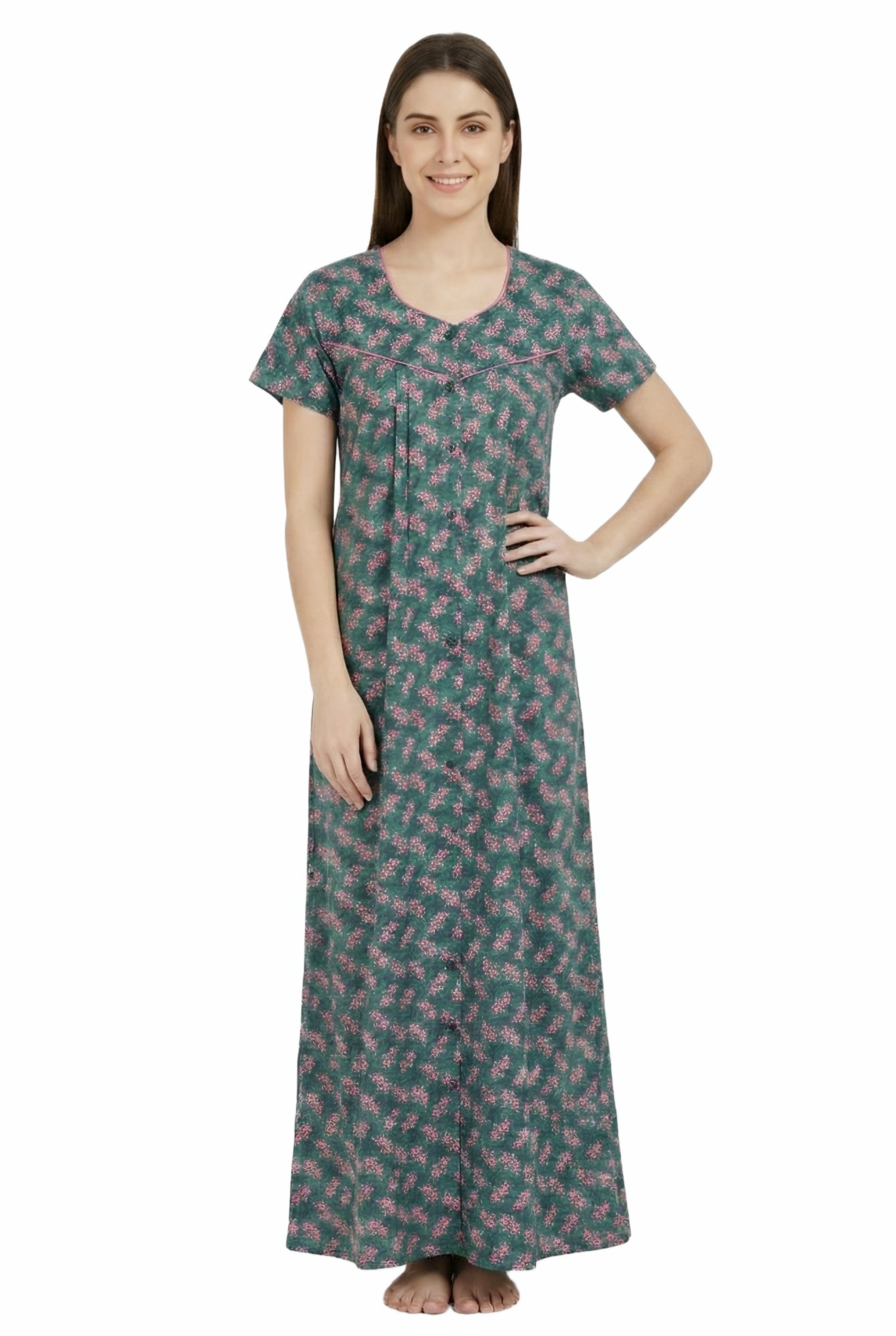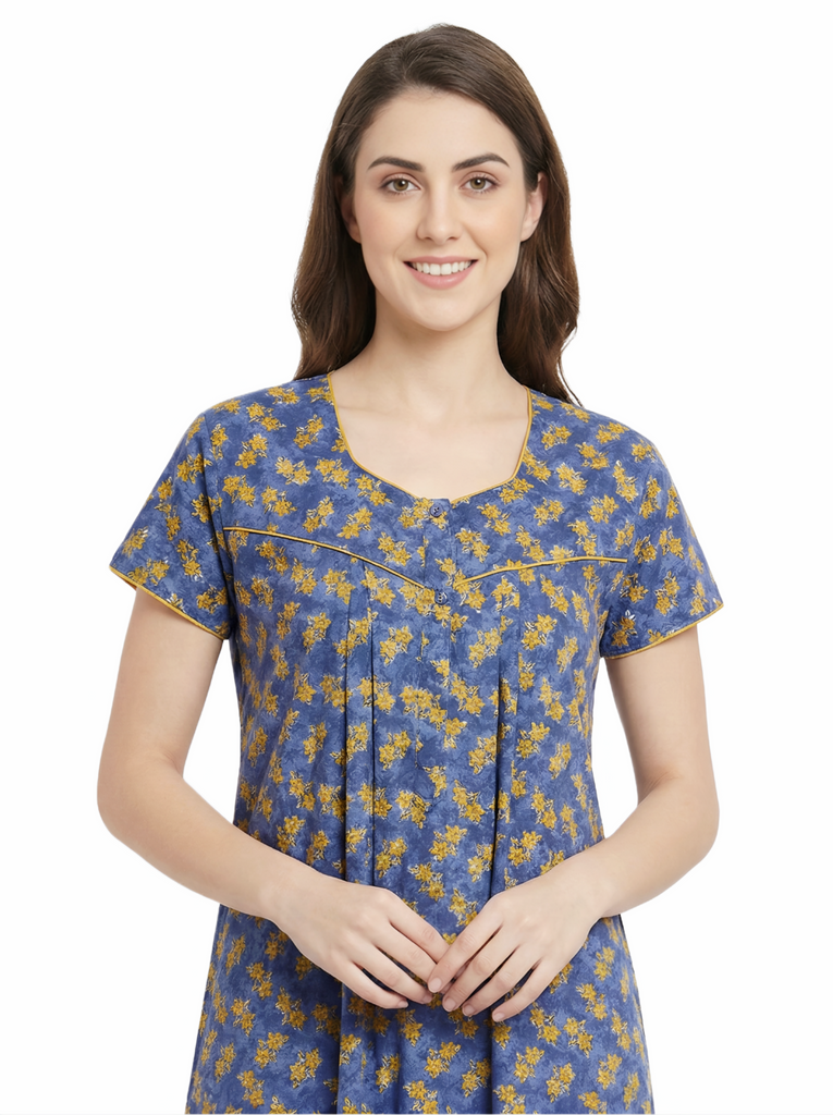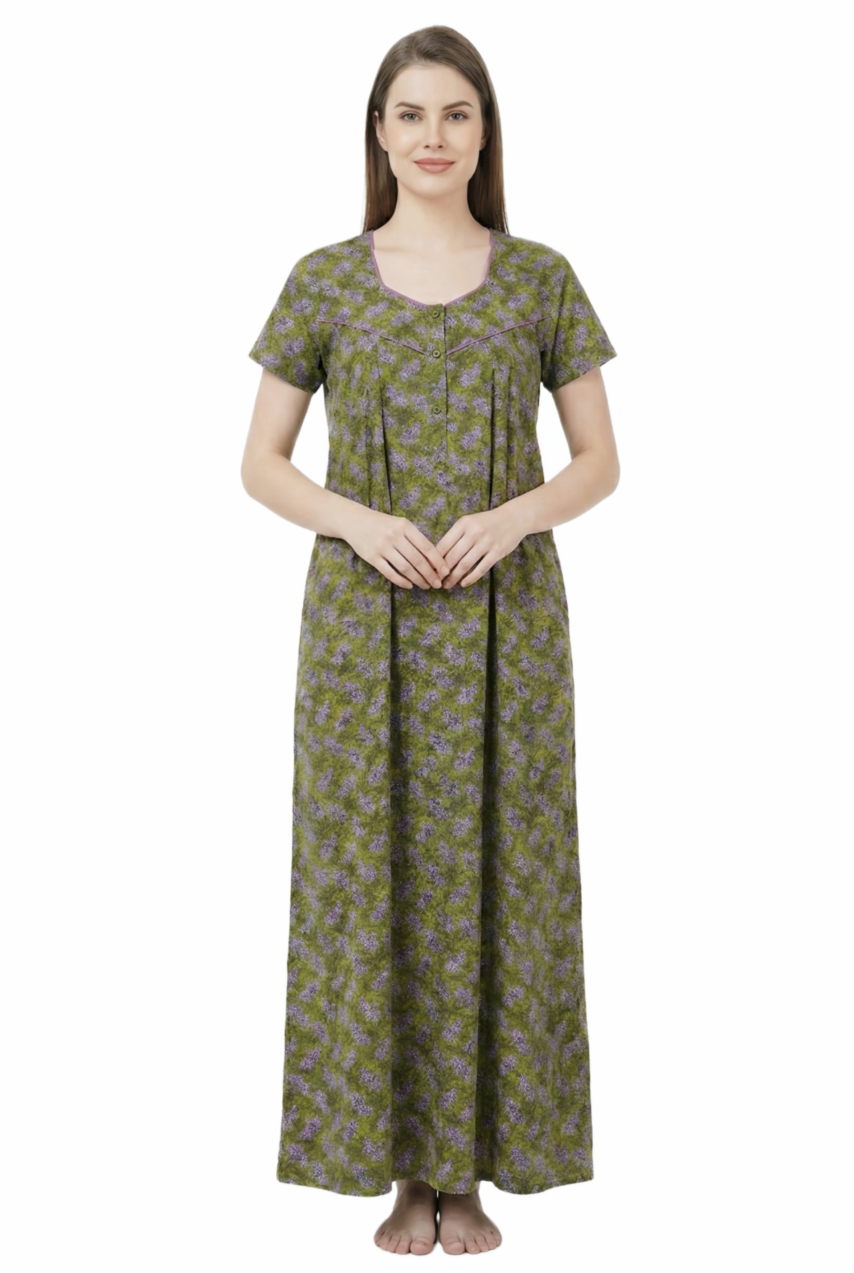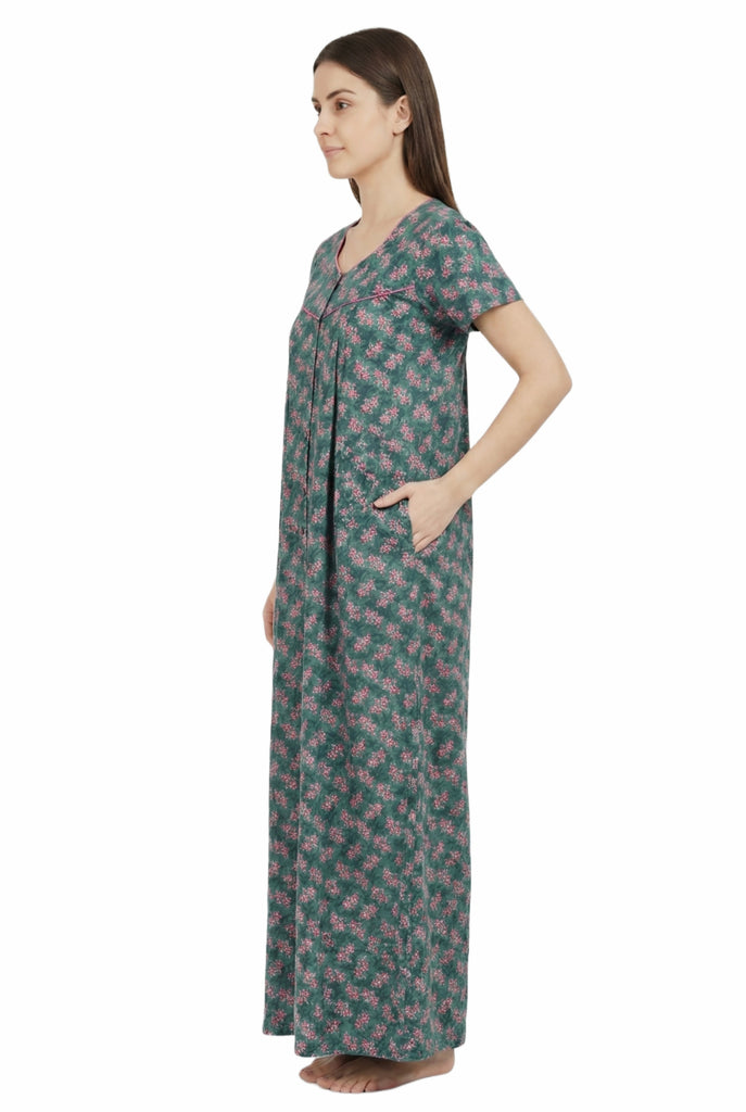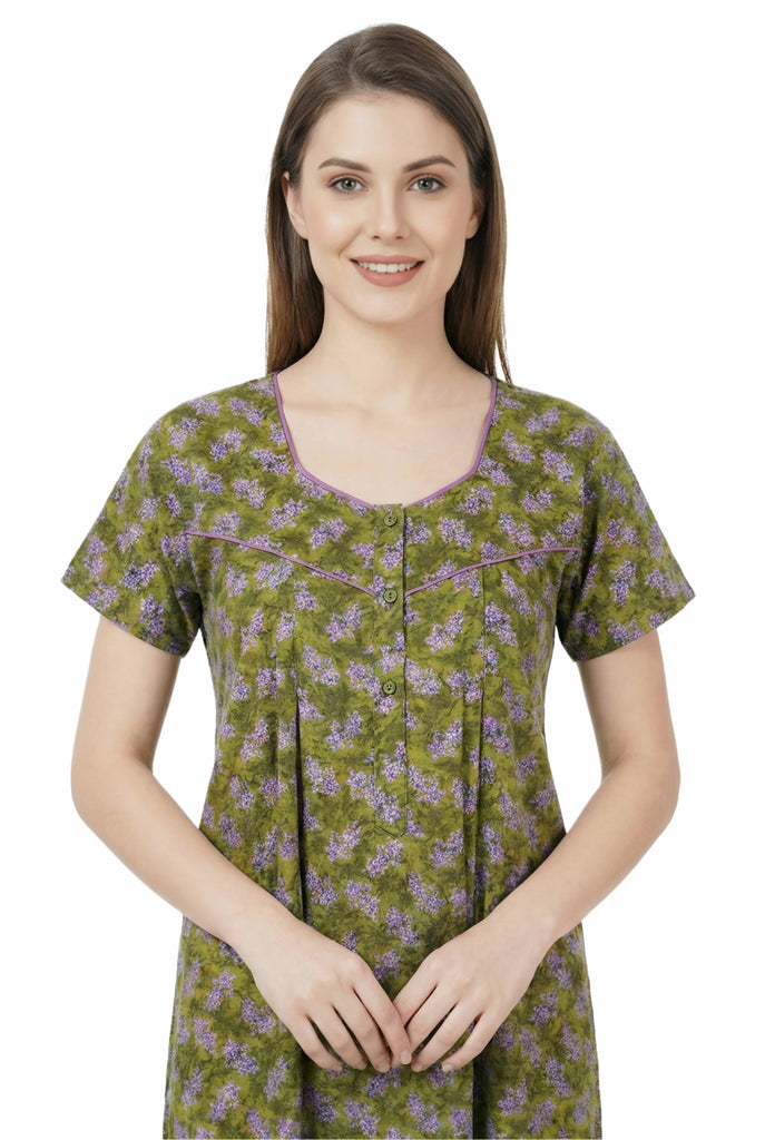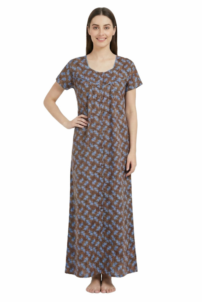 Comfort Women’s Pure Cotton Full-Length Night Gown | Soft Skin-Friendly Fabric | Stylish Front Pleats | Comfortable Daily & Night Wear ( Comfort A13676 GOWN )