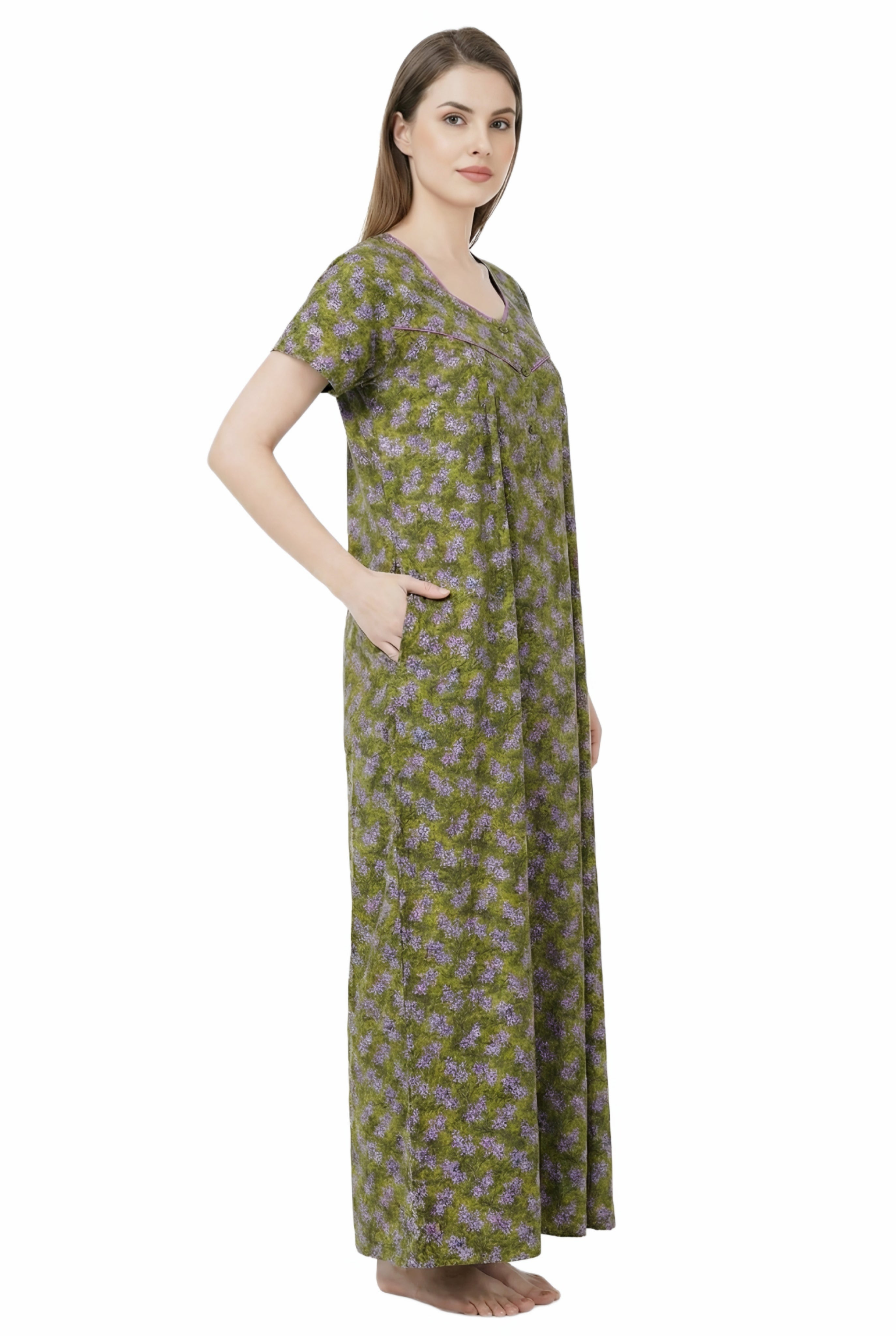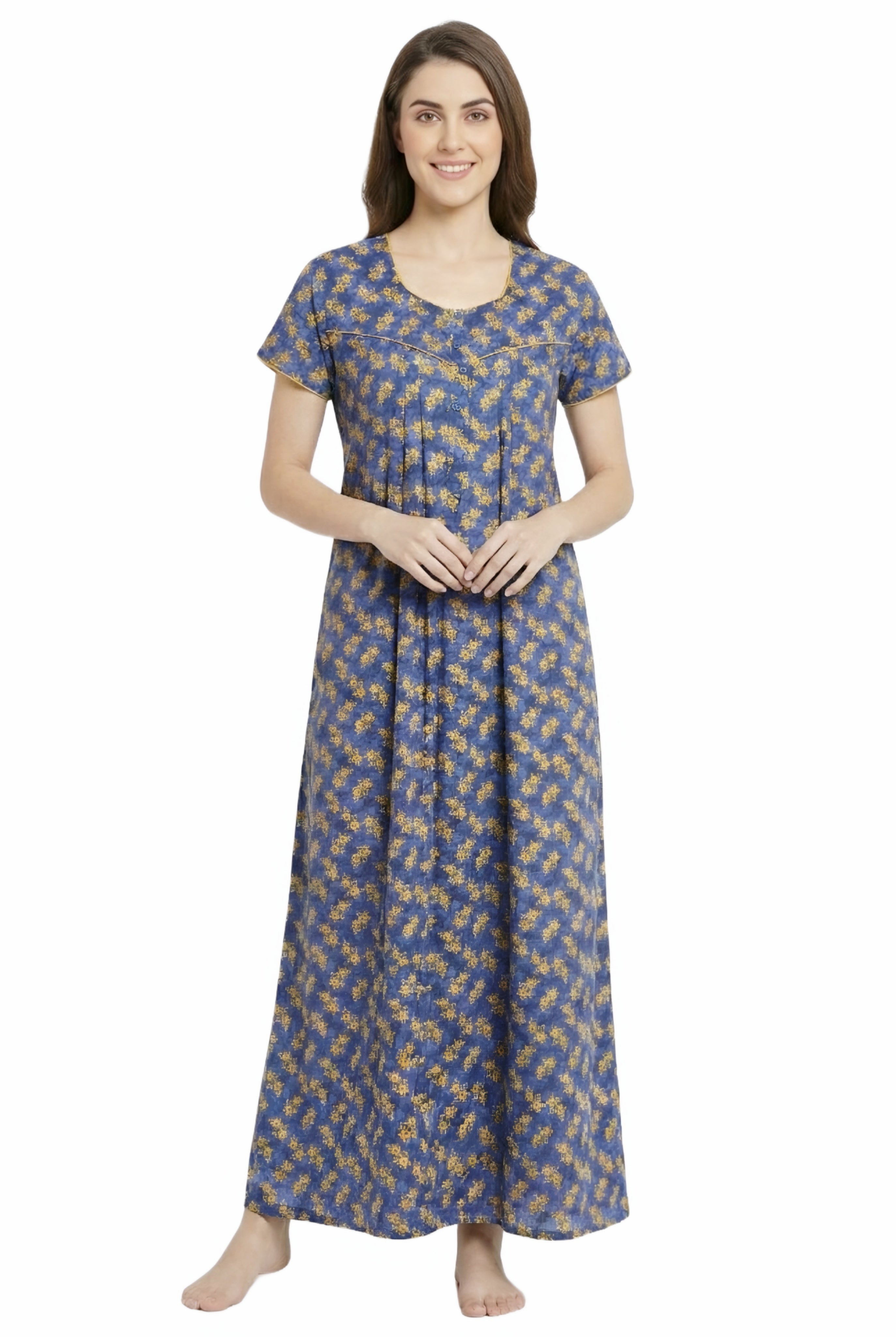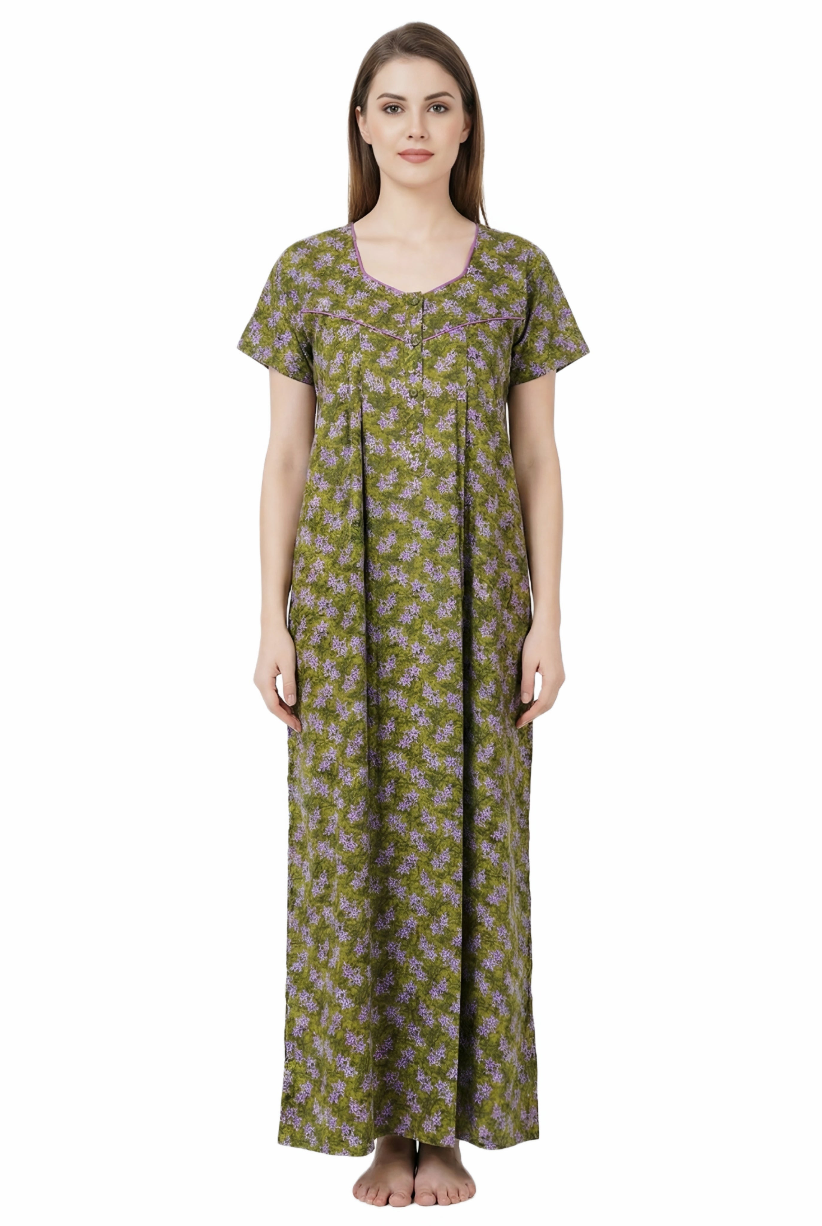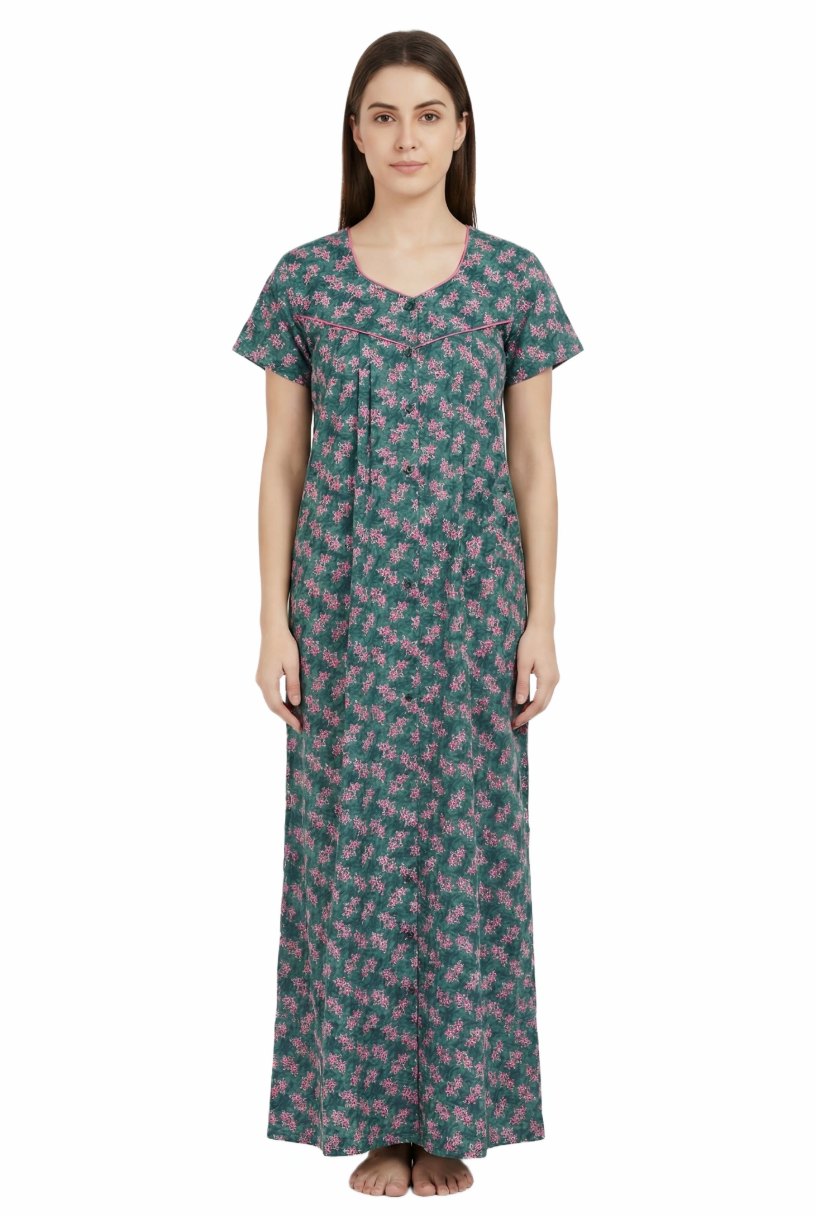 Comfort Women’s Pure Cotton Full-Length Night Gown | Soft Skin-Friendly Fabric | Stylish Front Pleats | Comfortable Daily & Night Wear ( Comfort A13676 GOWN )