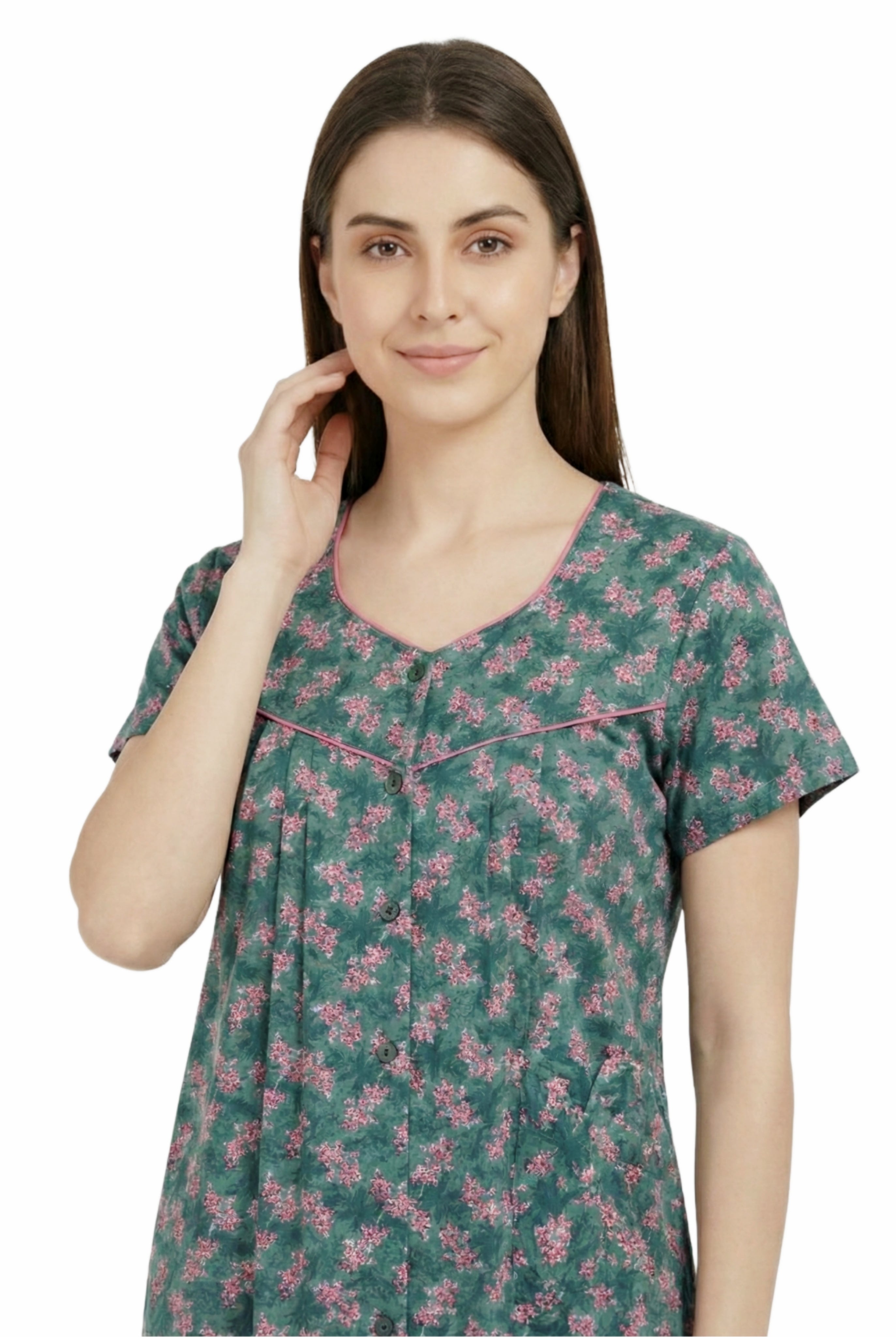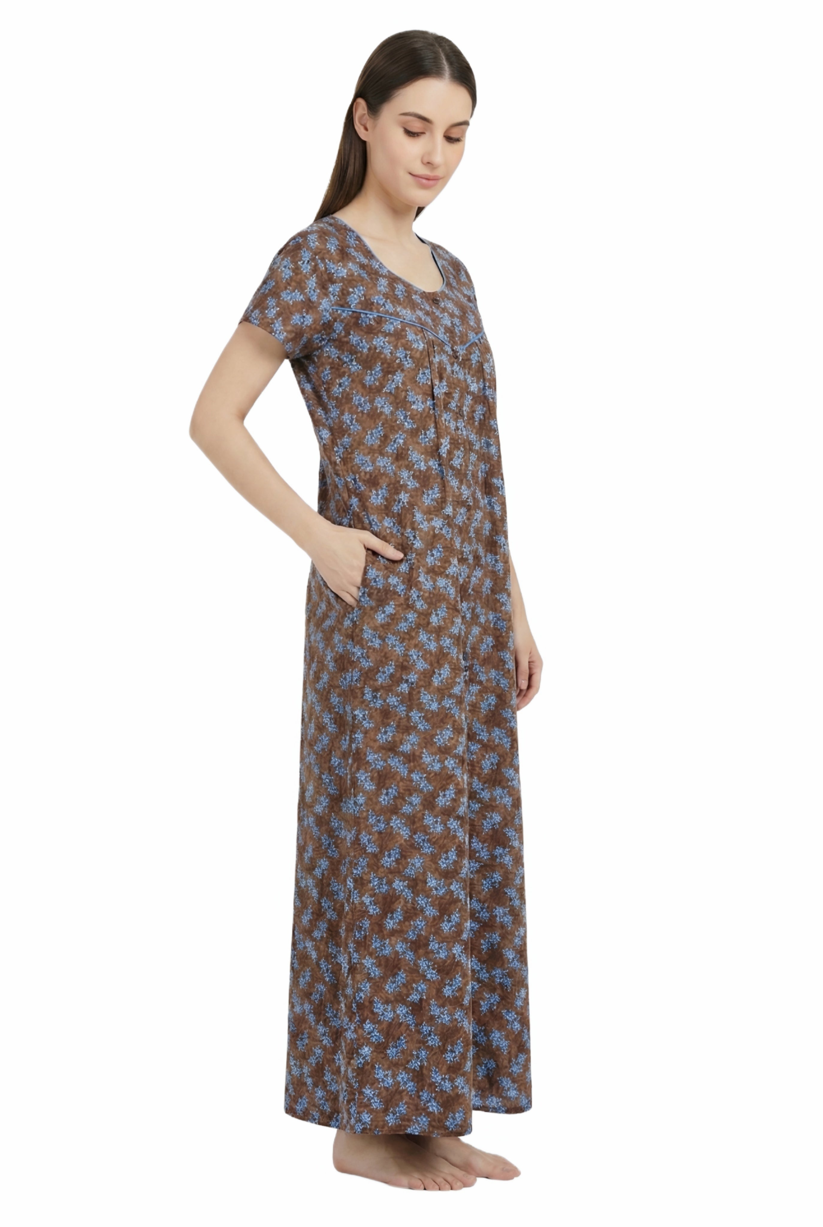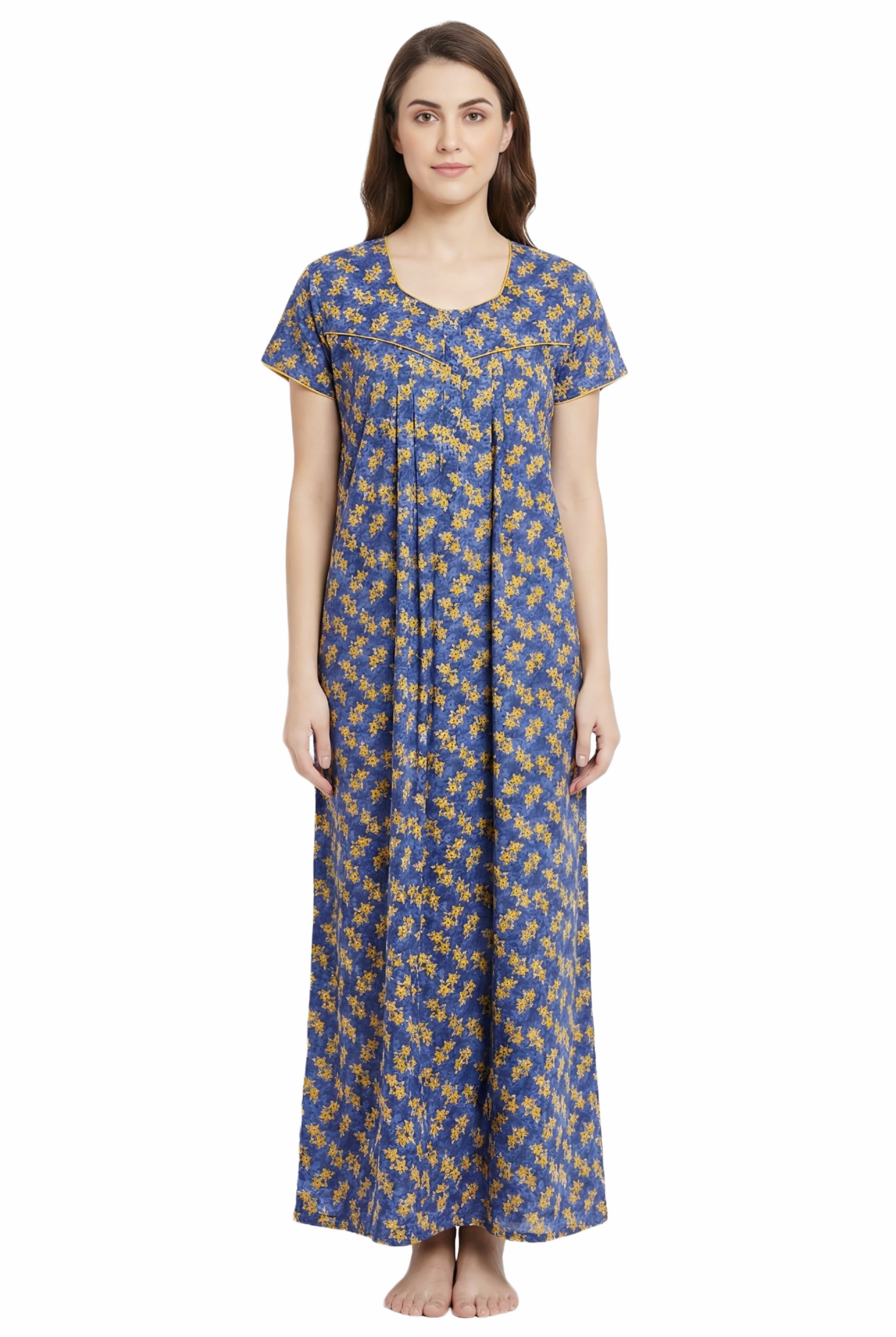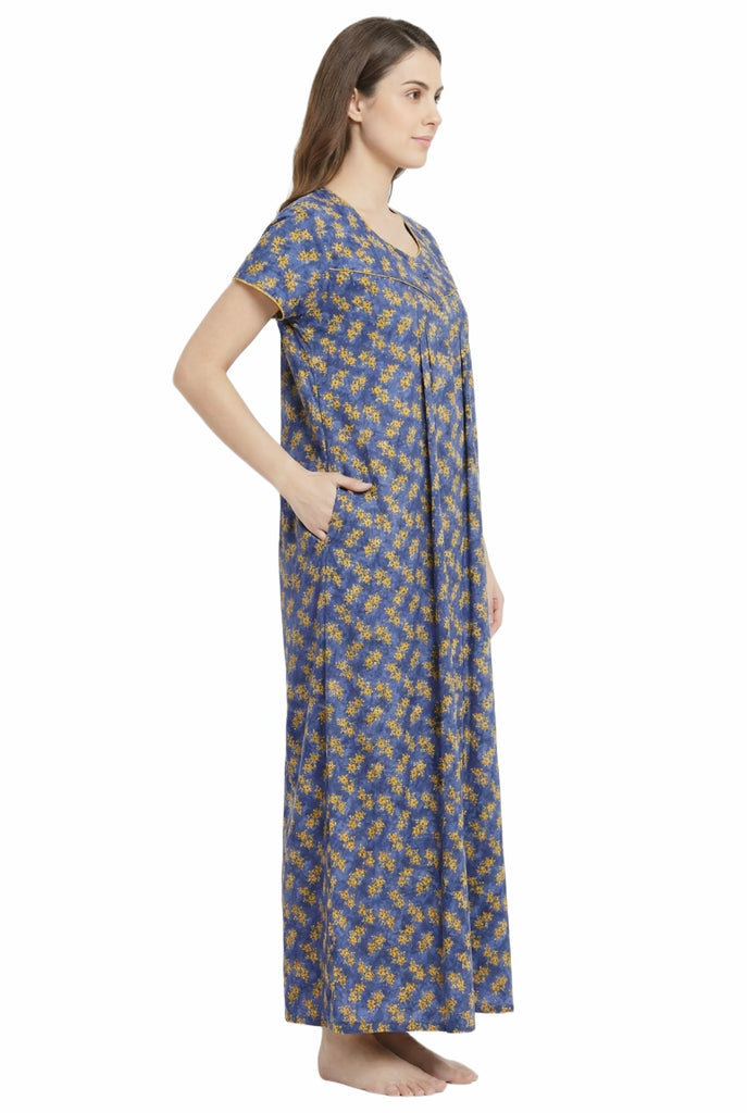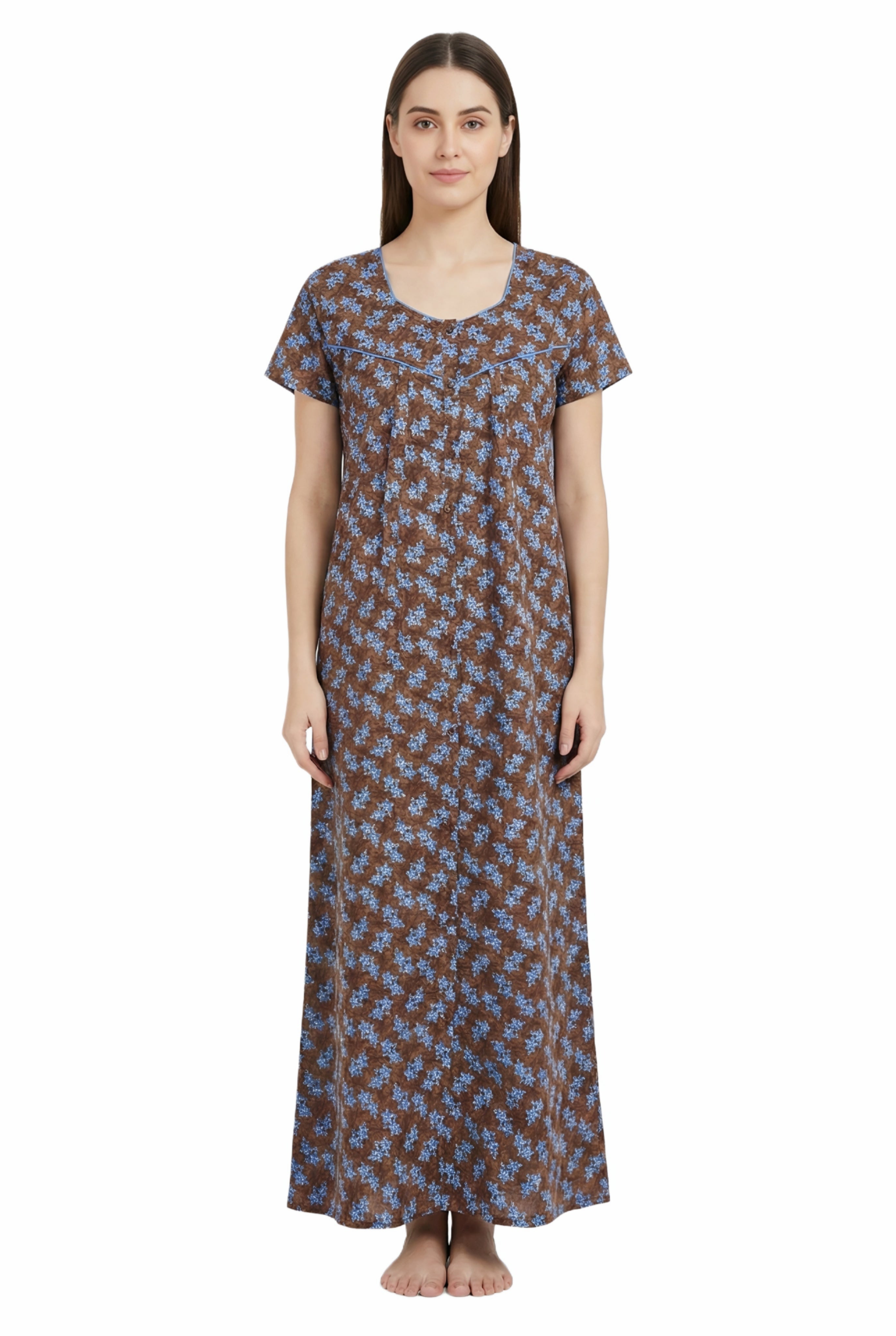 Comfort Women’s Pure Cotton Full-Length Night Gown | Soft Skin-Friendly Fabric | Stylish Front Pleats | Comfortable Daily & Night Wear ( Comfort A13676 GOWN )