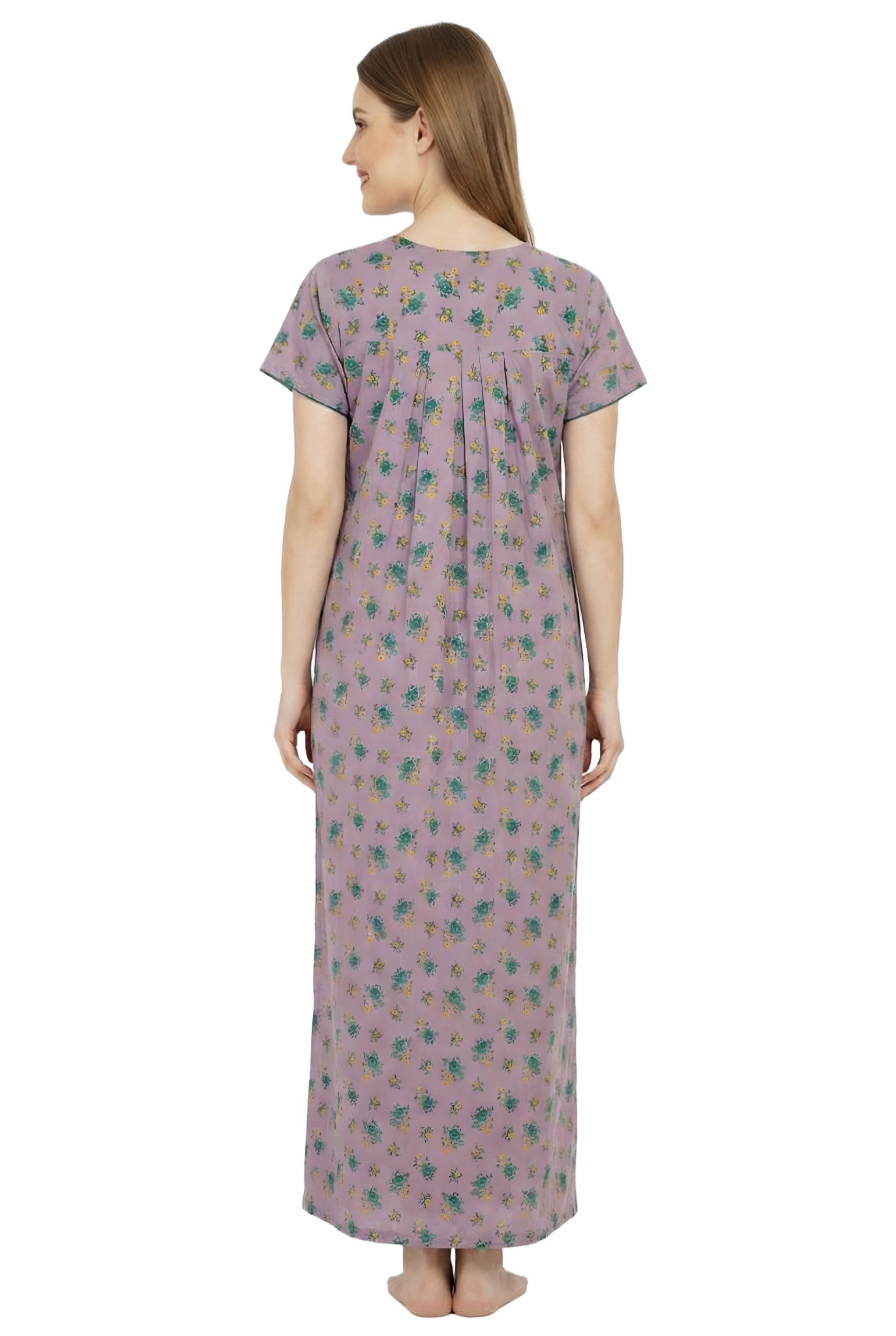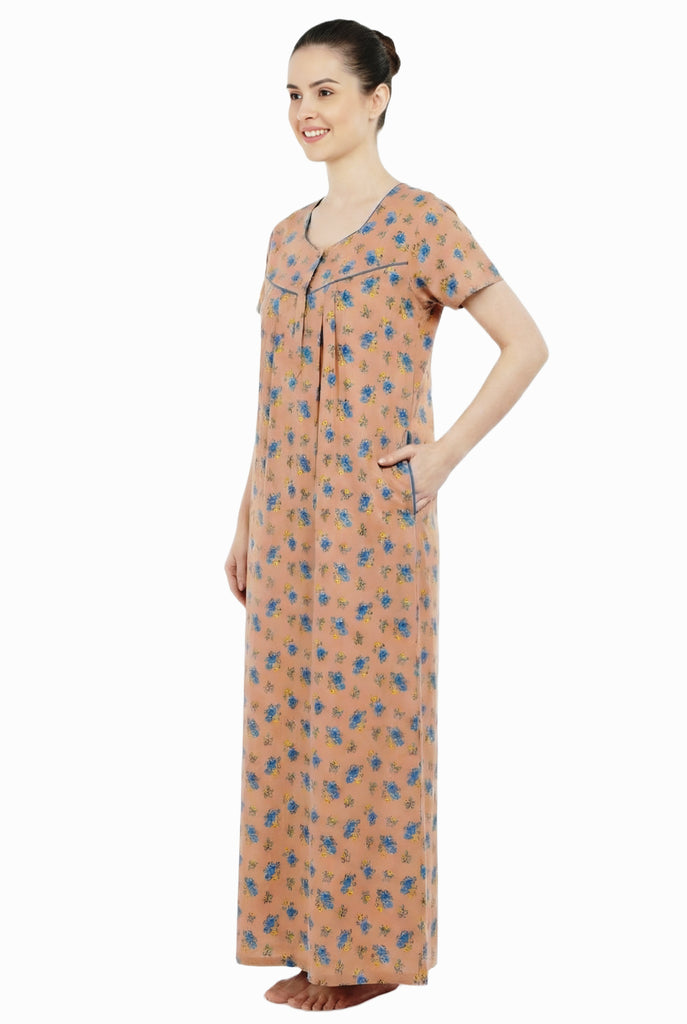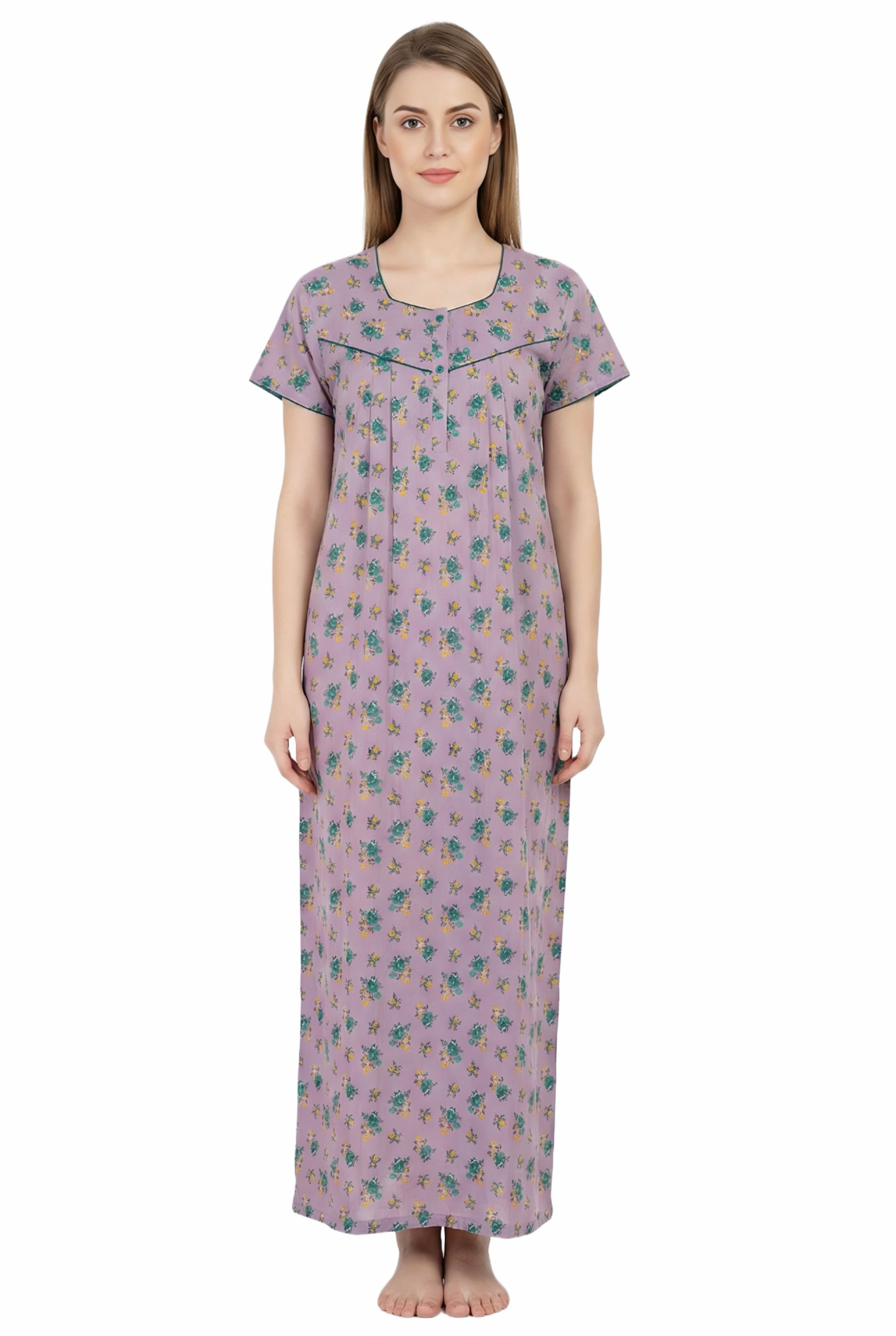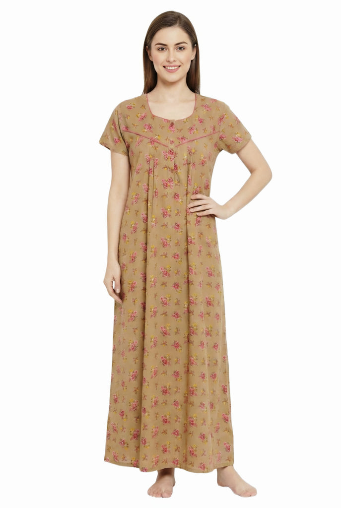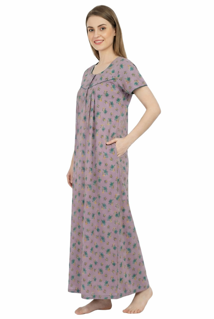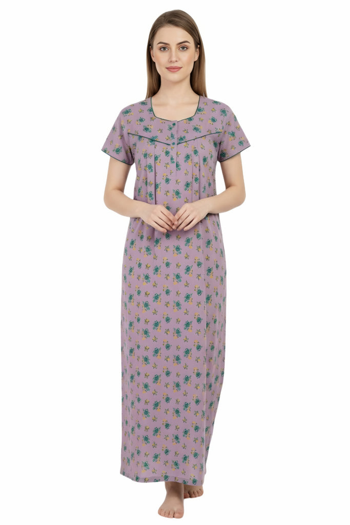 Comfort Women’s Pure Cotton Full-Length Night Gown Soft Skin-Friendly Fabric Stylish Front Pleats Comfortable Daily & Night Wear ( Comfort A14004 CMFT GOWN )