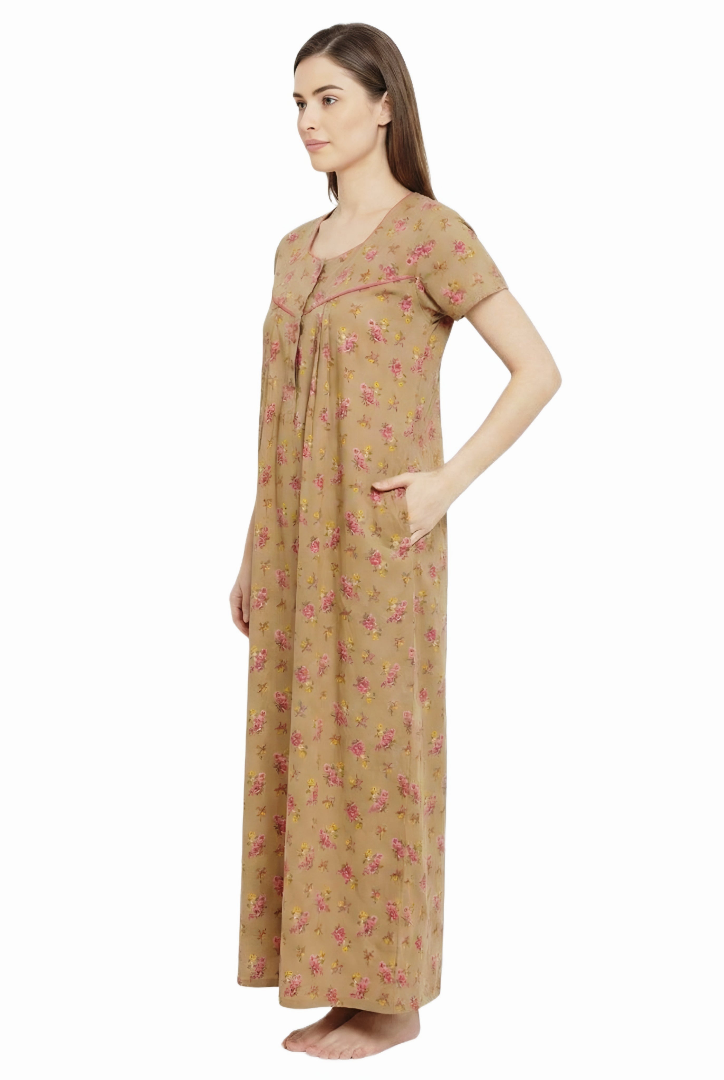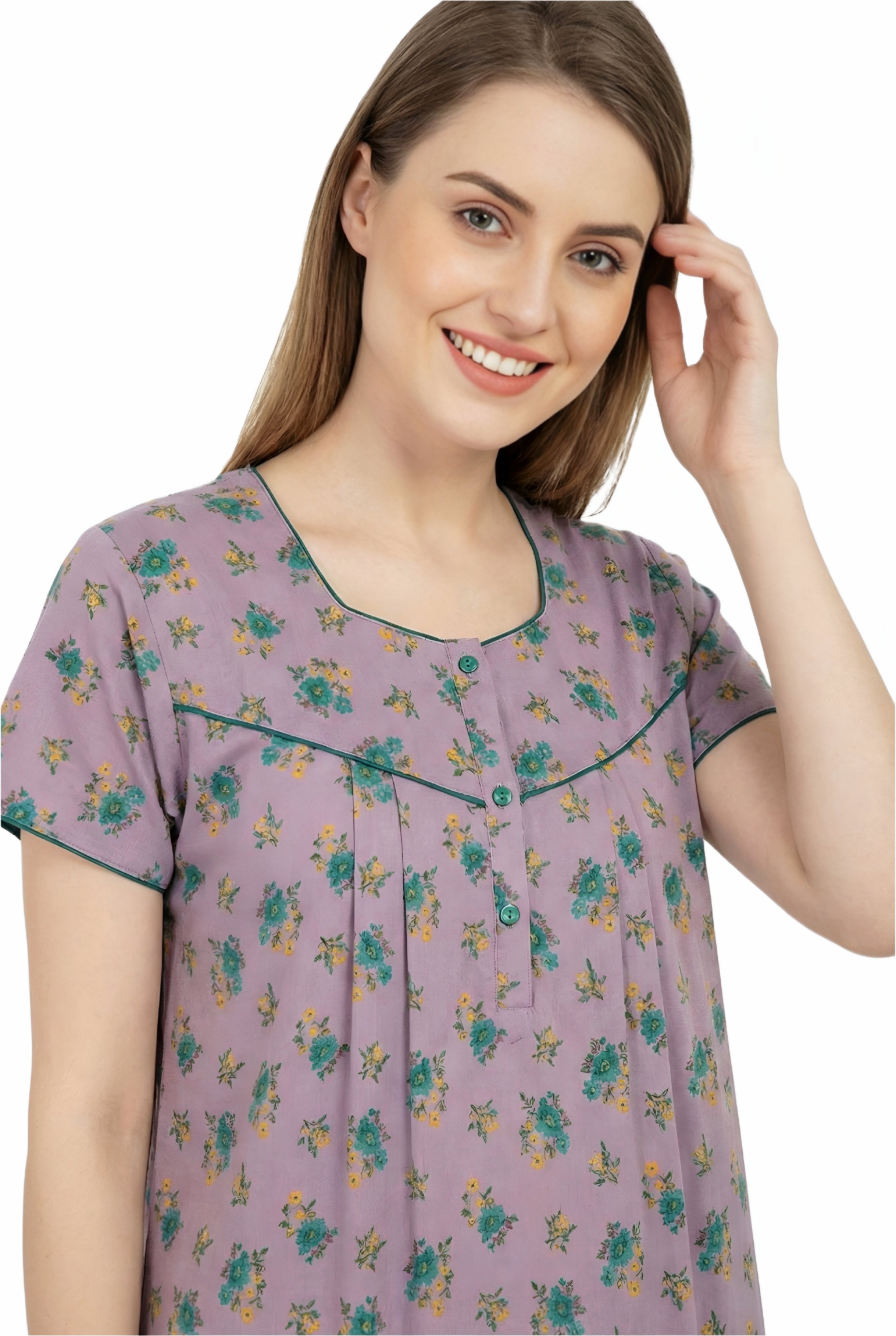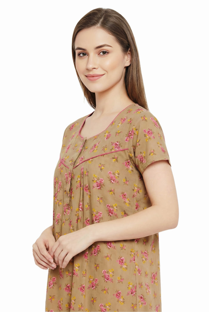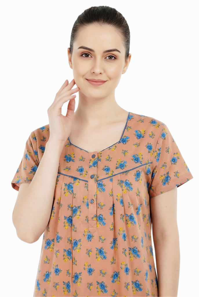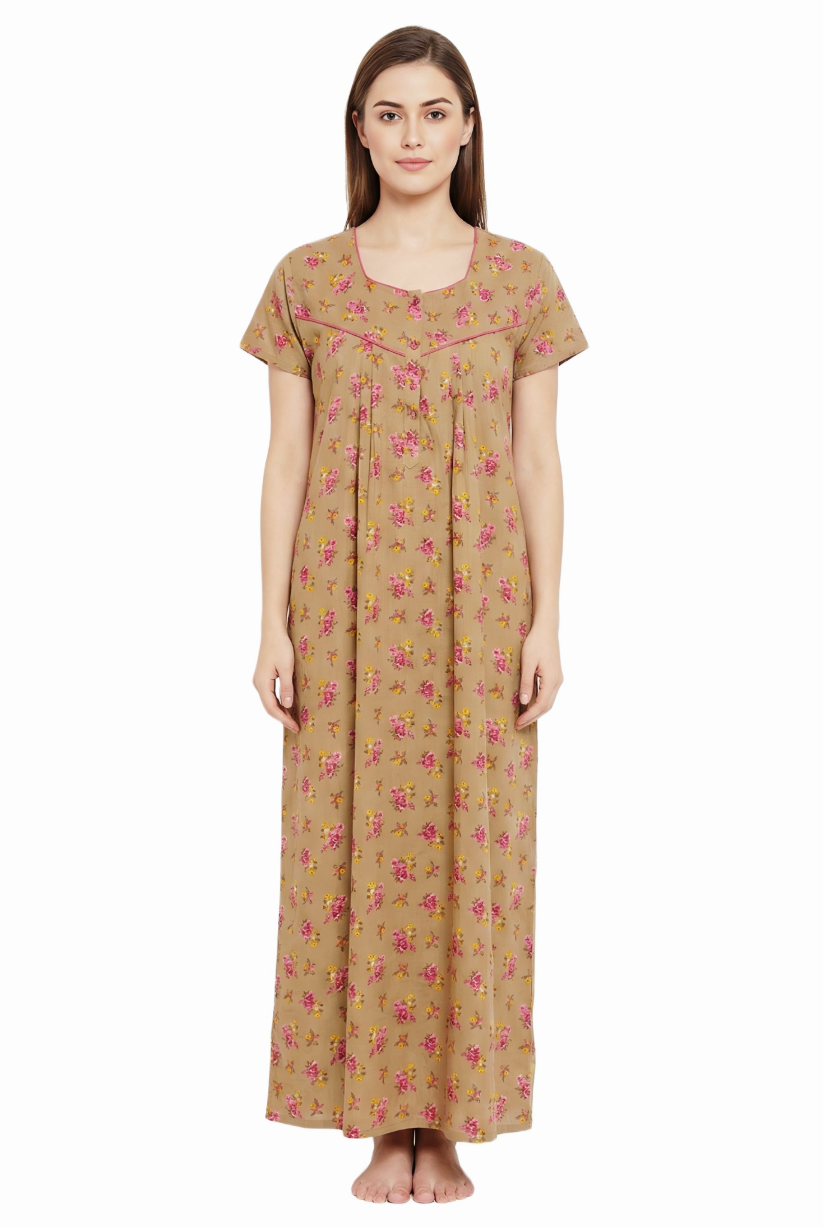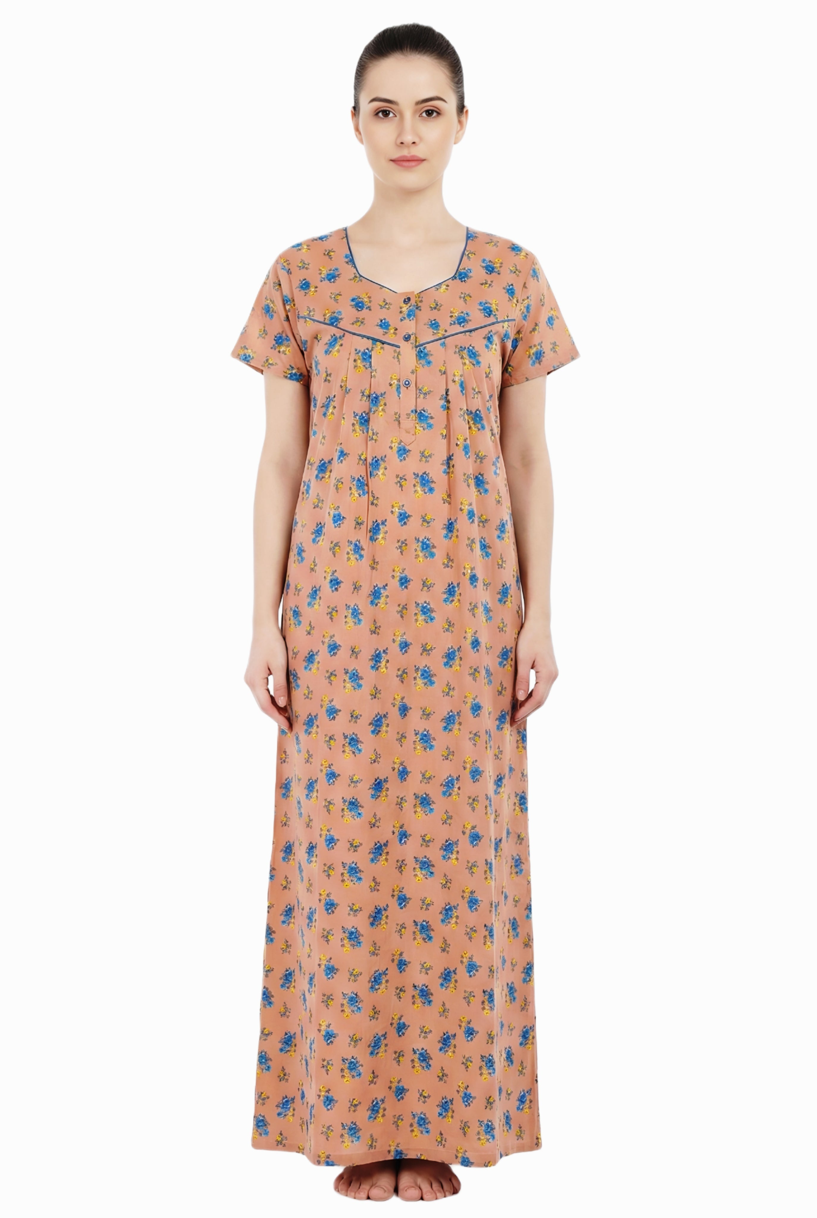 Comfort Women’s Pure Cotton Full-Length Night Gown Soft Skin-Friendly Fabric Stylish Front Pleats Comfortable Daily & Night Wear ( Comfort A14004 CMFT GOWN )