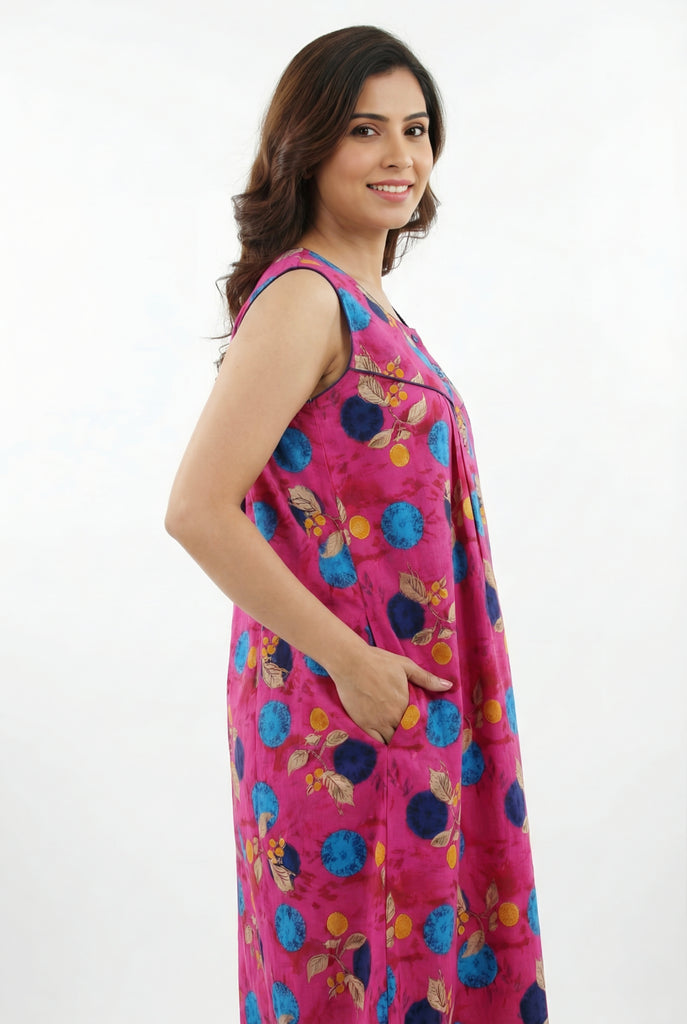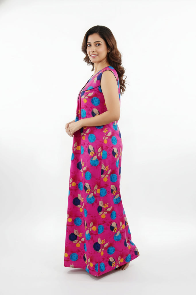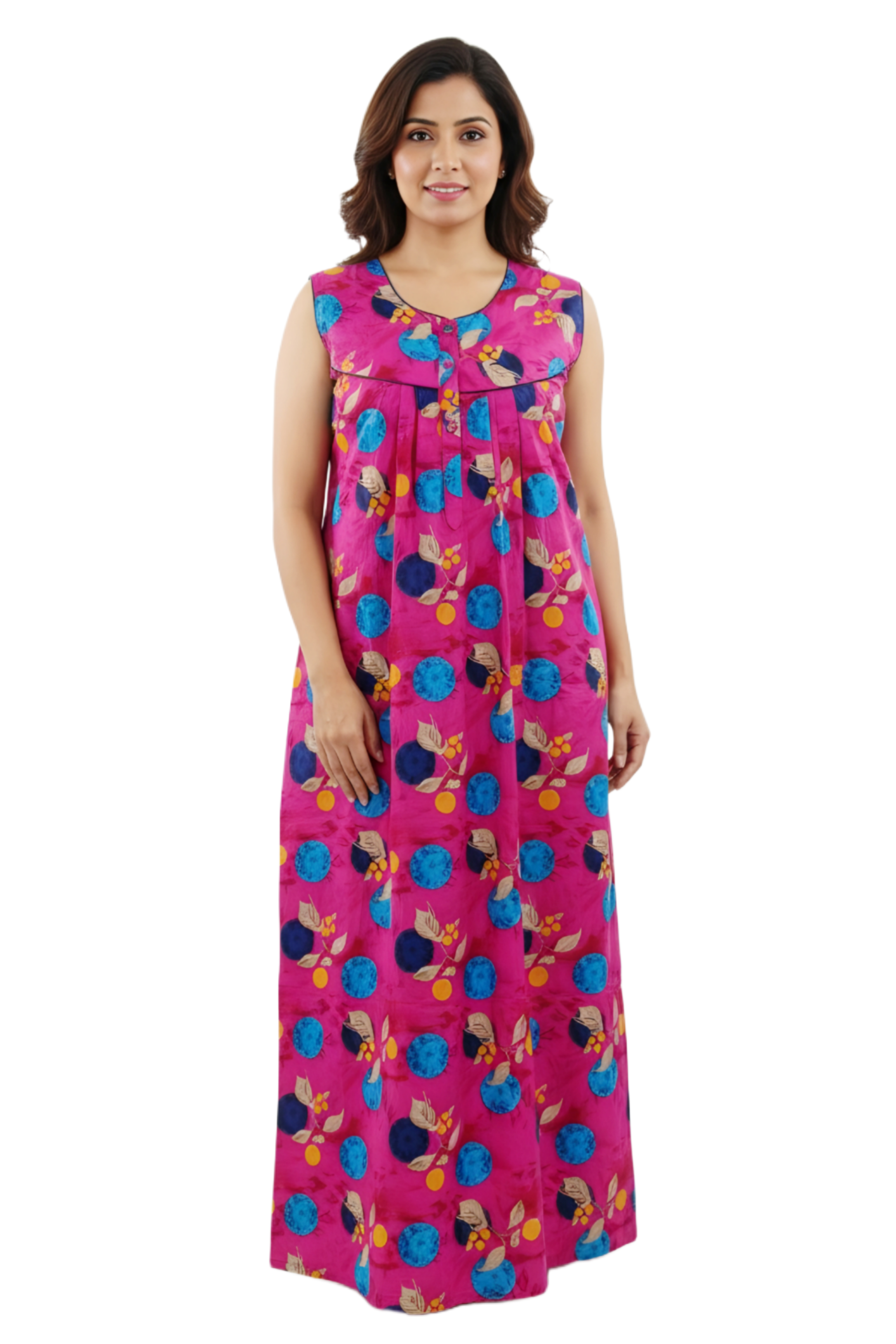 | Experience all-day comfort with this beautifully designed Women’s Cotton Night Gown featuring soft breathable fabric and elegant front pleats (pilits). Made from premium-quality cotton, this gown ensures maximum comfort, perfect for daily wear, lounging, or bedtime. The relaxed silhouette, smooth finish, and long floor-length design provide both comfort and style, making it an ideal choice for women of all ages. |