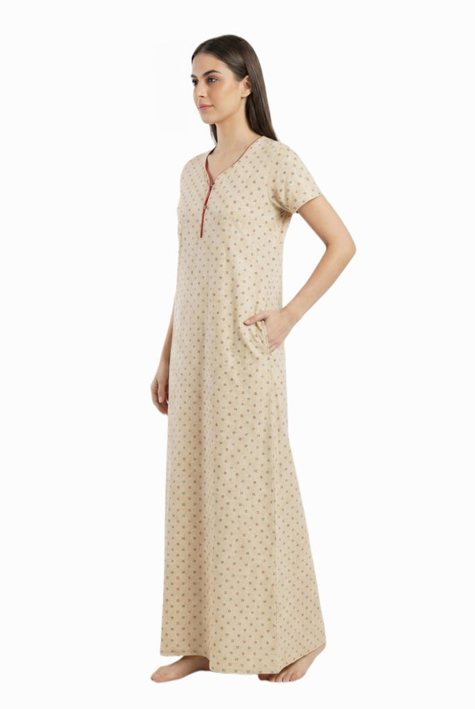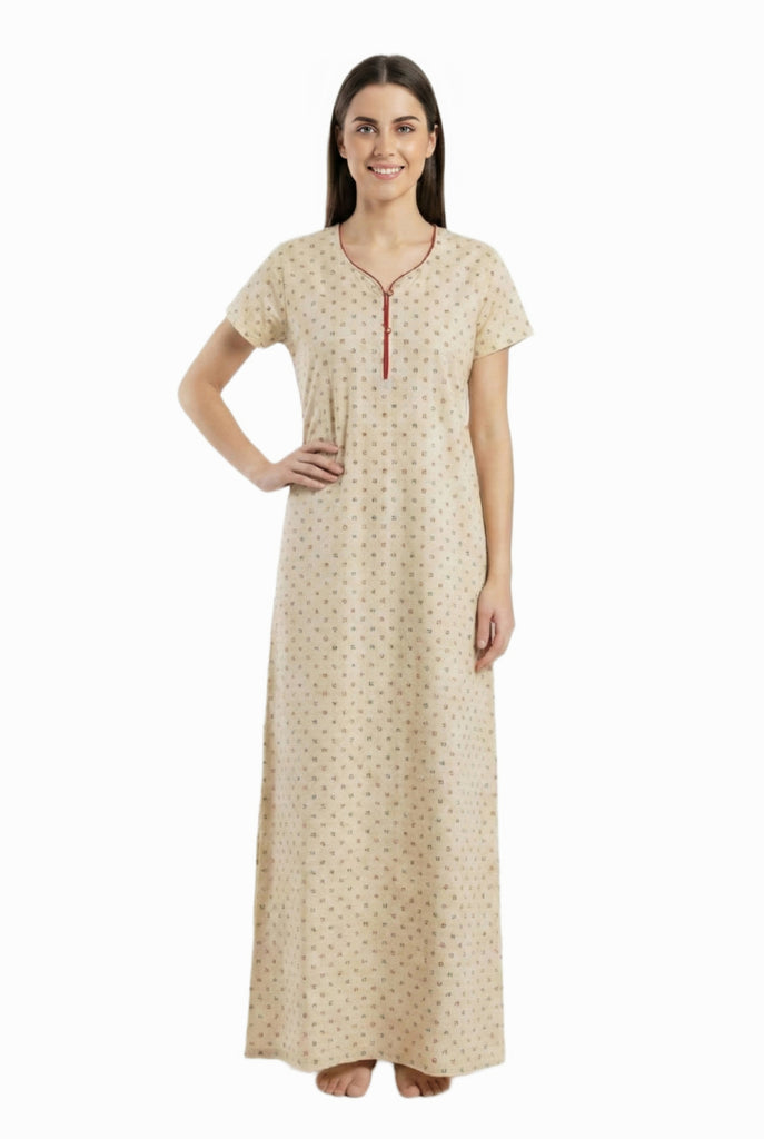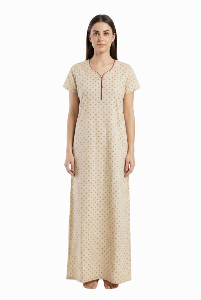 | Experience all-day comfort with this beautifully designed Women’s Cotton Night Gown featuring soft breathable fabric Made from premium-quality cotton, this gown ensures maximum comfort, perfect for daily wear, lounging, or bedtime. The relaxed silhouette, smooth finish, and long floor-length design provide both comfort and style, making it an ideal choice for women of all ages. |