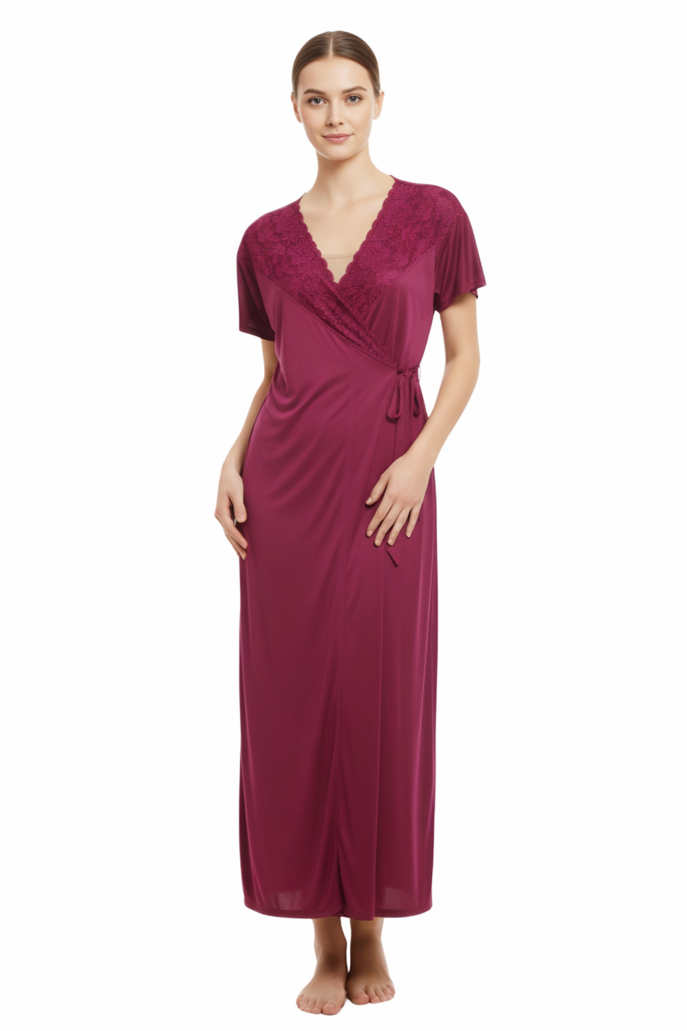 Women's Nightgown Nighty Satin Solid Full Length Nighty with Robe 2 Piece Set of Sleepwear and Nightwear Nightdress Nighy (31501 NIGHTY COMFORT )
