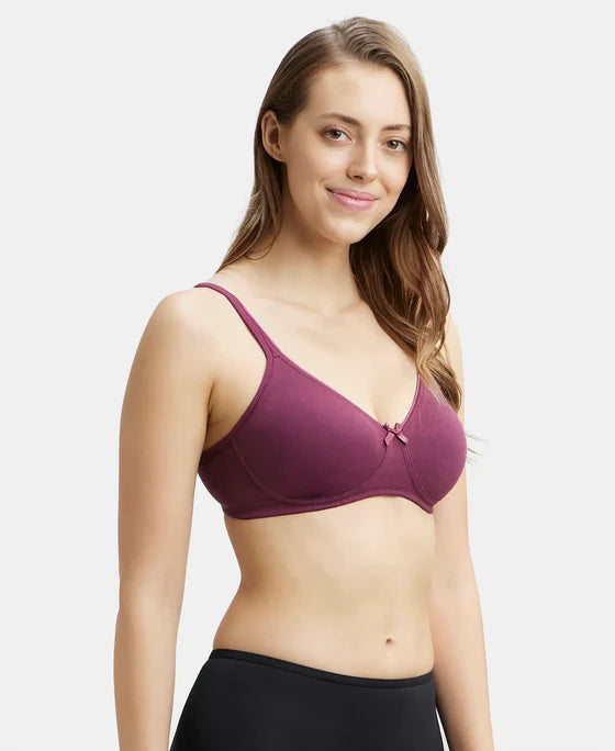 Jockey 1722 Women's Wirefree Non Padded Super Combed Cotton Elastane Stretch Medium Coverage Everyday Bra with Concealed Shaper Panel and Adjustable Straps | INEZY