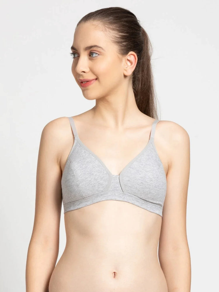 Women's Wirefree Padded Super Combed Cotton Elastane Stretch Full Coverage Beginners Bra with Concealed Underband - Black Style : #MJ06 Miss Jockey